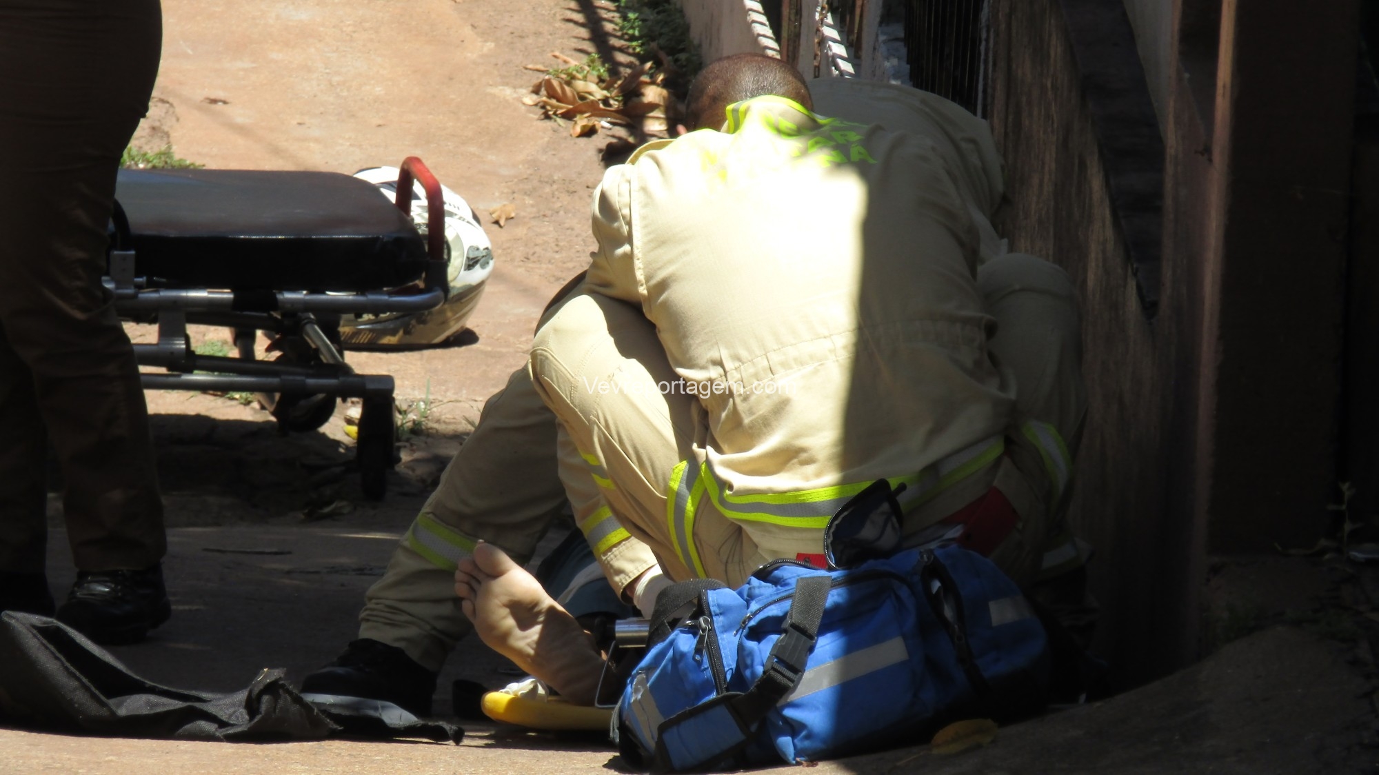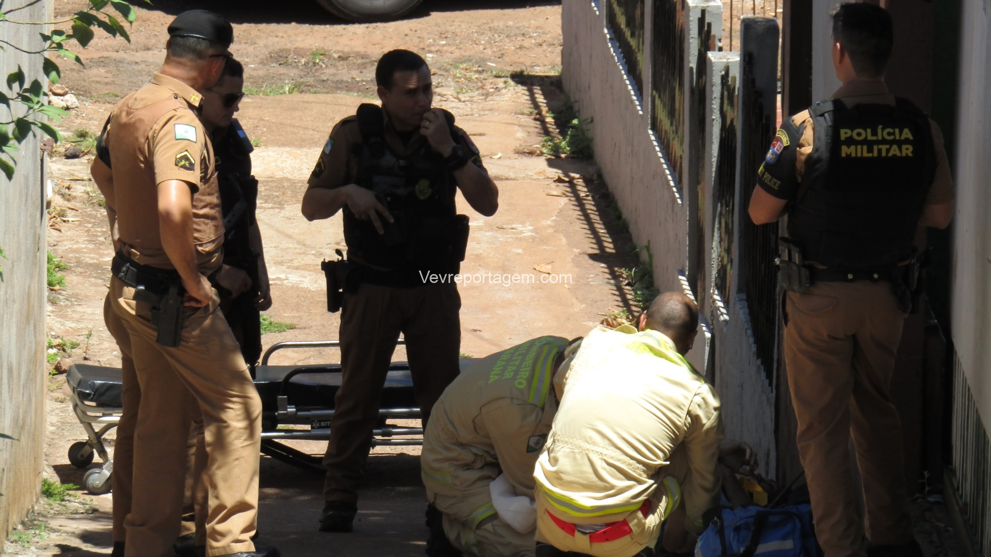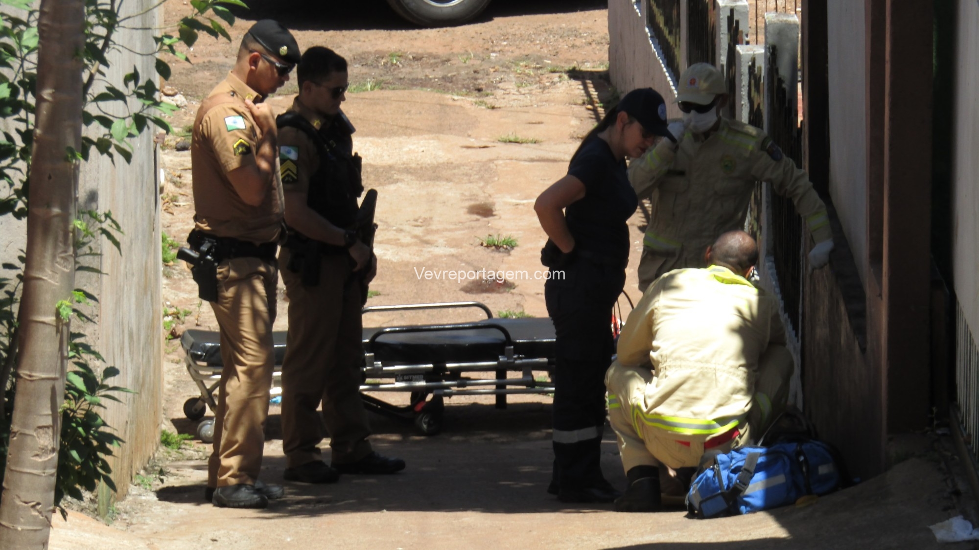 No local, os policiais militares estavam fazendo a guarda de um homem com um ferimento de disparo de arma de fogo na perna. Os socorristas avaliaram o mesmo e acionaram o apoio médico.