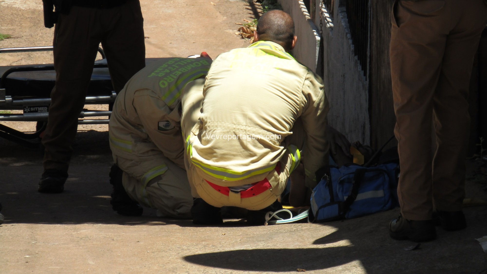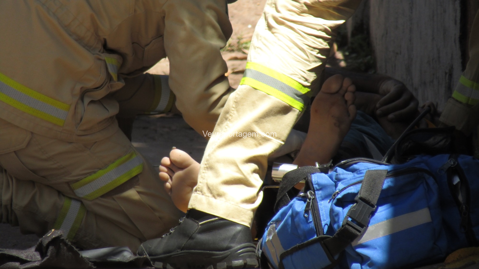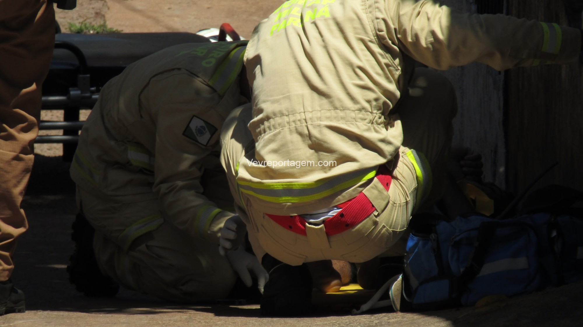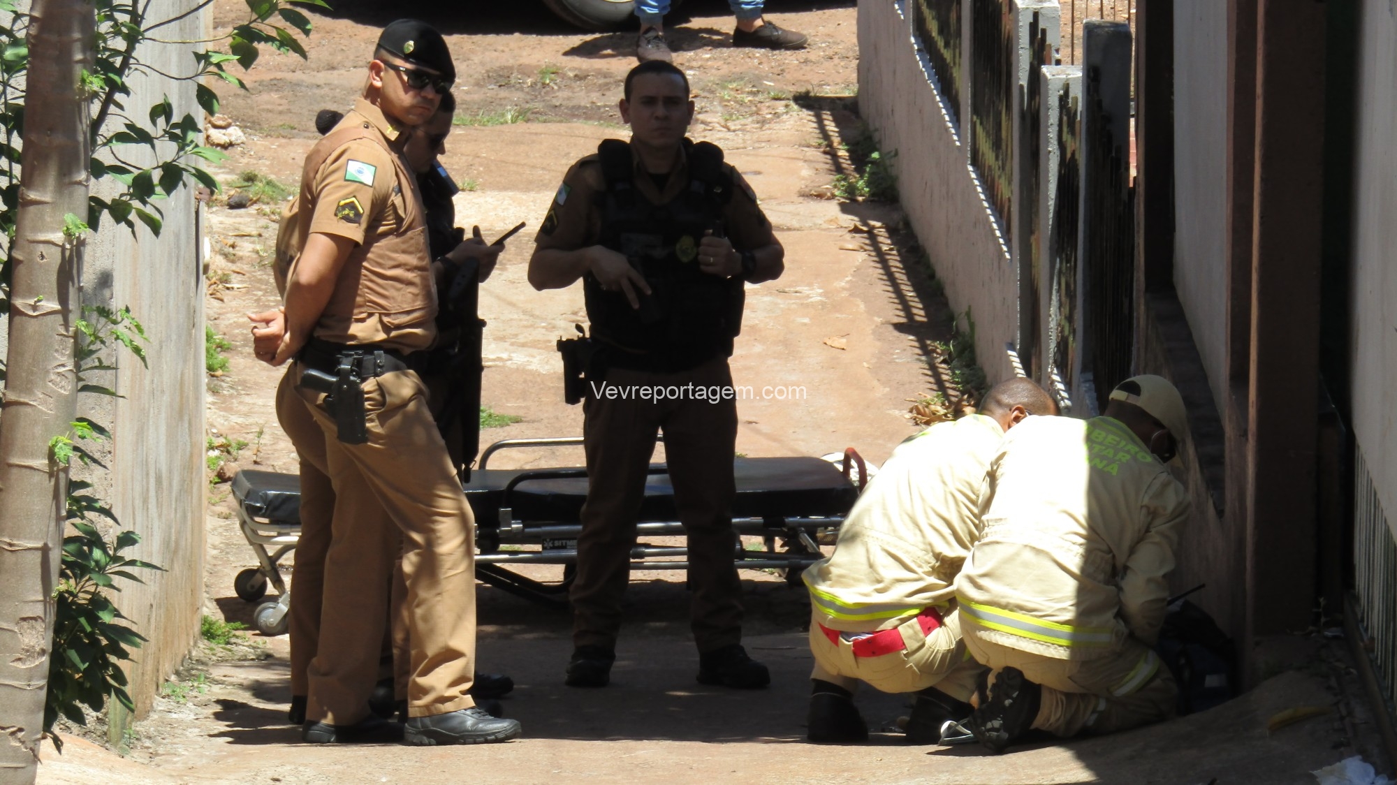 No local, os policiais militares estavam fazendo a guarda de um homem com um ferimento de disparo de arma de fogo na perna. Os socorristas avaliaram o mesmo e acionaram o apoio médico.