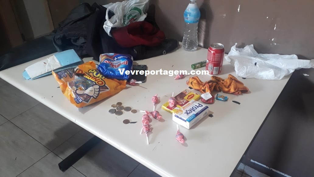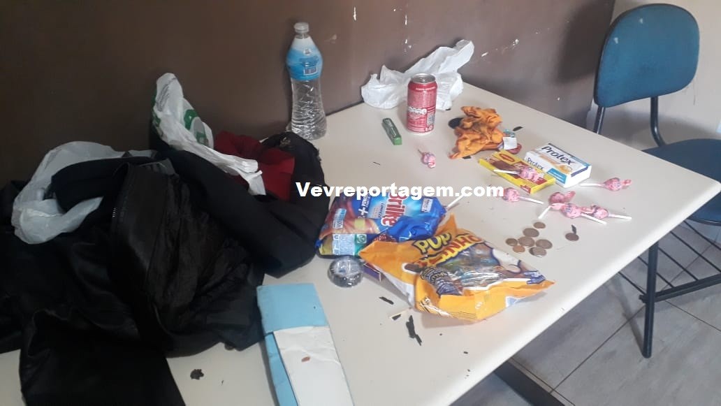No local, os policiais constataram a ocorrência, onde um homem estava detido e com ele alguns produtos do supermercado e uma quantia em dinheiro.