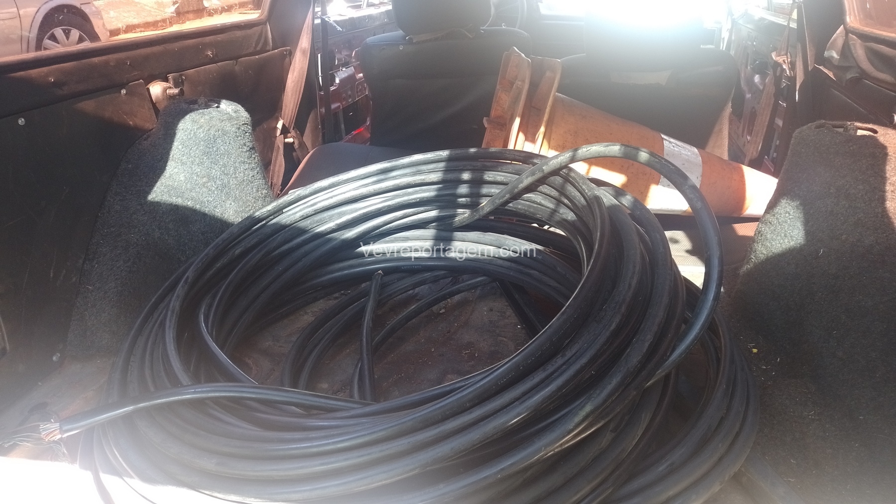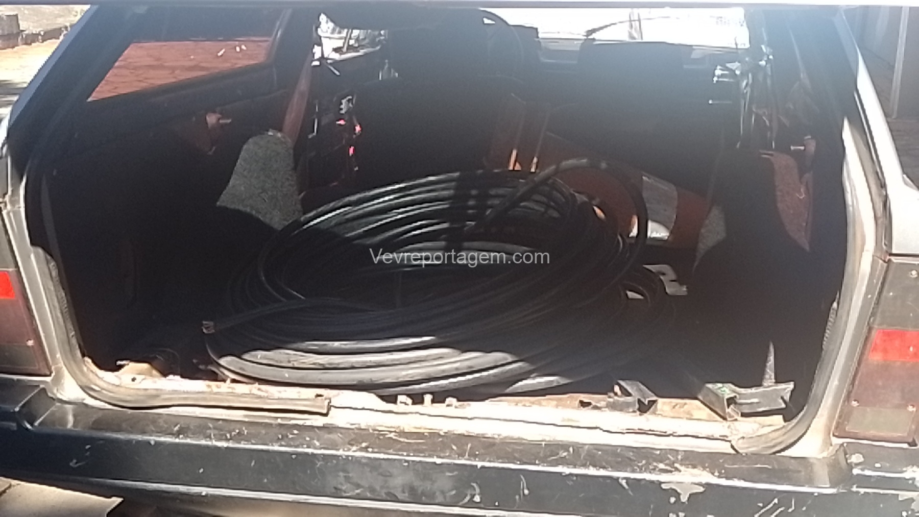 Durante a abordagem, os guardas encontraram diversos cabos de fios dentro do carro. Ao serem questionados, os homens confessaram o furto, alegando que haviam emprestado o veículo de um amigo. Sobre os uniformes da empresa de telefonia, disseram que haviam recebido de terceiros, mas a história não convenceu os agentes.