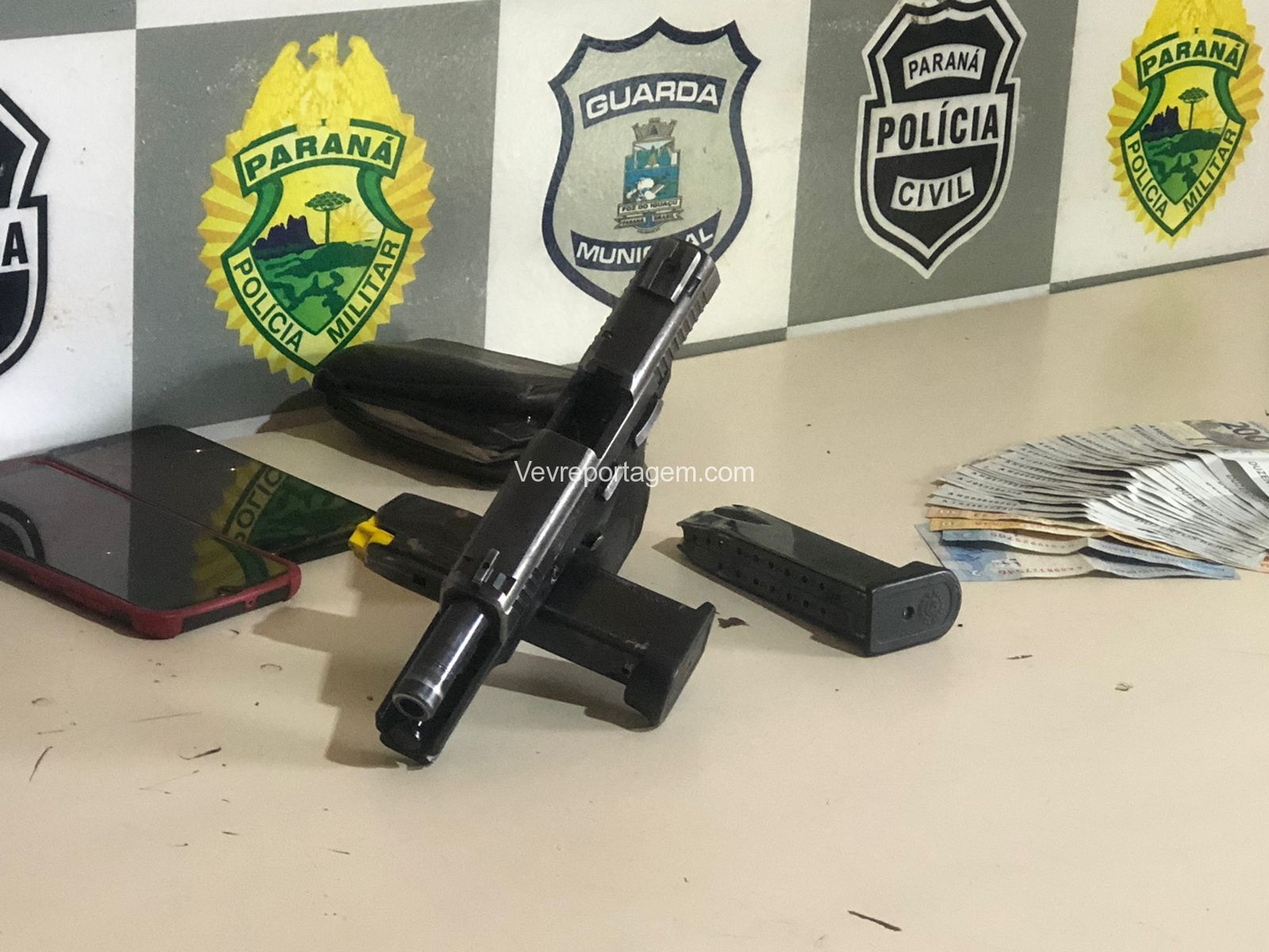 Na tarde desta quarta-feira, 30 de março de 2022, os policiais da RPA Leste realizavam patrulhamento pela Rua Itapemirim, no bairro Campos do Iguaçu, quando avistaram um veículo Parati de cor prata com dois indivíduos em atitudes suspeitas. Realizado abordagem e em revista pessoal foi localizado com um dos indivíduos uma pistola com dois carregadores e uma quantia de três mil reais.