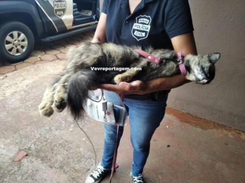 A policial civil Alia, deslocou até o local e constatou a ocorrência, onde localizou uma gata pendurada pelo pescoço já sem vida, a mesma então acionou o apoio de policiais militares para poder fazer a prisão dos responsáveis pela morte da gata. Quantos policiais militares chegaram no local bateram palmas e foram recebidos por um homem identificado sendo, Luiz Henrique, O mesmo abrir o portão que estava trancado cadeado, e autorizou a entrada dos policiais na residência, que encontraram a gata já sem vida com a coleira amarrada em um ferro, dentro da residência havia mais duas pessoas identificadas sendo, Claudinei e Orlando, perguntado para os meses quem teria feito tamanho crueldade os três negaram.