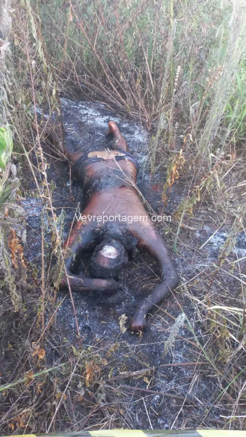 No local, os policiais constataram a ocorrência, onde encontraram o corpo de um homem com um pano amarrado no pescoço e o corpo carbonizado. O homem aparenta ter entre 20 a 25 anos.