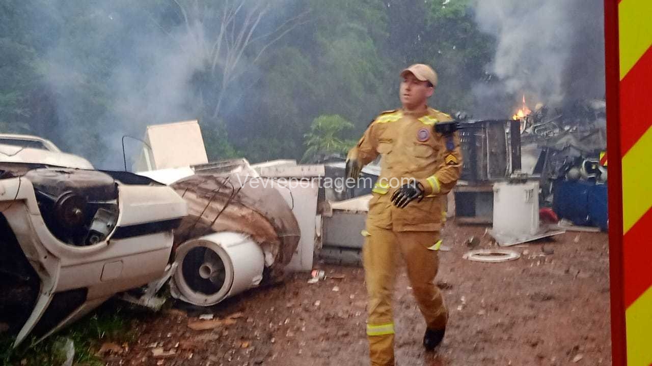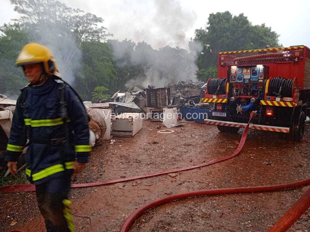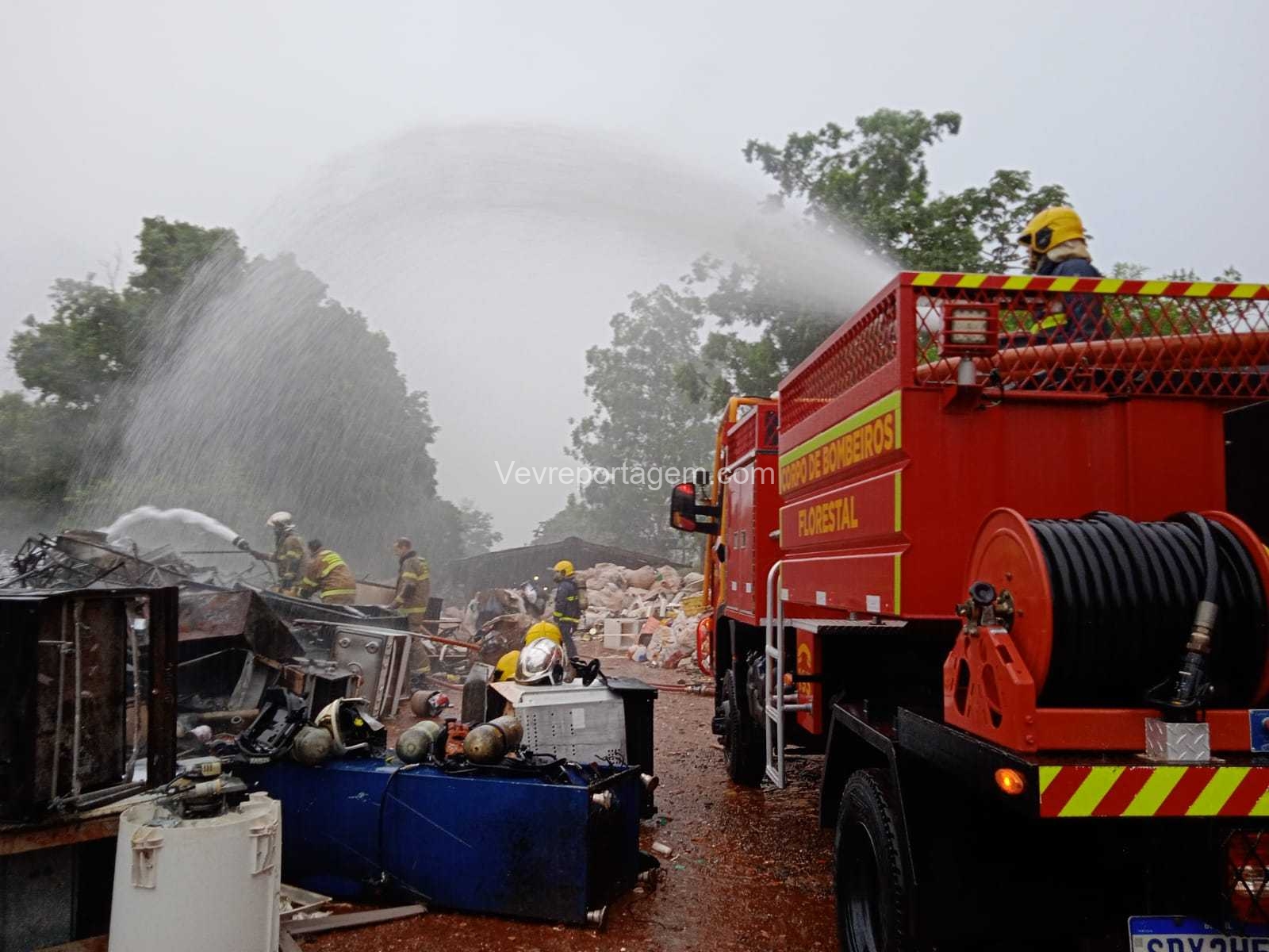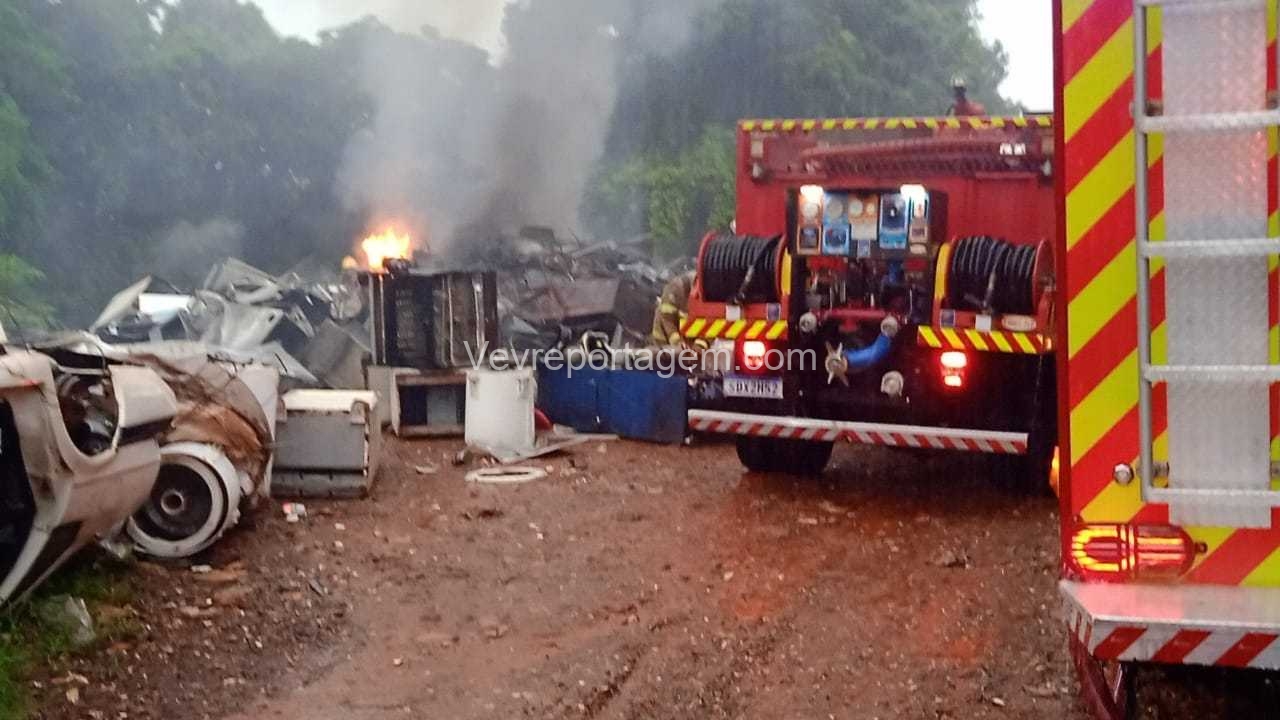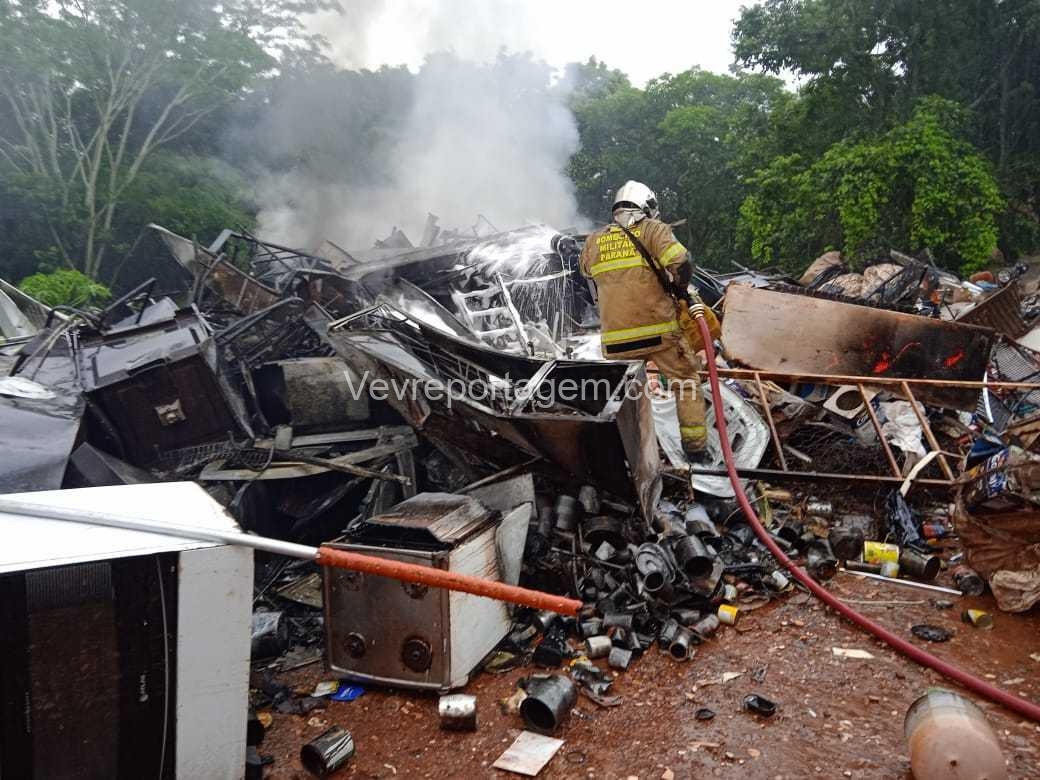 Na manhã desta segunda-feira, dia 8 de dezembro de 2025, os bombeiros do 9º Grupamento do Corpo de Bombeiros de Foz do Iguaçu foram acionados para atender um incêndio em uma empresa de recicláveis localizada na Rua Inácio Franco, na região do bairro Porto Belo.