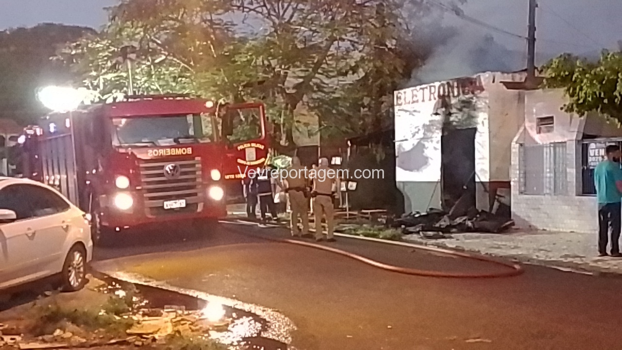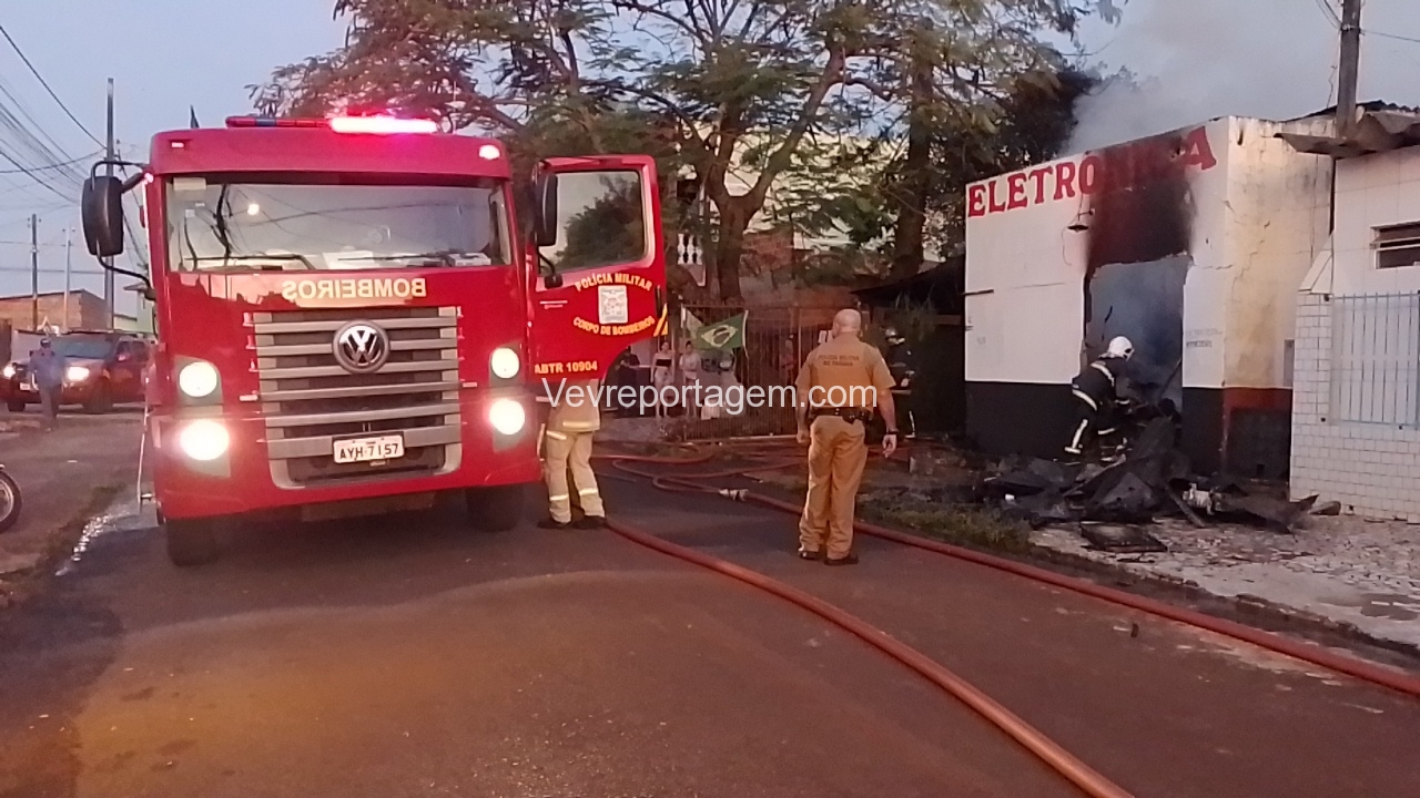Os bombeiros chegaram no local e rapidamente começaram a combater as chamas, pois, já tinha tomado toda a eletrônica.