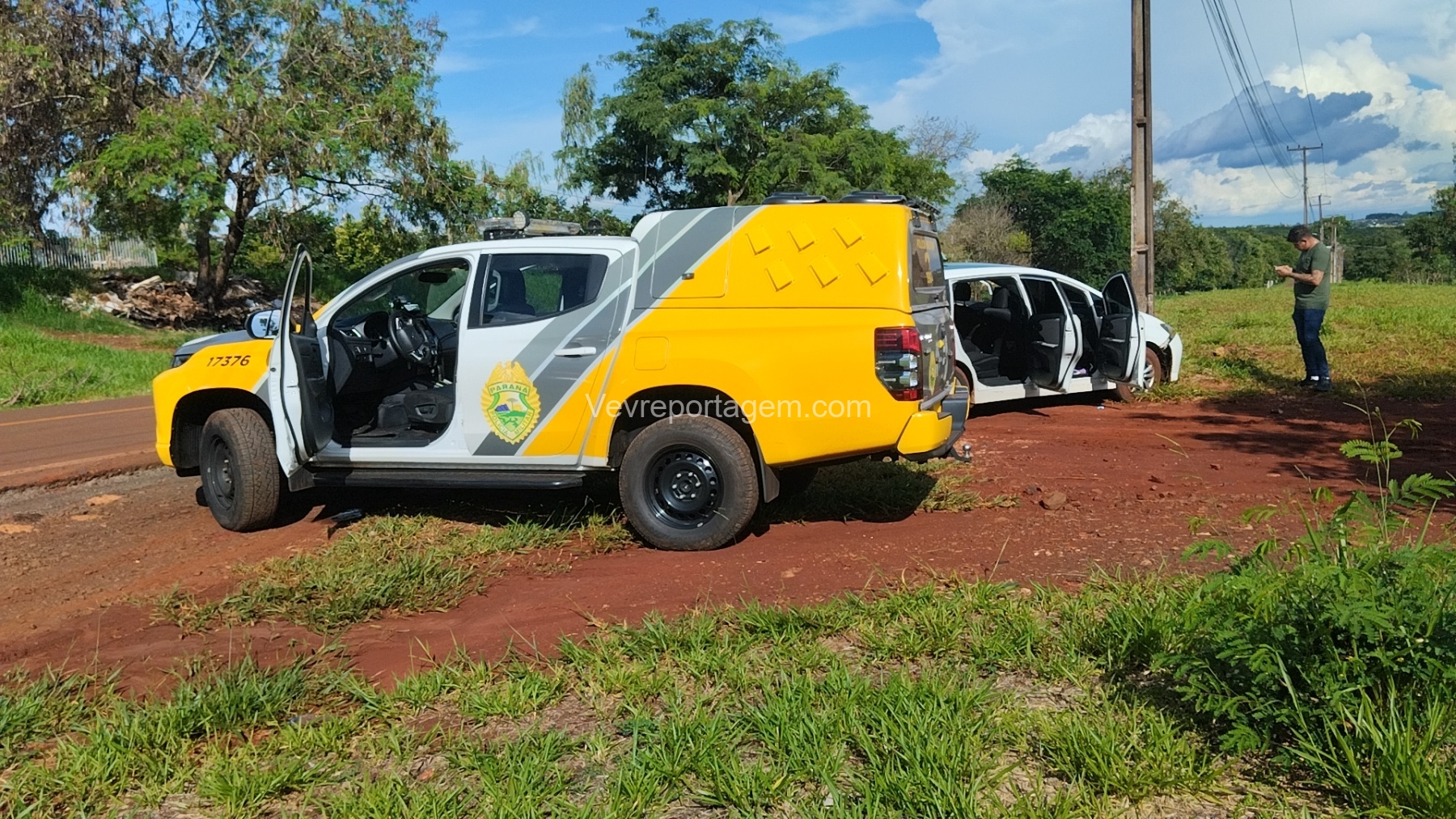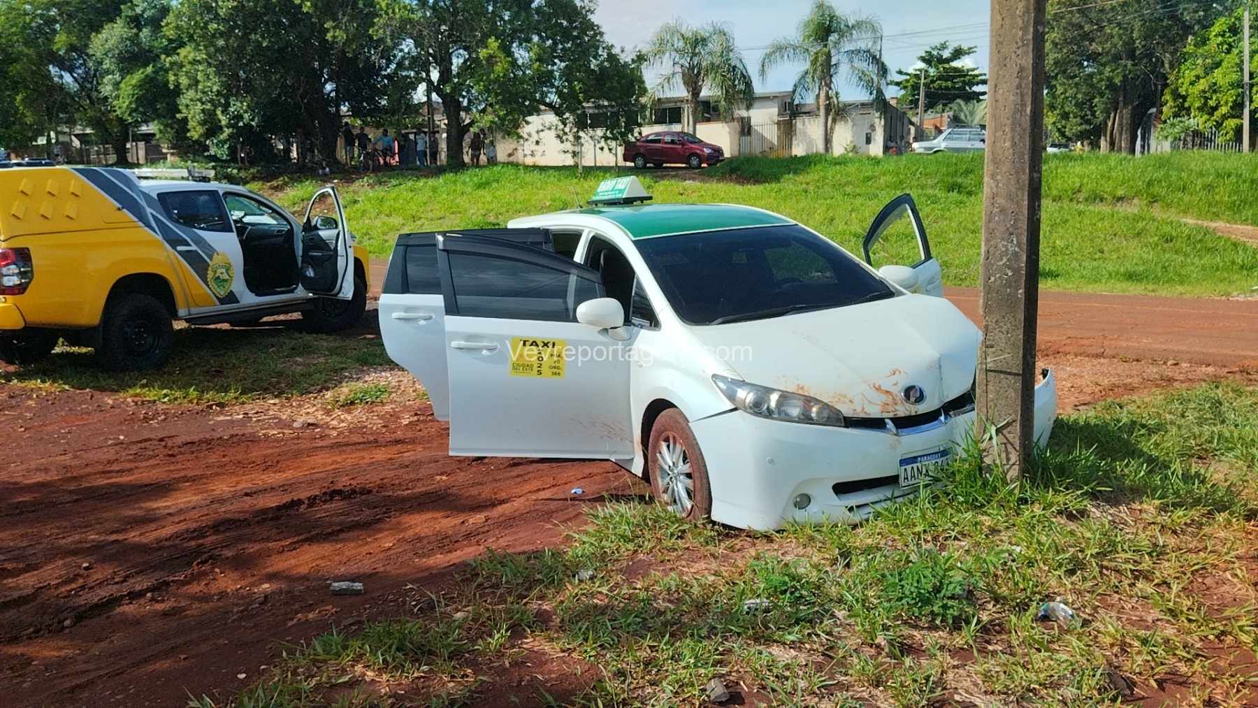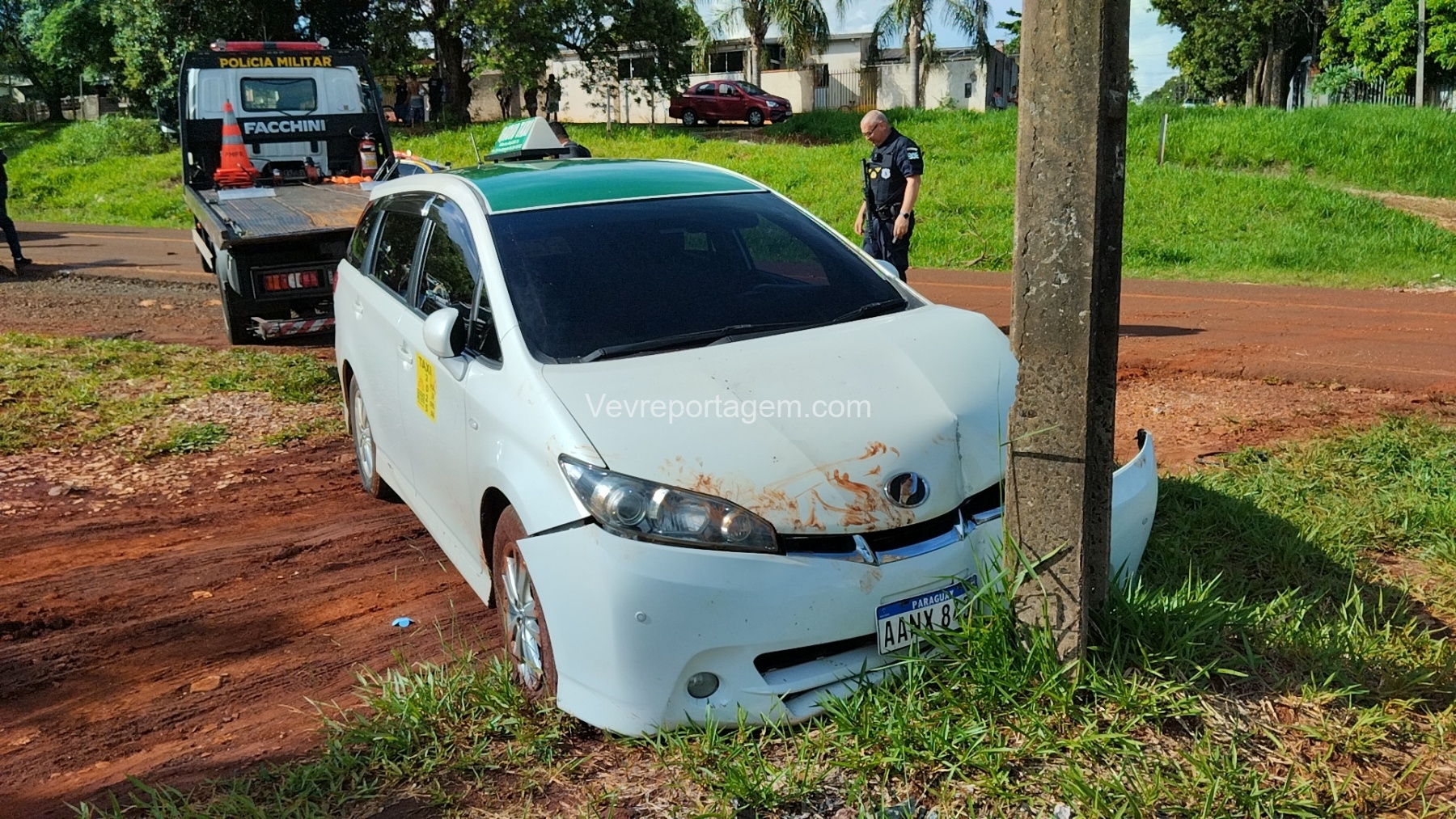 Sem controle, o táxi acabou colidindo contra um poste, encerrando a fuga veicular. Na sequência, foi iniciado acompanhamento a pé, e o suspeito foi alcançado e detido cerca de duas quadras depois, já na Rua João Paulo Damaradzki.