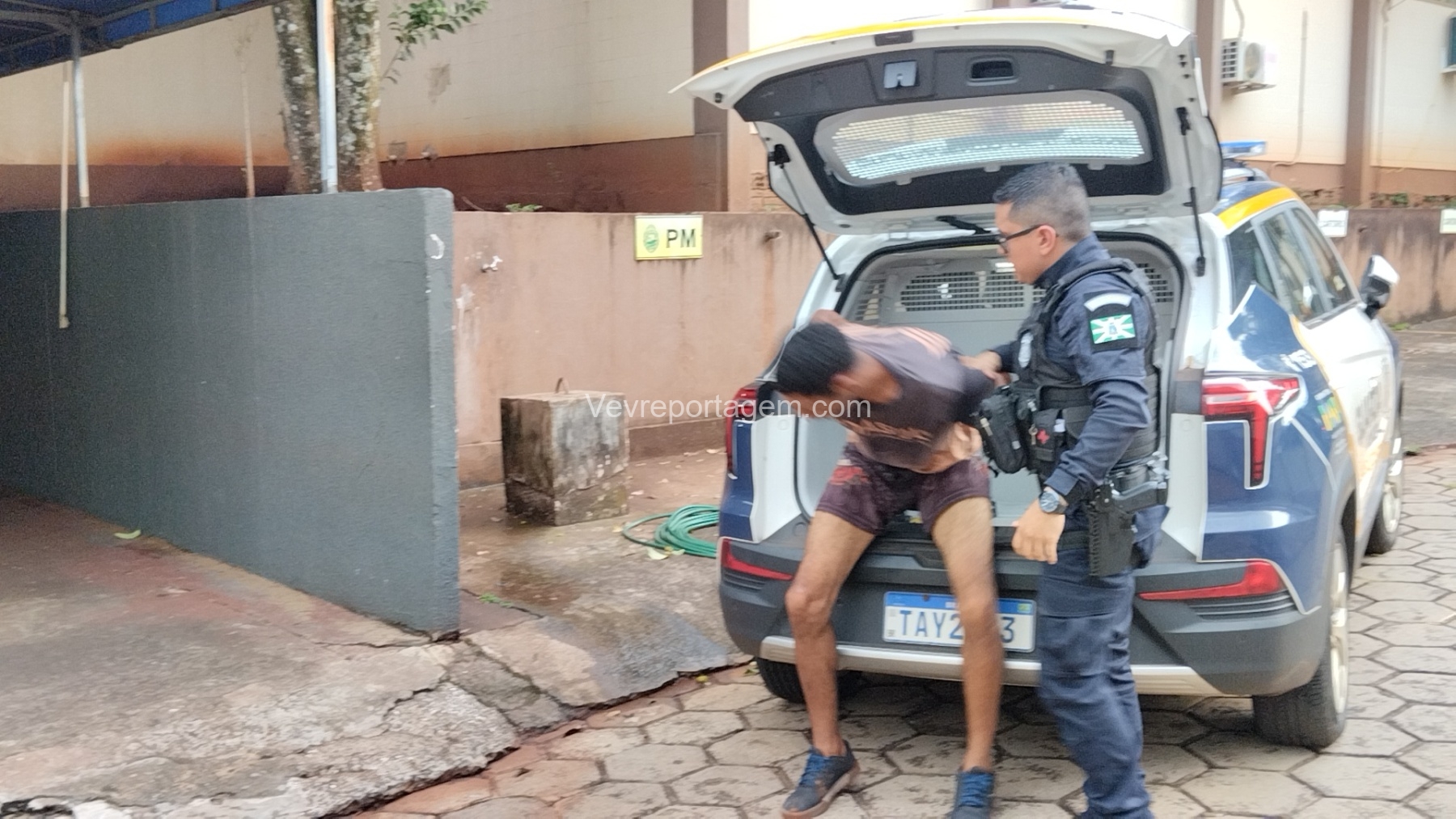 O veículo foi recuperado e o suspeito recebeu voz de prisão, sendo encaminhado juntamente com o automóvel à Delegacia de Polícia Civil para os procedimentos cabíveis. O caso foi registrado como roubo, crime contra o patrimônio.