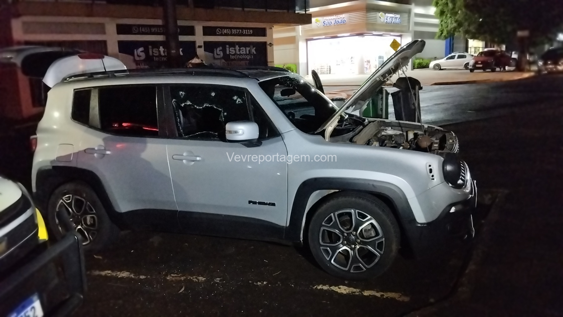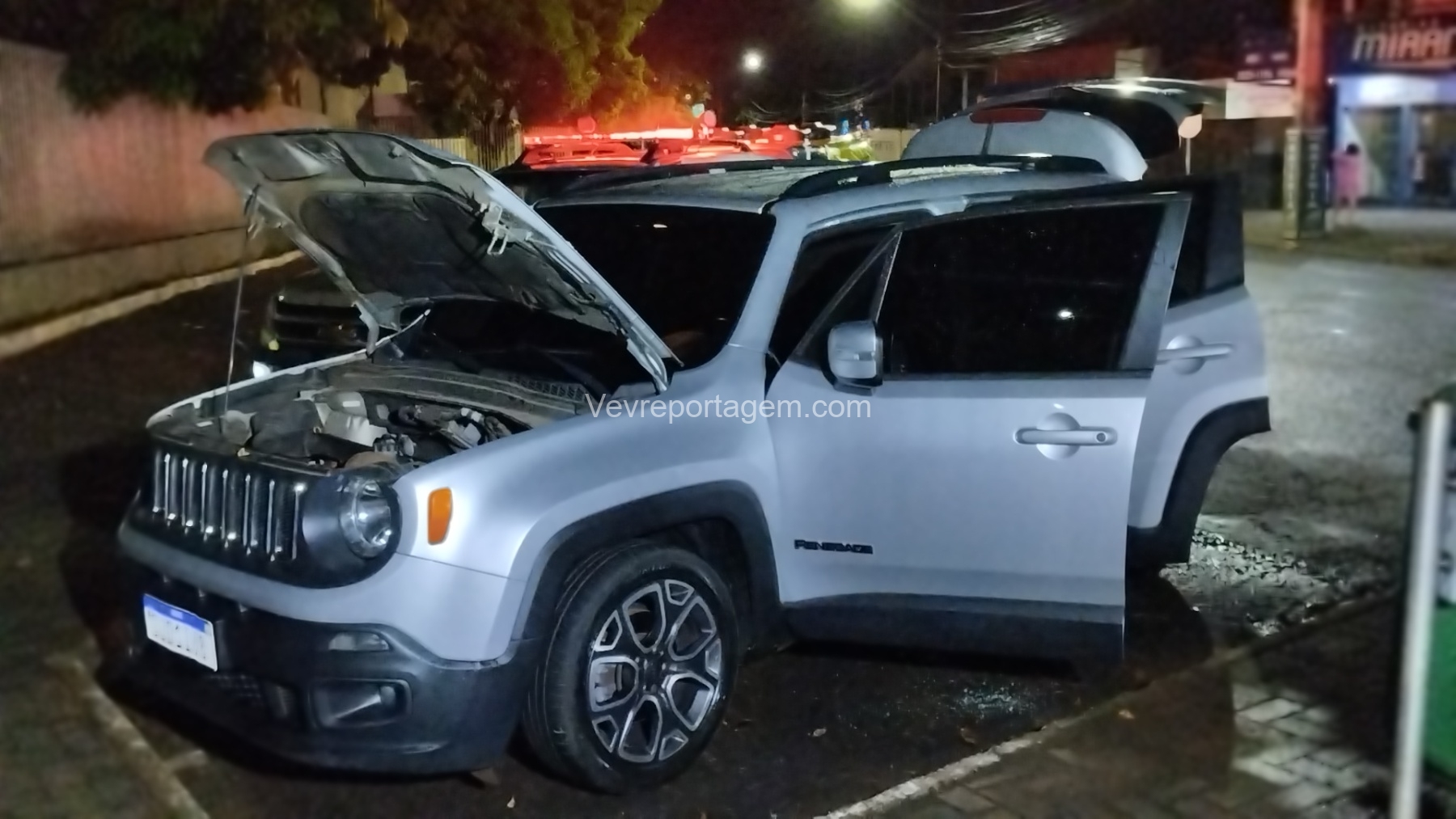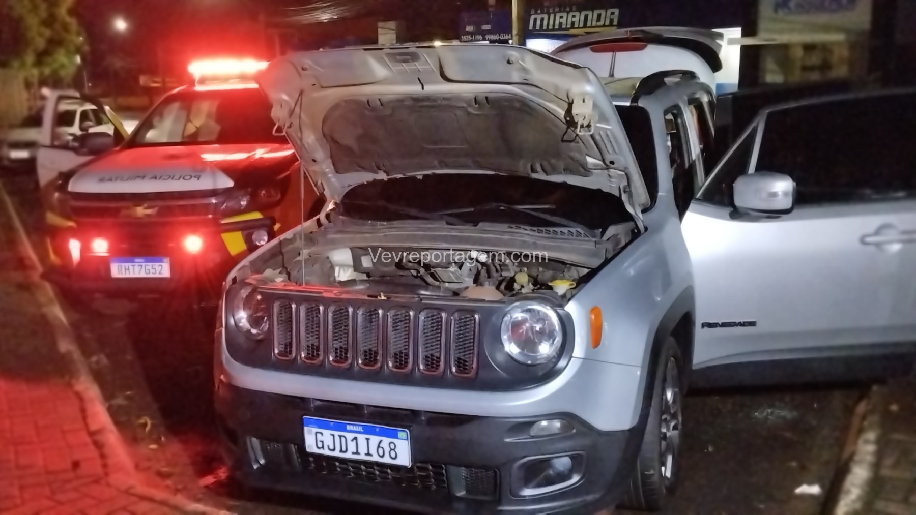 De acordo com as informações, os policiais avistaram um veículo Jeep Renegade, de cor prata, estacionado em via pública em frente a uma igreja católica. Ao realizarem a consulta da placa GJD1I68 no sistema policial, foi constatado que a numeração parcial do chassi não correspondia com a que estava gravada nos vidros do veículo.