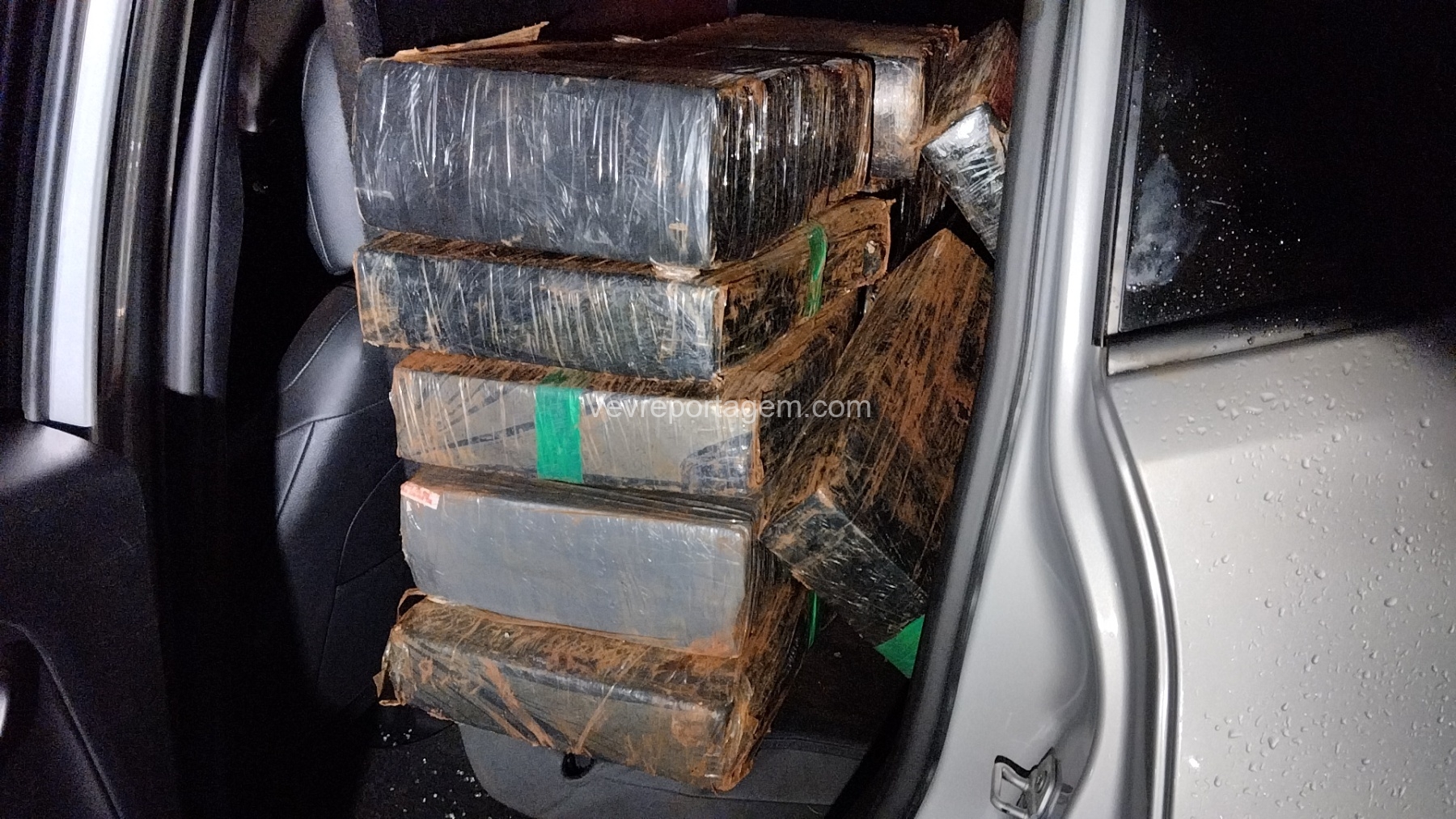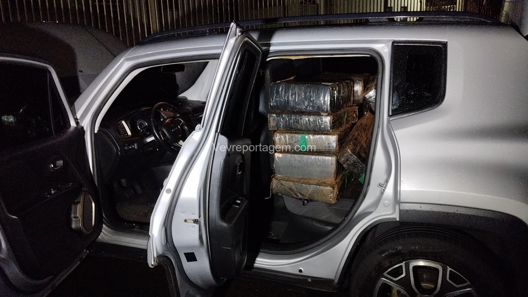 O veículo estava trancado e, com o auxílio de lanternas, os policiais conseguiram visualizar, através dos vidros, diversos fardos contendo tabletes de substância análoga à maconha em seu interior.