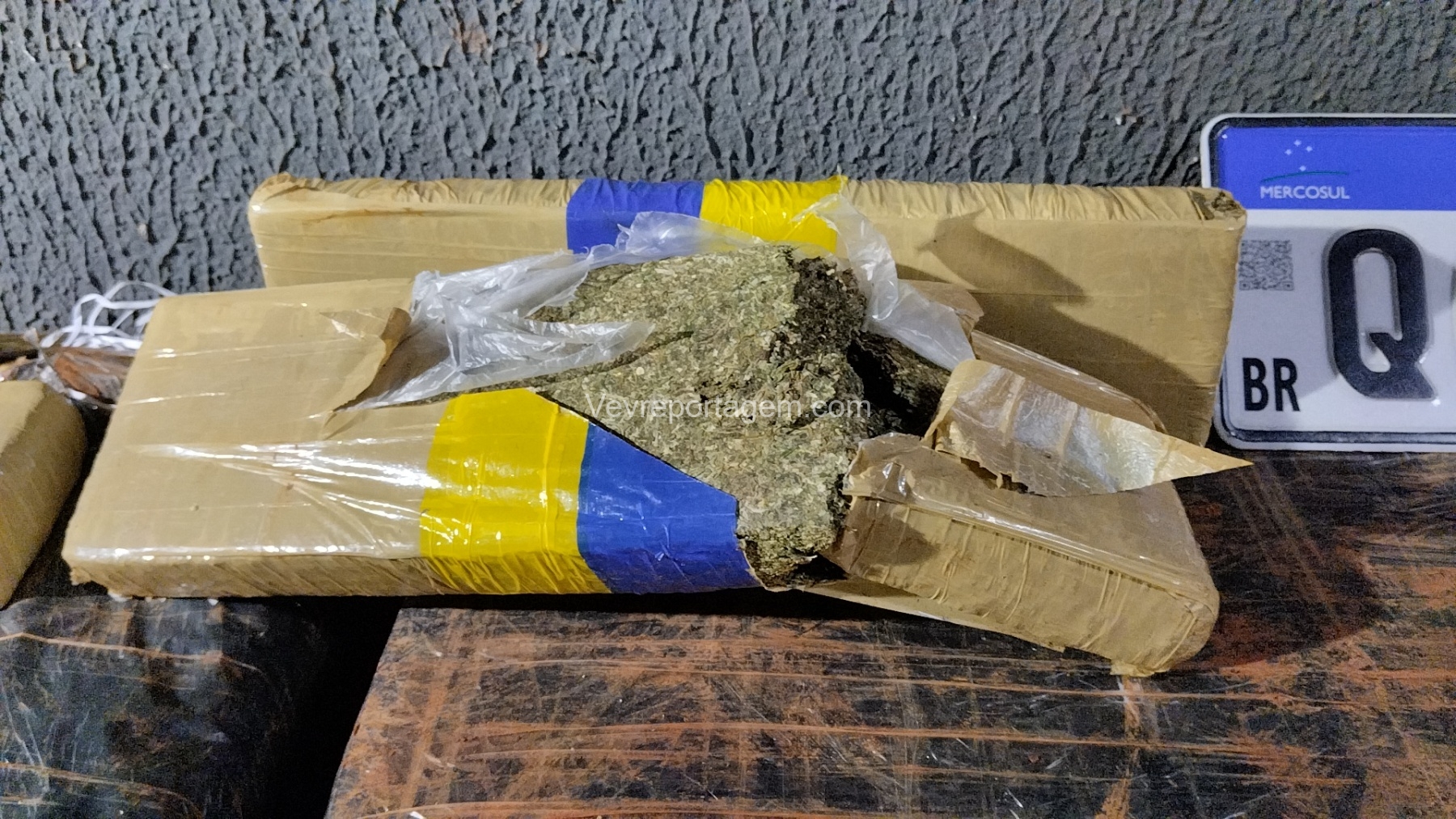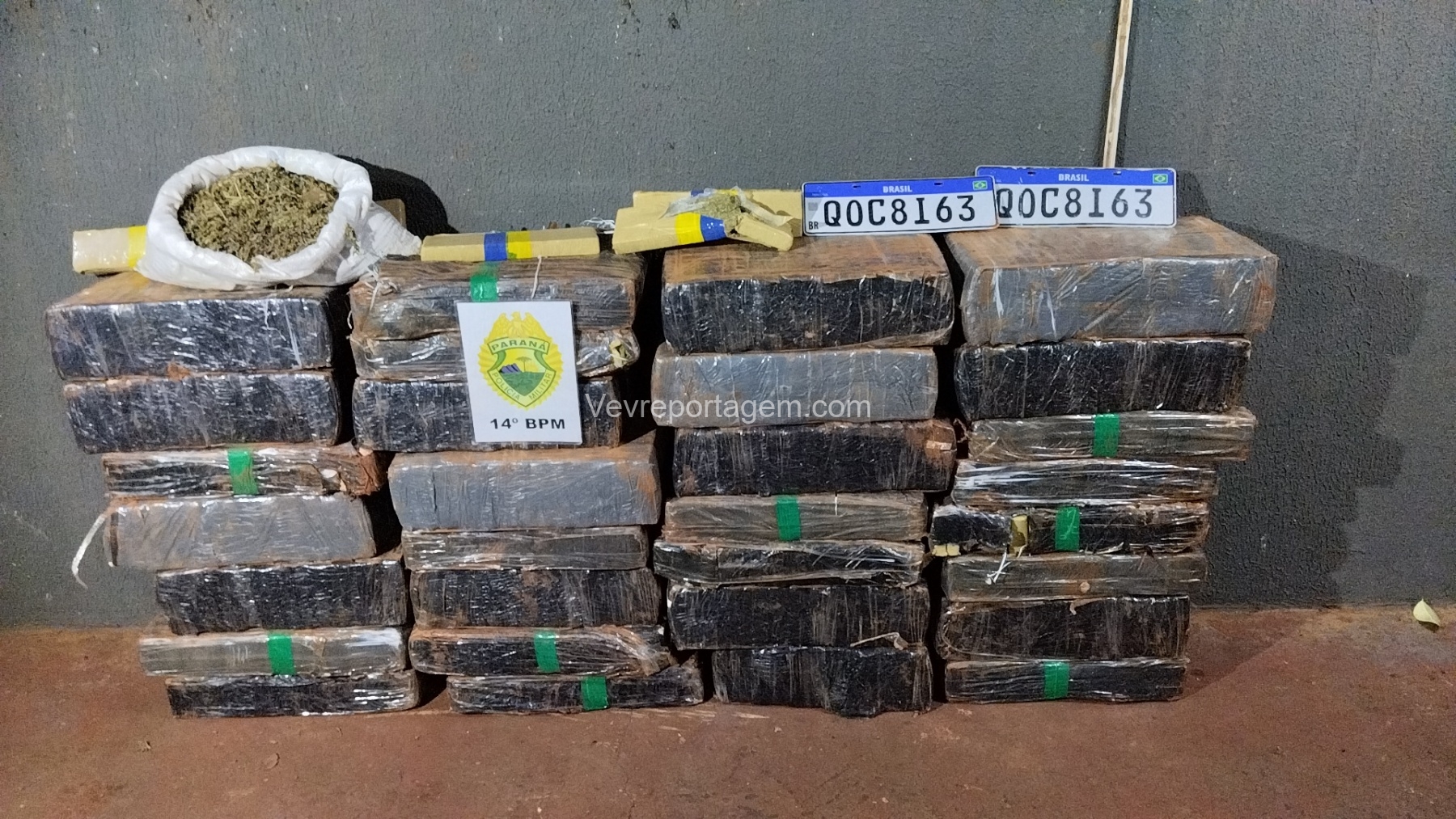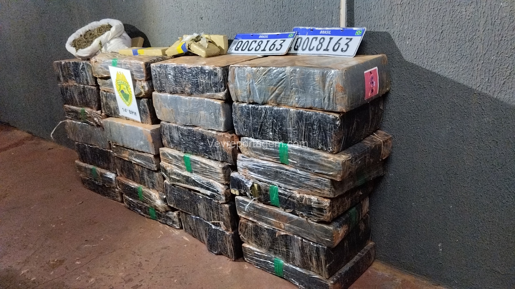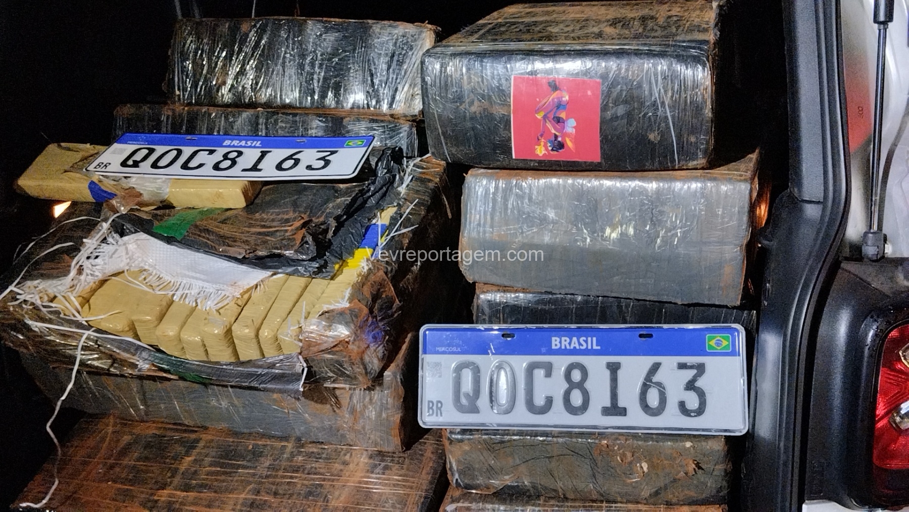Para averiguação, o vidro dianteiro direito do veículo foi quebrado. Após a abertura, foi confirmado que a carga se tratava, de fato, de tabletes de maconha, além de serem localizadas no interior do automóvel as placas originais QOC8I63, indicando adulteração do veículo.