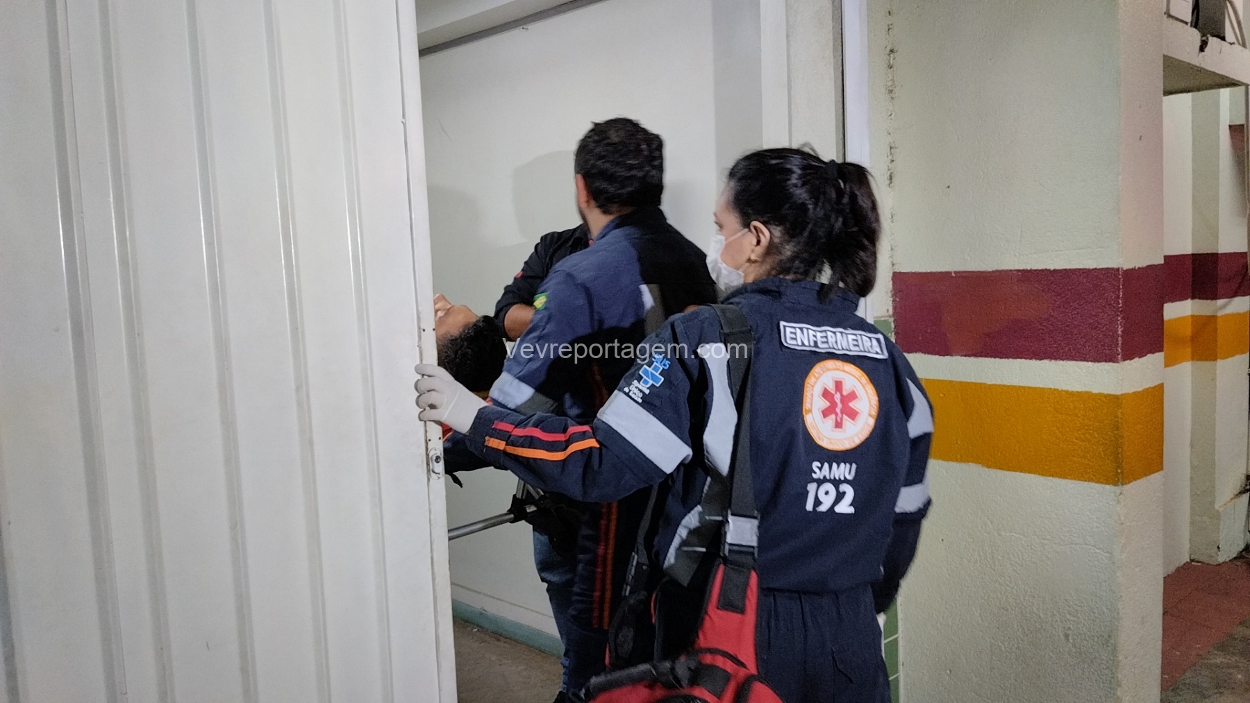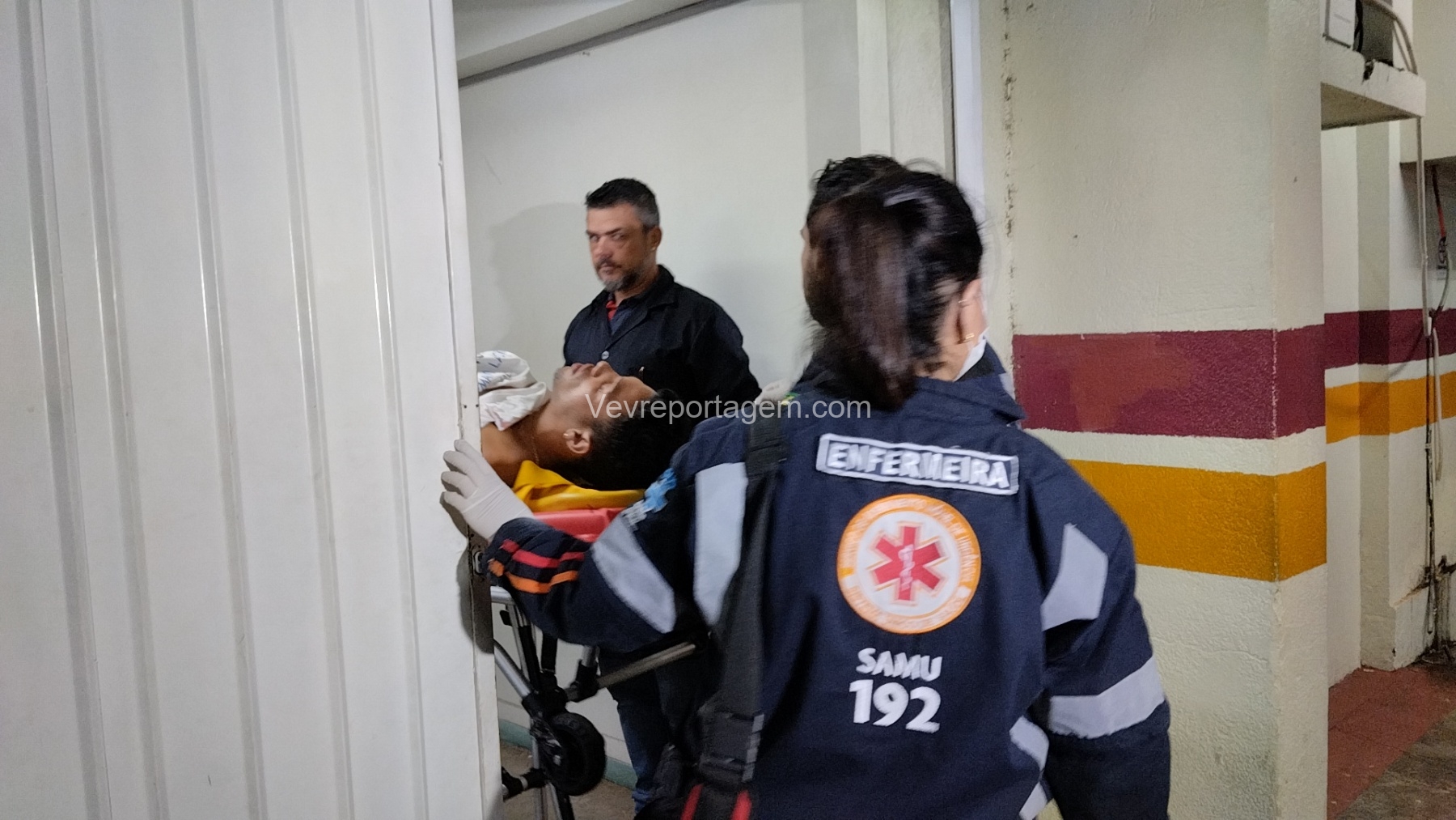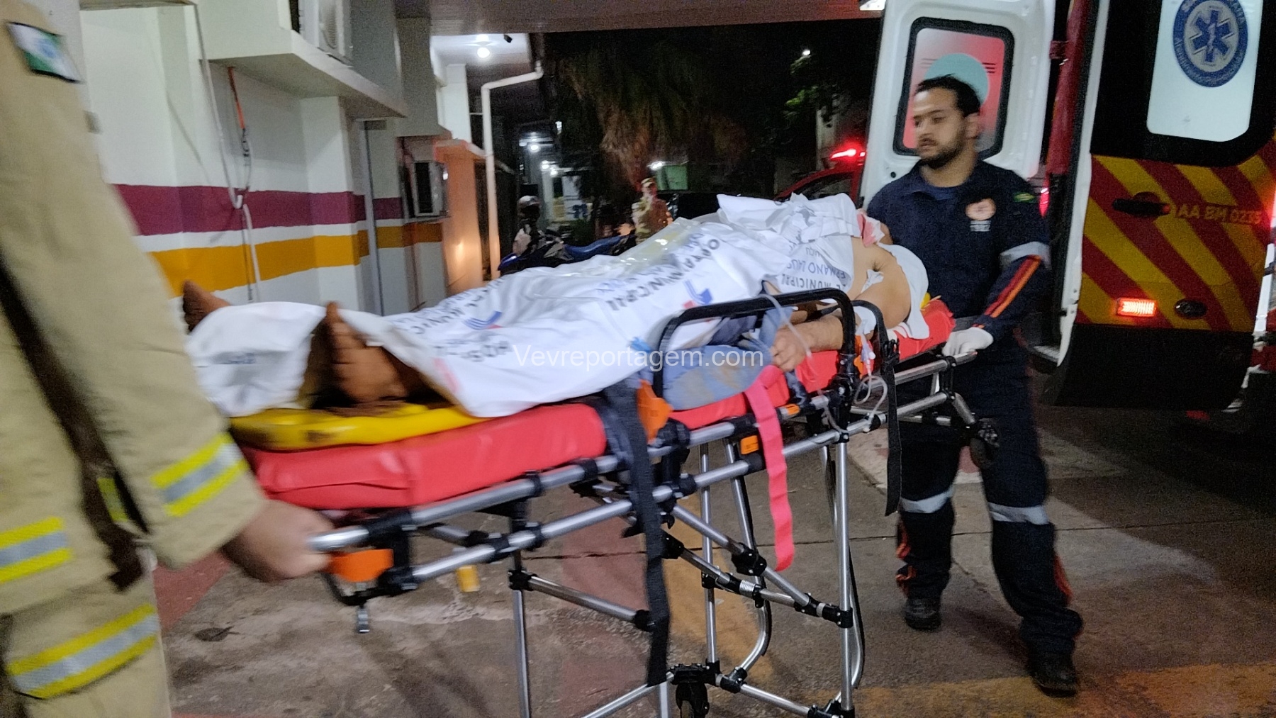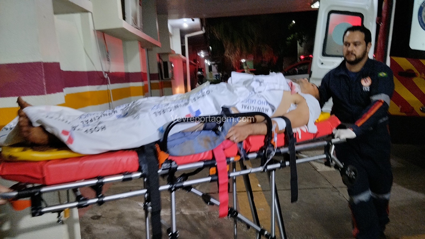 No local, as equipes constataram que um jovem havia sido alvejado, apresentando ferimentos na região do abdômen. A vítima foi rapidamente imobilizada e encaminhada para o interior da ambulância, onde recebeu atendimento do médico do SAMU.