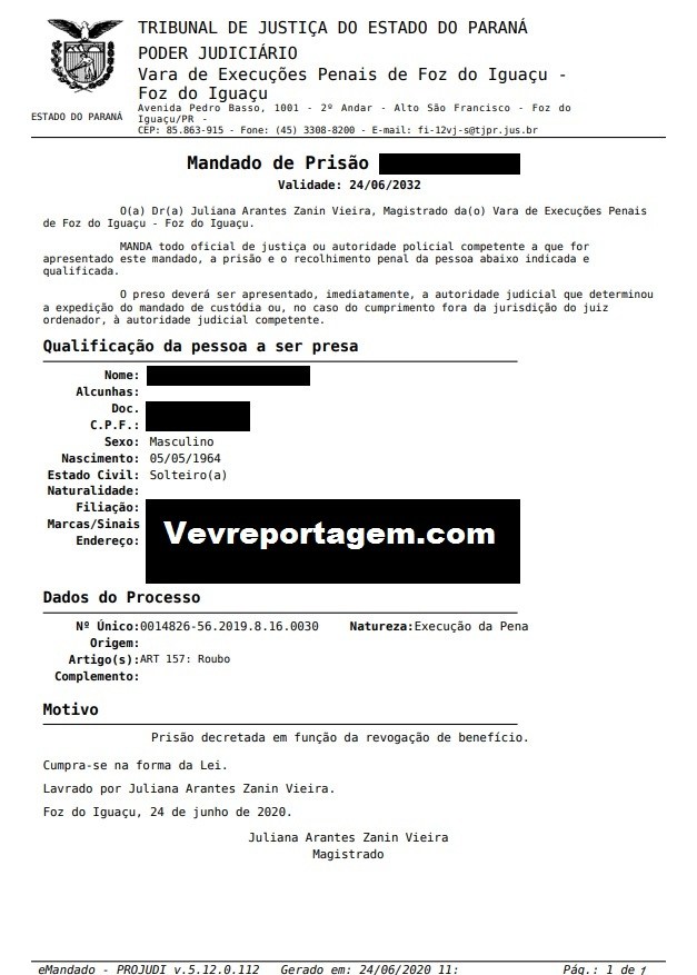 Na manhã desta quarta-feira, 24 de junho de 2020, os investigadores do GDE ( Grupo de Diligencias Especiais) de Foz do Iguaçu, deram fiel cumprimento ao mandado de prisão a um homem no bairro Três Lagoas.