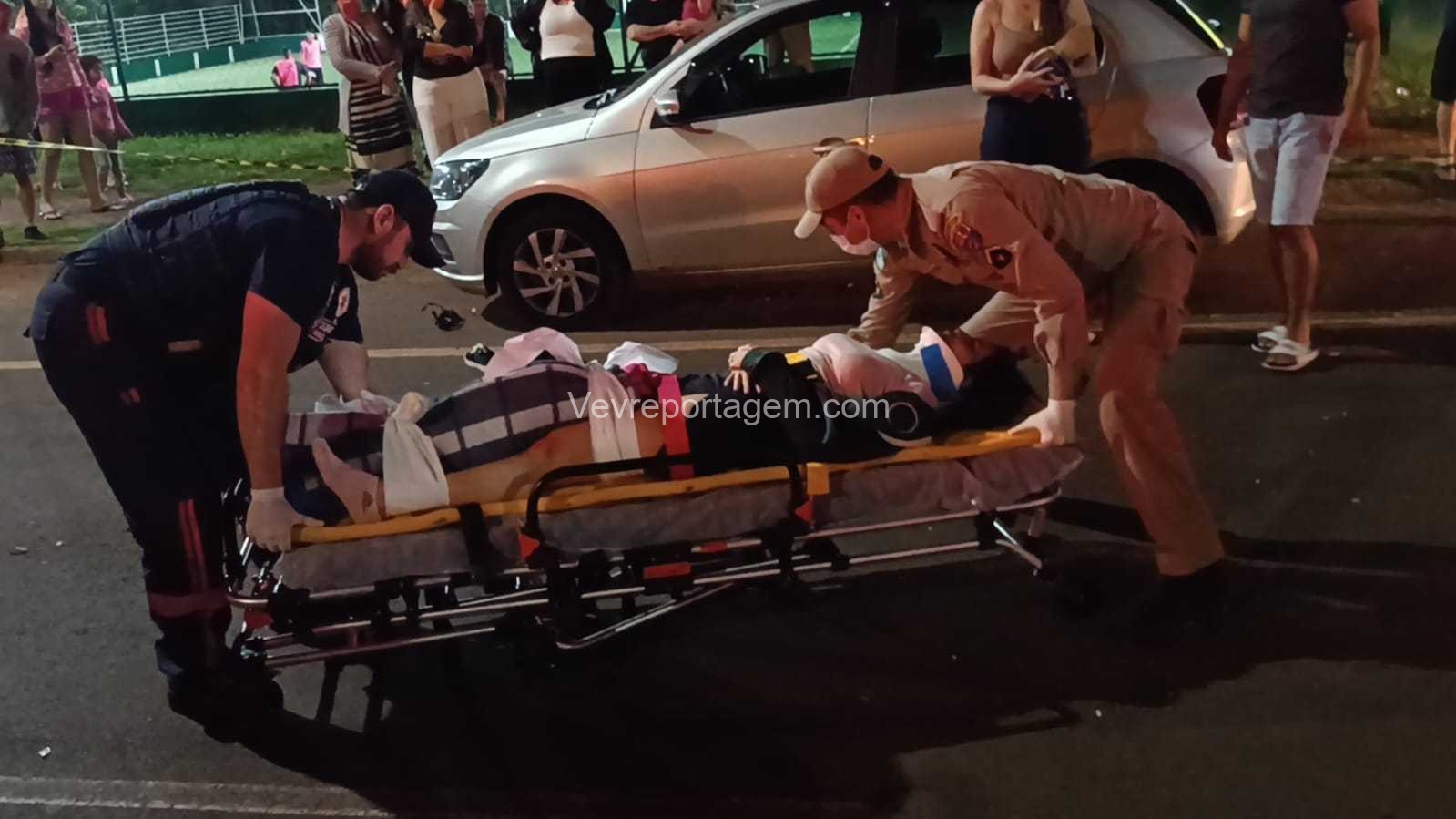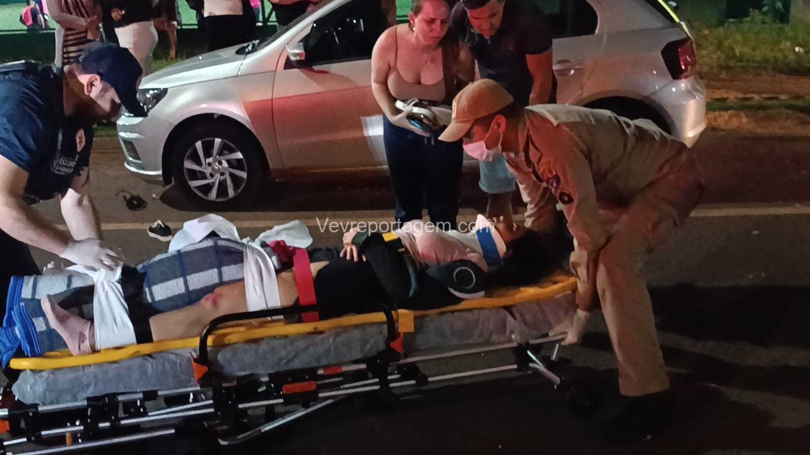 Ela foi rapidamente imobilizada e encaminhada à ambulância para avaliação médica mais detalhada, sendo posteriormente levada ao Hospital Municipal. Os ocupantes do automóvel não se feriram.