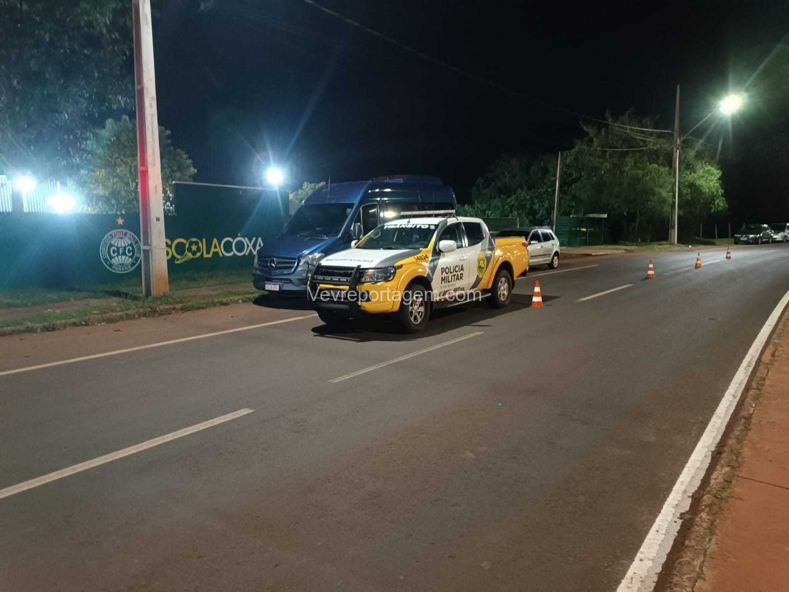 A Polícia Militar assumiu a ocorrência no local e realizou os procedimentos cabíveis relacionados ao acidente de trânsito.