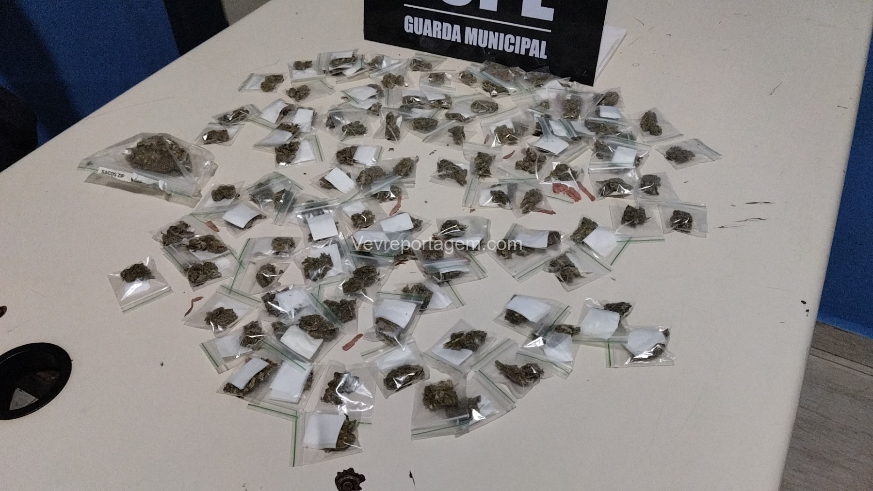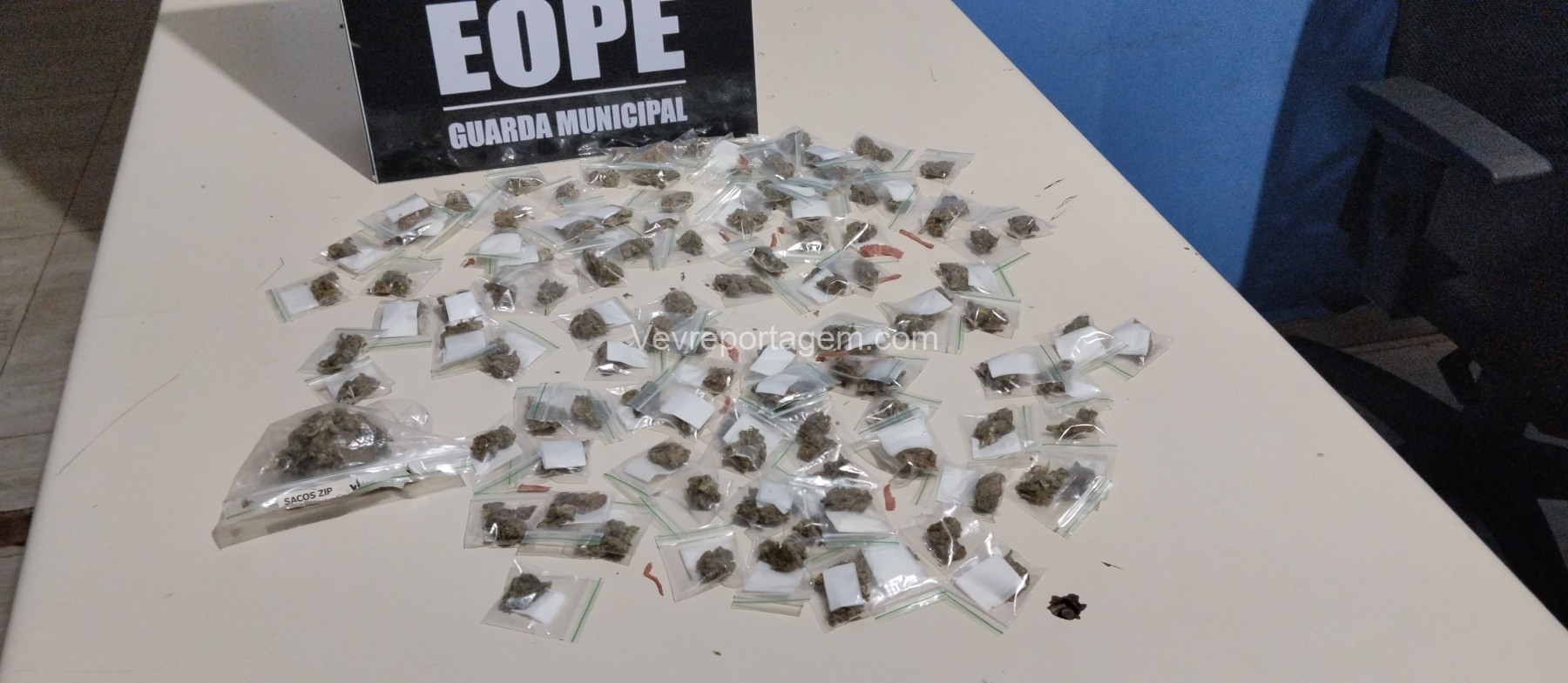 Diante da fundada suspeita, a equipe realizou a abordagem nas proximidades de um dos blocos de um condomínio da região. Durante a revista, foram encontrados dentro da mochila aproximadamente 120 papelotes de maconha.