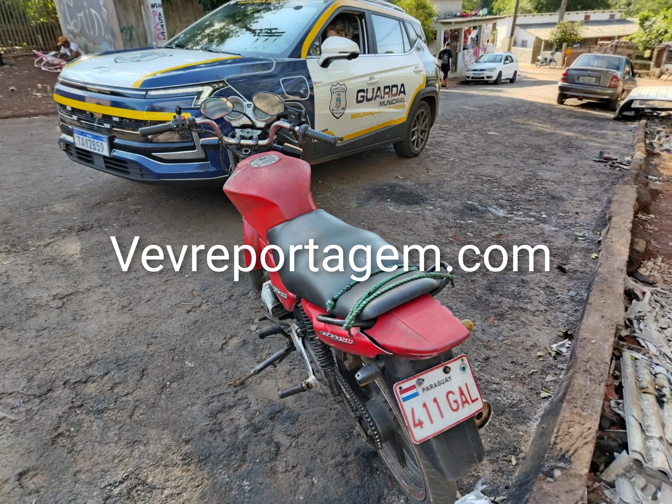 Foz do Iguaçu (PR), 24 de maio de 2025 — Uma motocicleta com sinais identificadores adulterados foi apreendida na tarde deste sábado (24) pela Guarda Municipal de Foz do Iguaçu. A ocorrência foi registrada na comunidade conhecida como Favela do Bolo, localizada na Rua Gonçalves Ledo, no bairro Jardim Jupira.