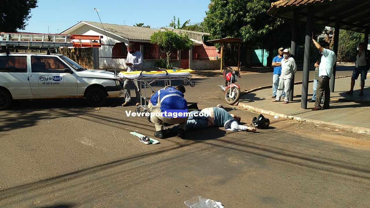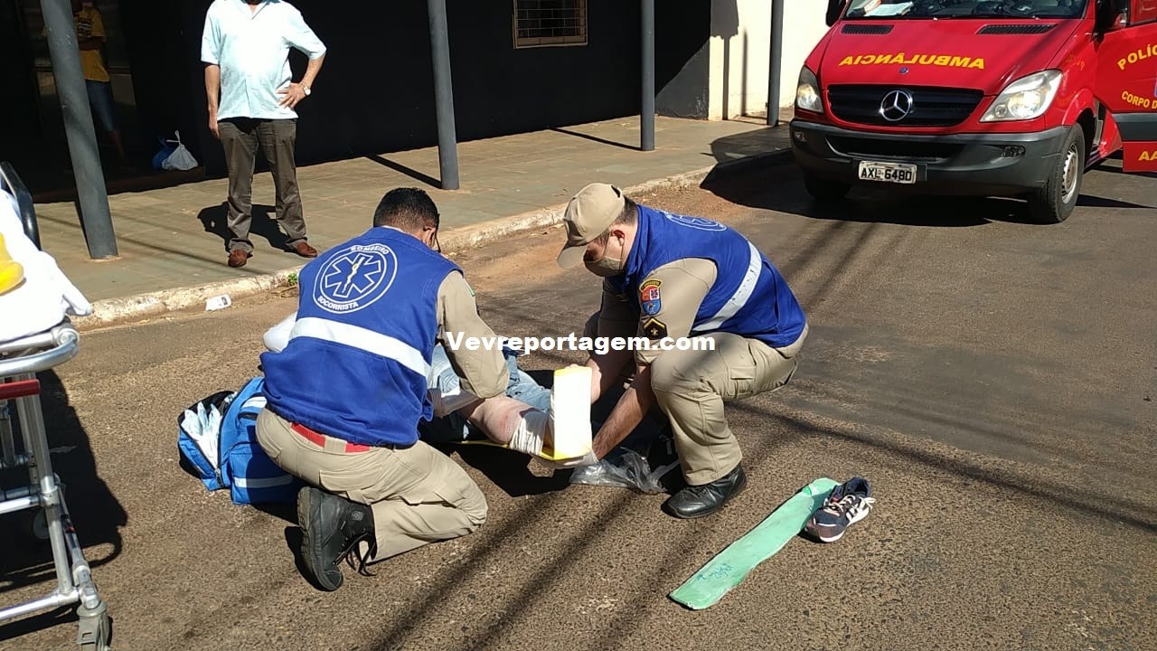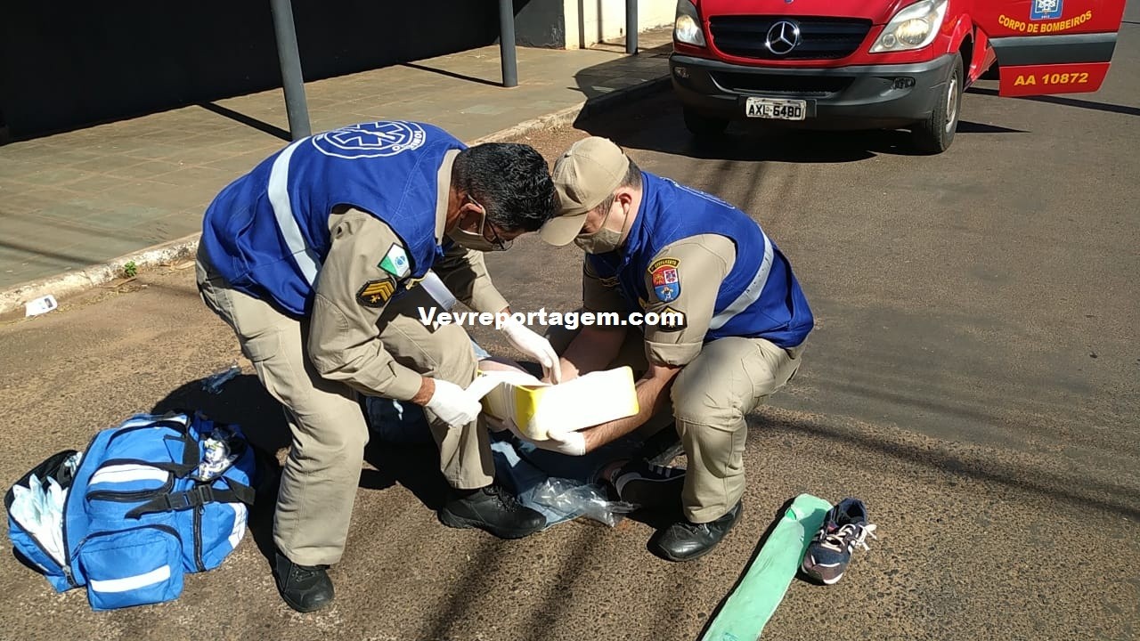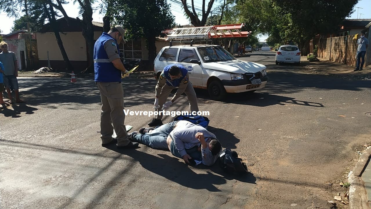 Na manhã desta quarta-feira, 05 de agosto de 2020, por volta das 10h30 minutos, socorristas do siate foram acionados para deslocarem até a Rua Julio Brecheret cruzamento com a Rua Sebastião Ribeiro, no bairro Jardim Dourado, para darem atendimento a um acidente de trânsito envolvendo motocicleta em automóvel, onde o motociclista estaria em solo com uma suspeita de fratura na perna.