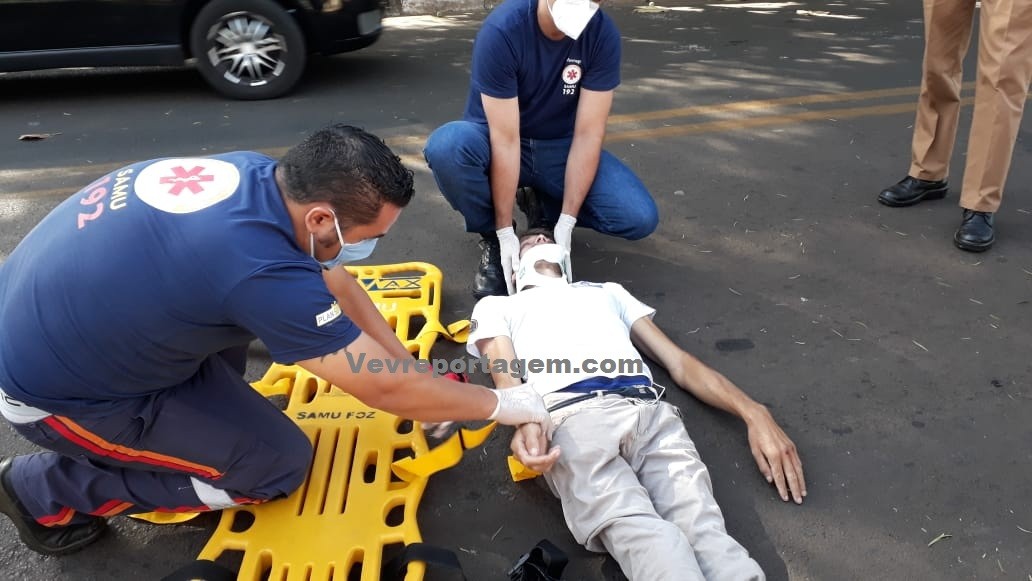 No local, os socorristas do SAMU constataram a ocorrência, o motociclista estava em solo e sentia fortes dores pelo corpo, rapidamente o mesmo foi imobilizado e encaminhado para o interior da ambulância para melhor ser avaliado.