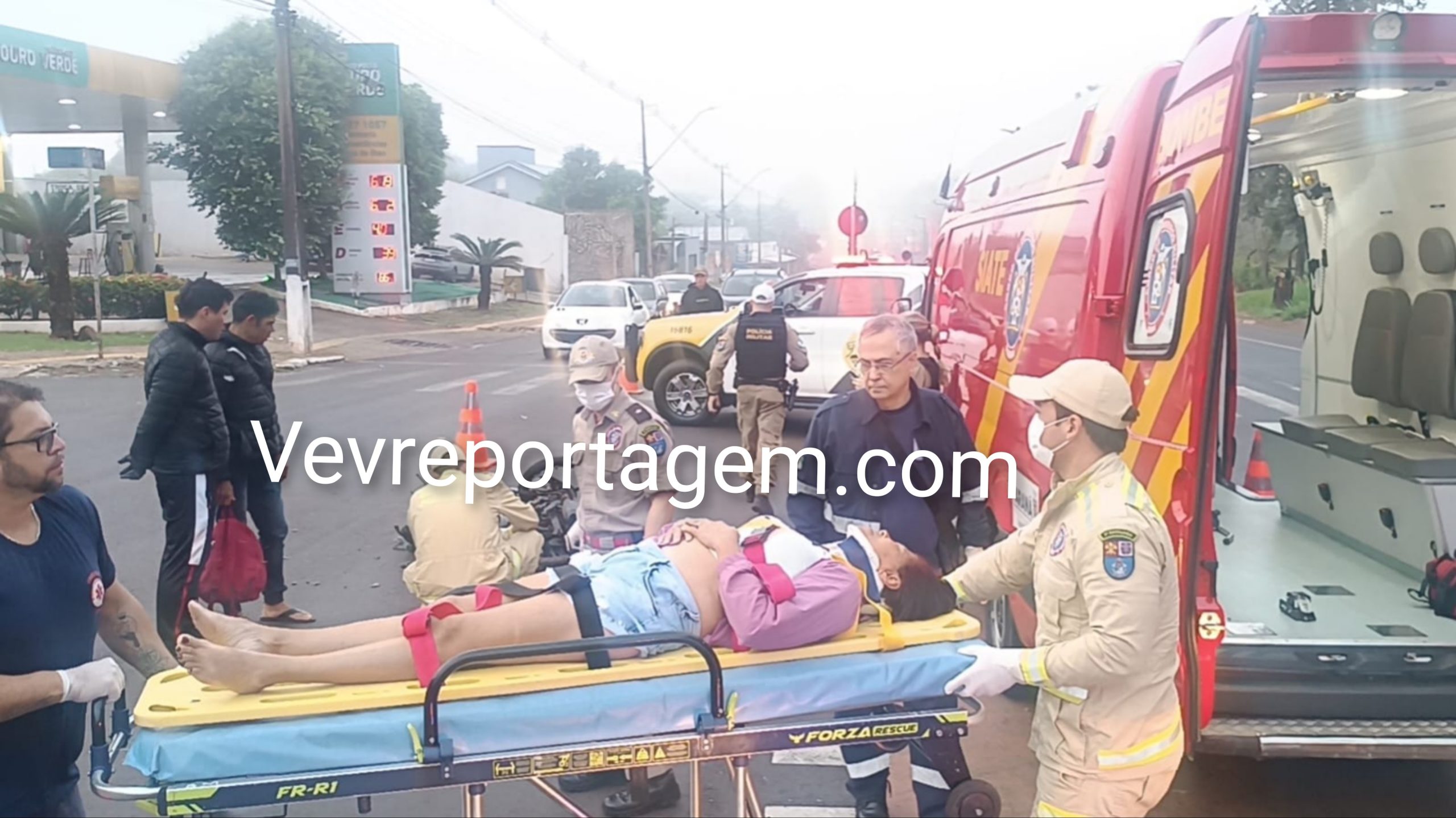 Ao chegarem ao local, os socorristas encontraram uma mulher caída ao solo, consciente, orientada e reclamando de fortes dores pelo corpo. Ela foi imobilizada, colocada na maca e encaminhada à ambulância para avaliação médica inicial, realizada pelo médico de plantão do SAMU.