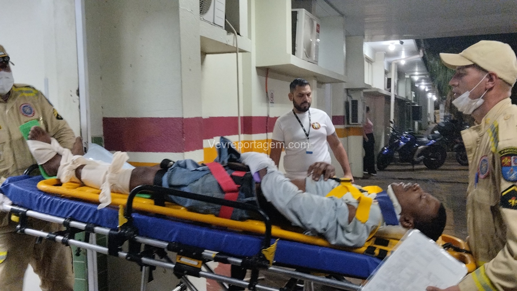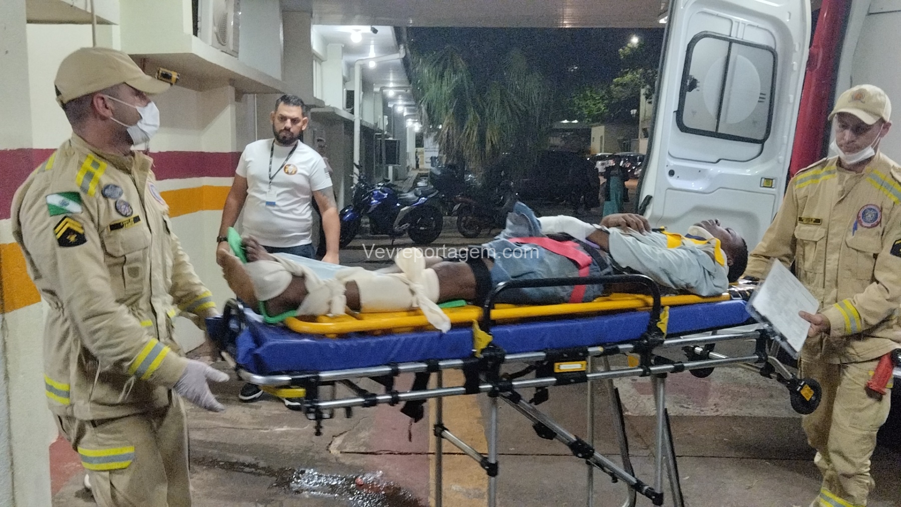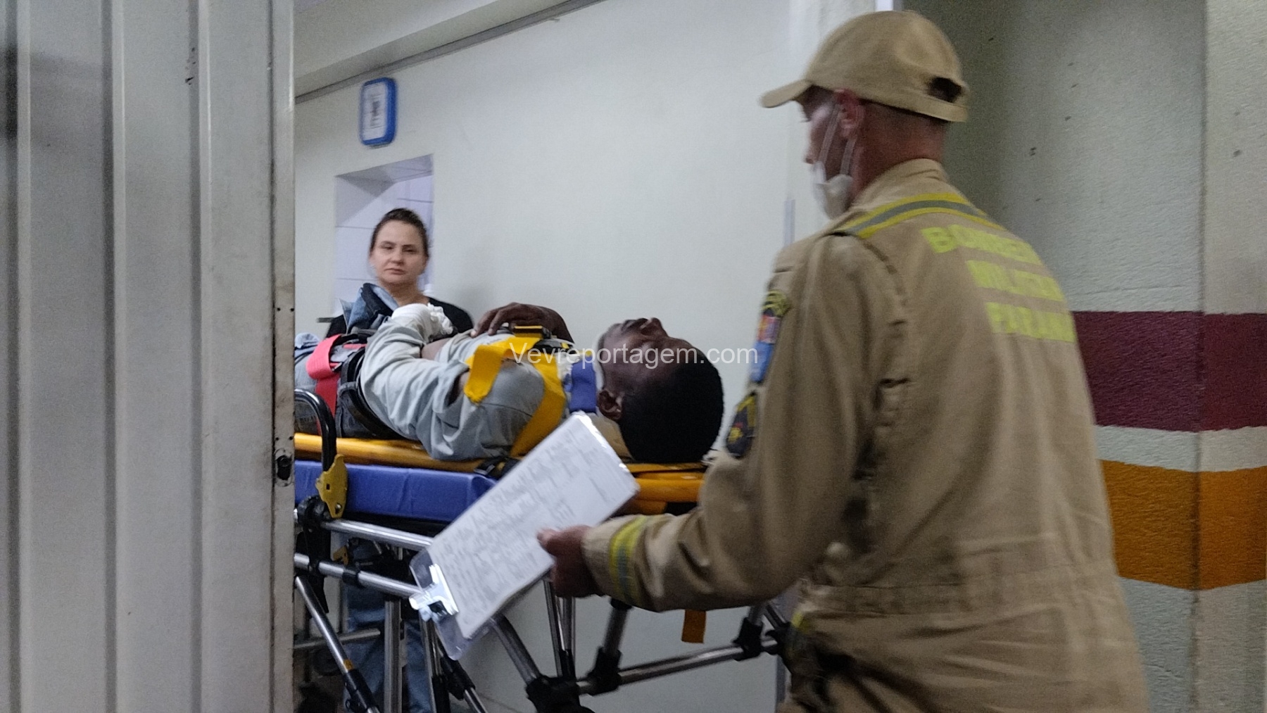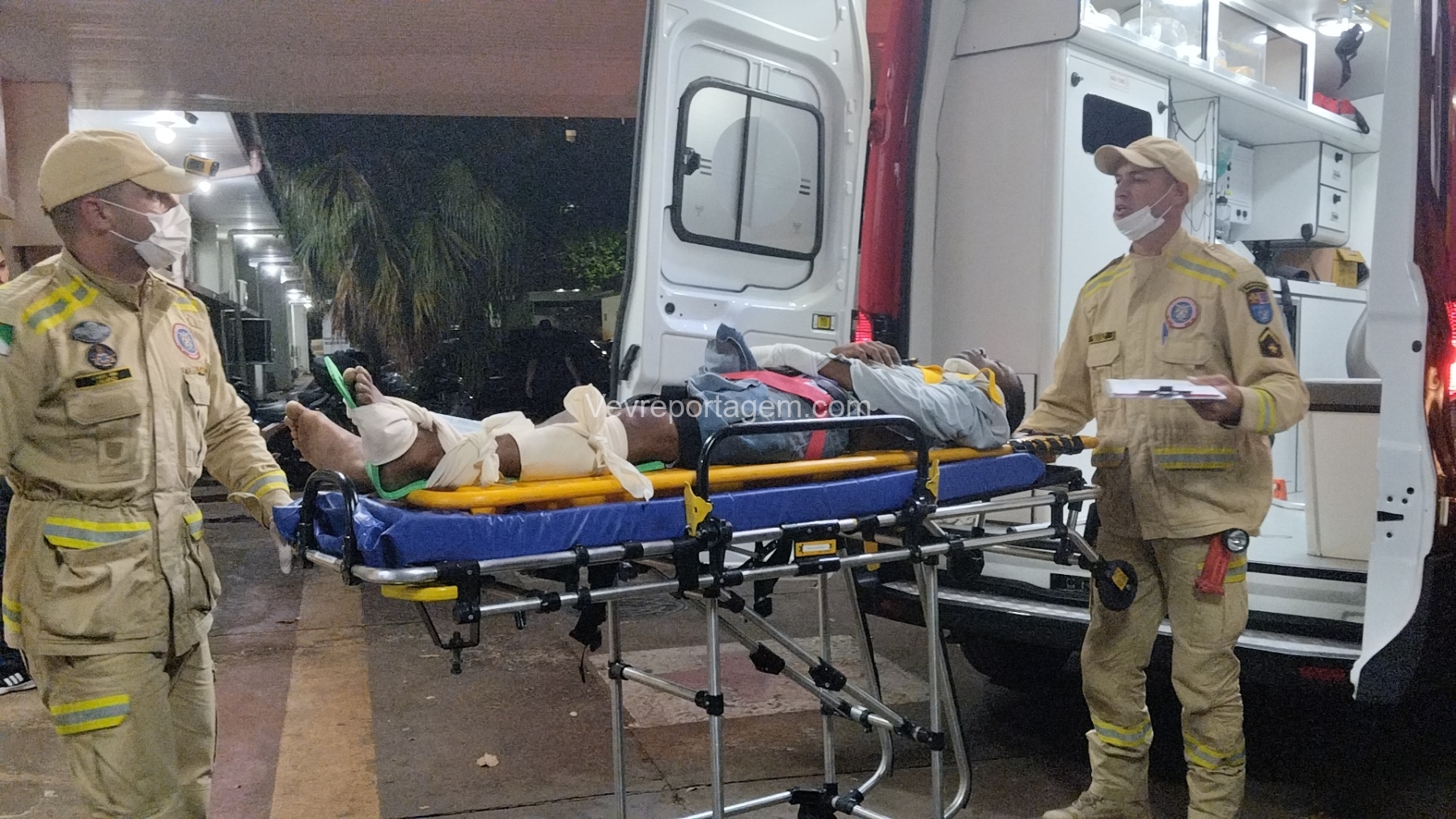 No entanto, ao chegarem ao local, os socorristas constataram que a situação não condizia com os relatos. A vítima, identificada como Ray Gustavo de Oliveira dos Santos, estava consciente, orientada e apresentava suspeita de fratura na perna esquerda, além de escoriações.