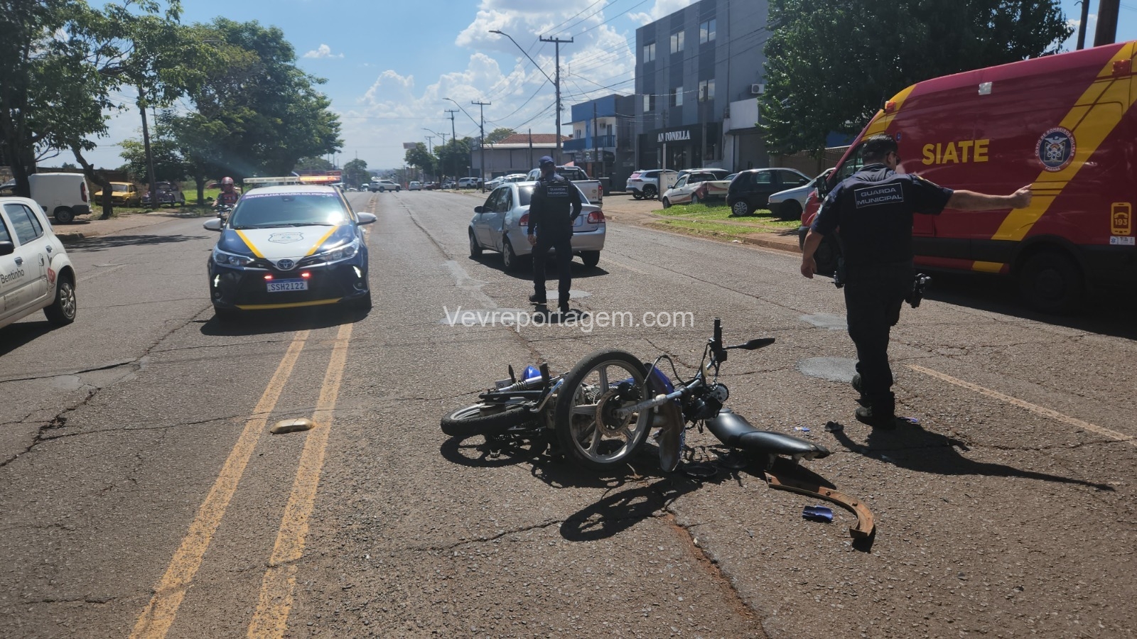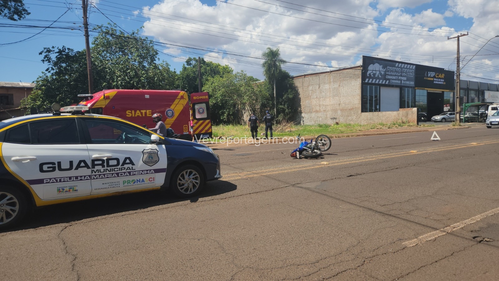 Um motociclista de 26 anos ficou ferido na tarde desta sexta-feira (6) após se envolver em um acidente de trânsito na Avenida República Argentina, nas proximidades do bairro Jardim Dona Fátima, em Foz do Iguaçu.