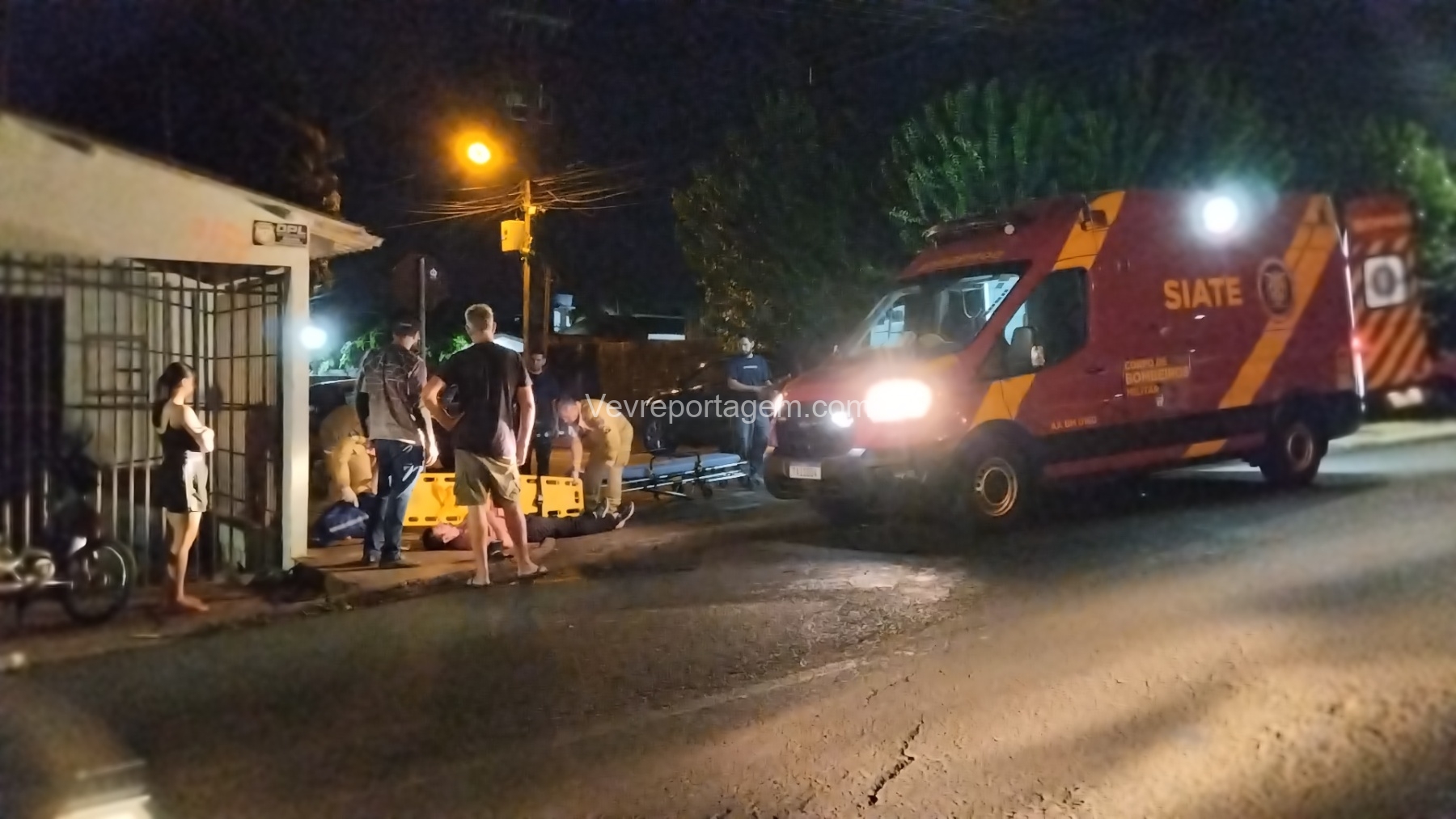 Na noite desta segunda-feira, 13 de abril de 2026, socorristas do SIATE foram acionados para atender a um acidente de trânsito no cruzamento das ruas Mané Garrincha e Fidel Damem, no bairro Jardim Itália.