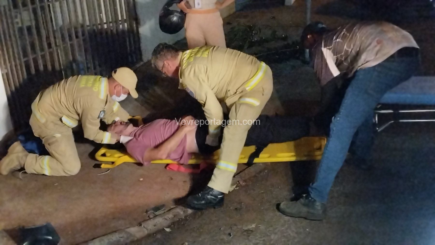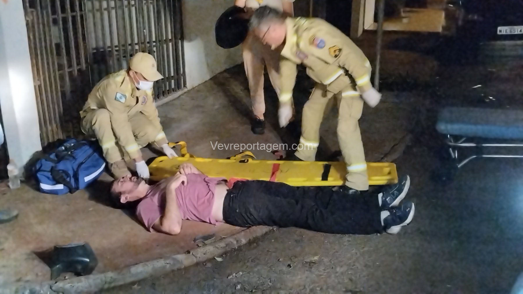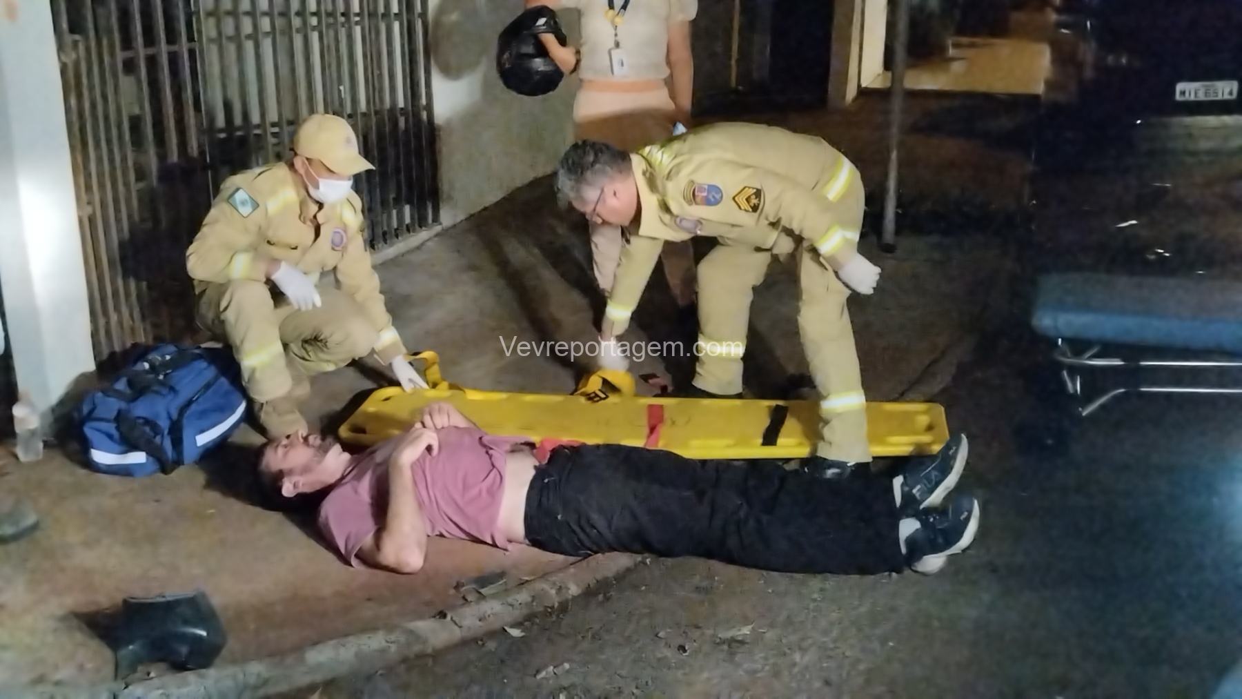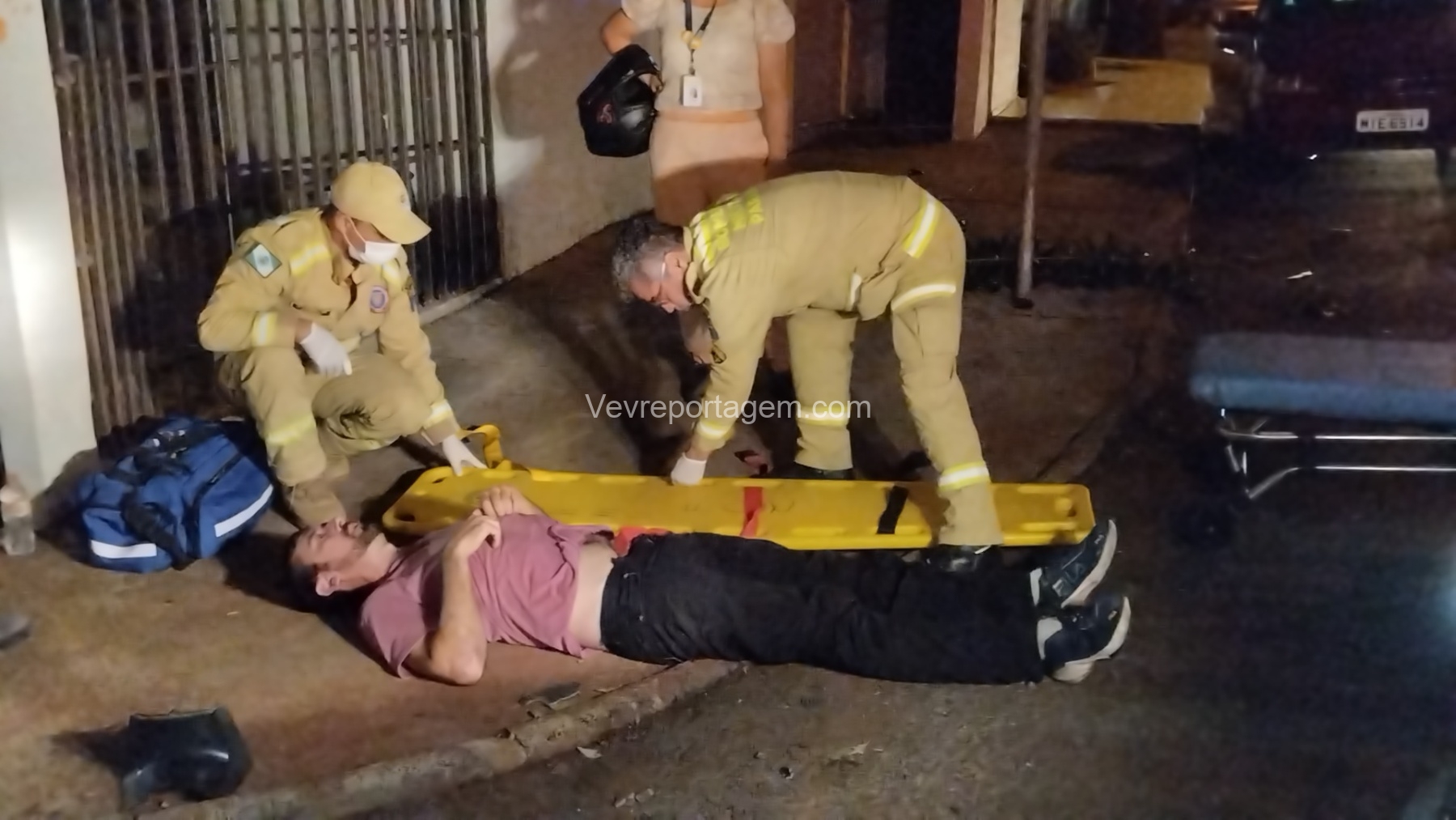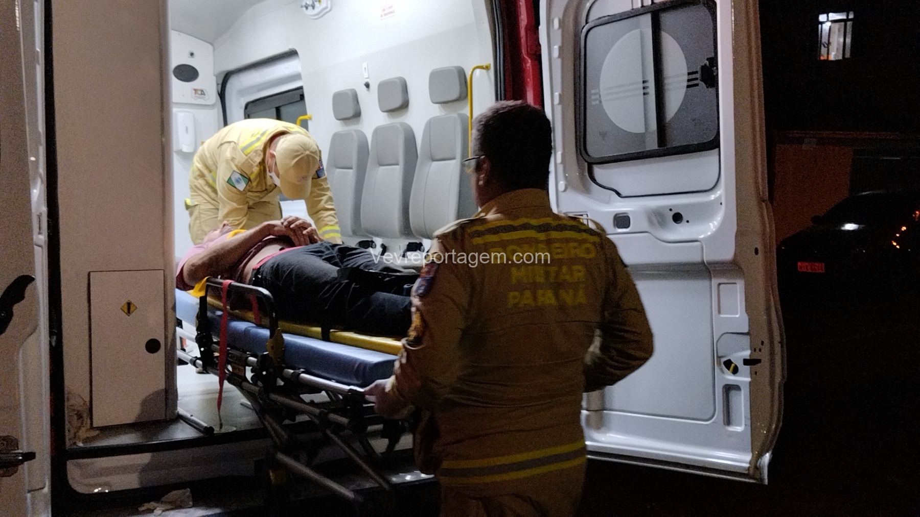 Durante a avaliação, os socorristas identificaram suspeita de fratura em uma das costelas. A vítima foi imobilizada, colocada na maca e encaminhada na ambulância ao Hospital Municipal para avaliação médica mais detalhada.