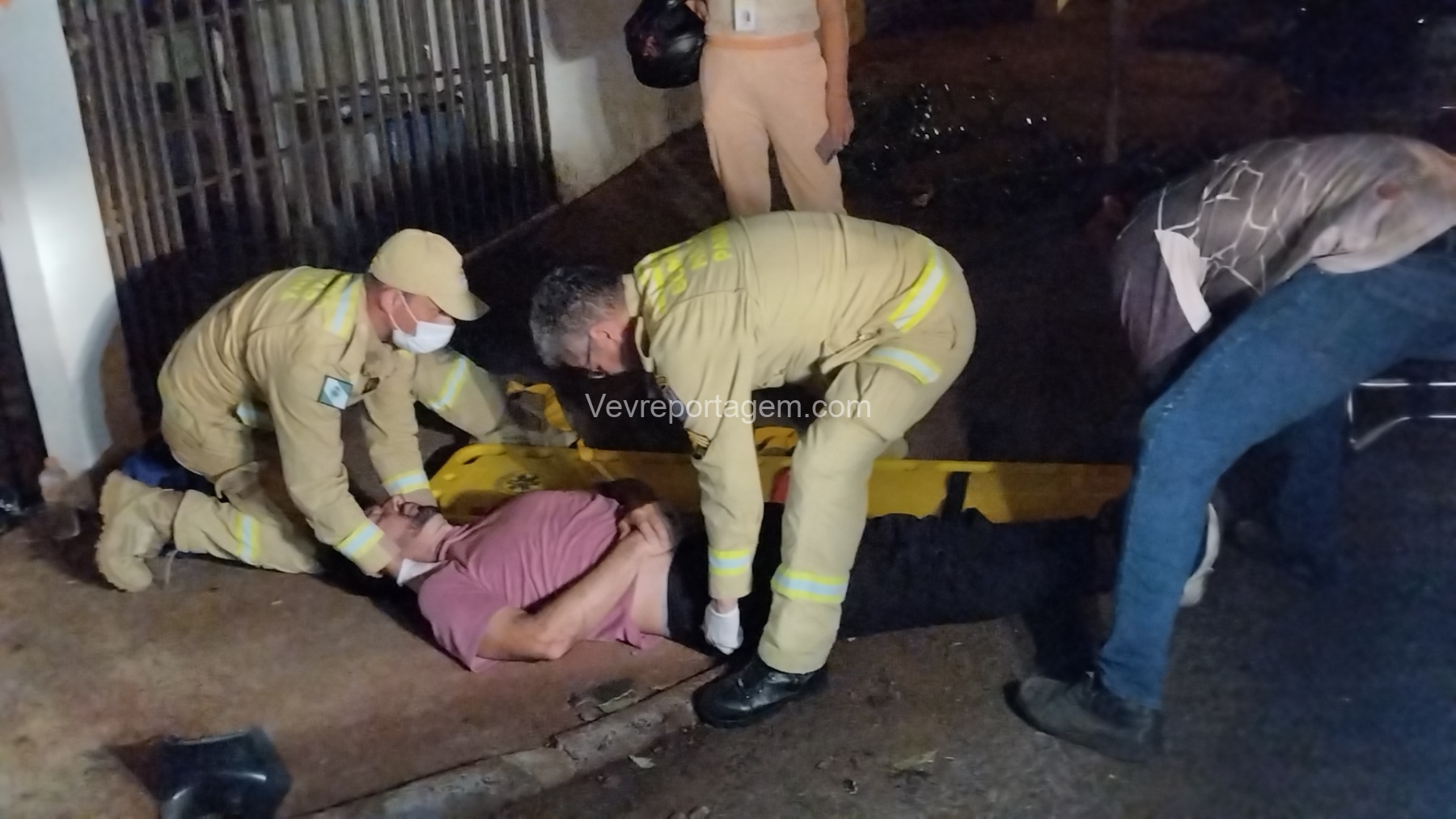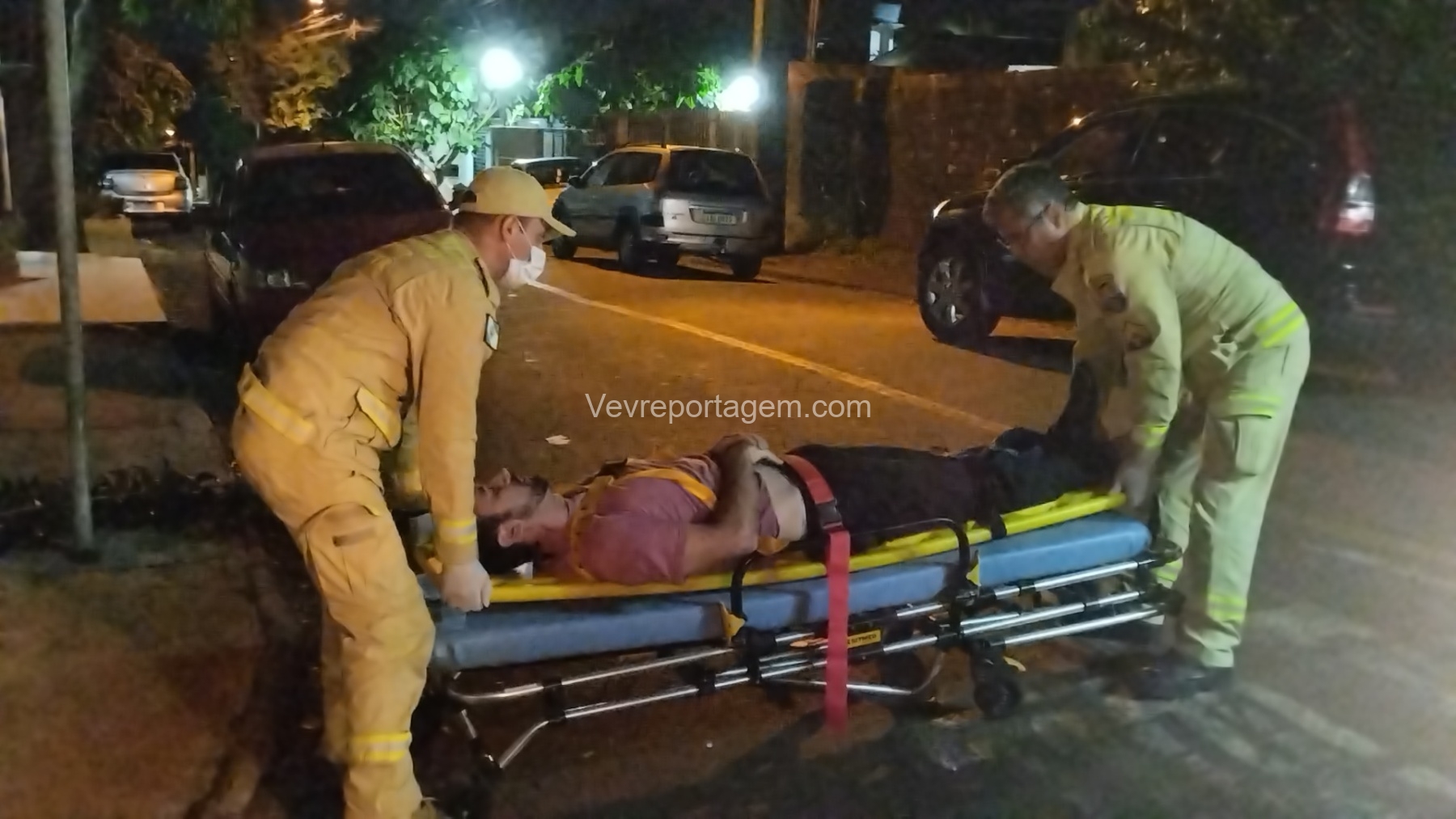 No local, foi constatada uma colisão envolvendo um automóvel e uma motocicleta. O motociclista, de 39 anos, foi encontrado caído ao solo e recebeu os primeiros atendimentos da equipe de socorro.