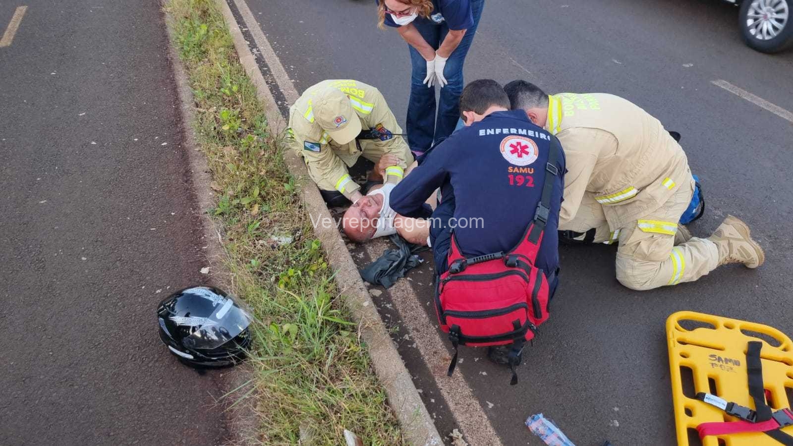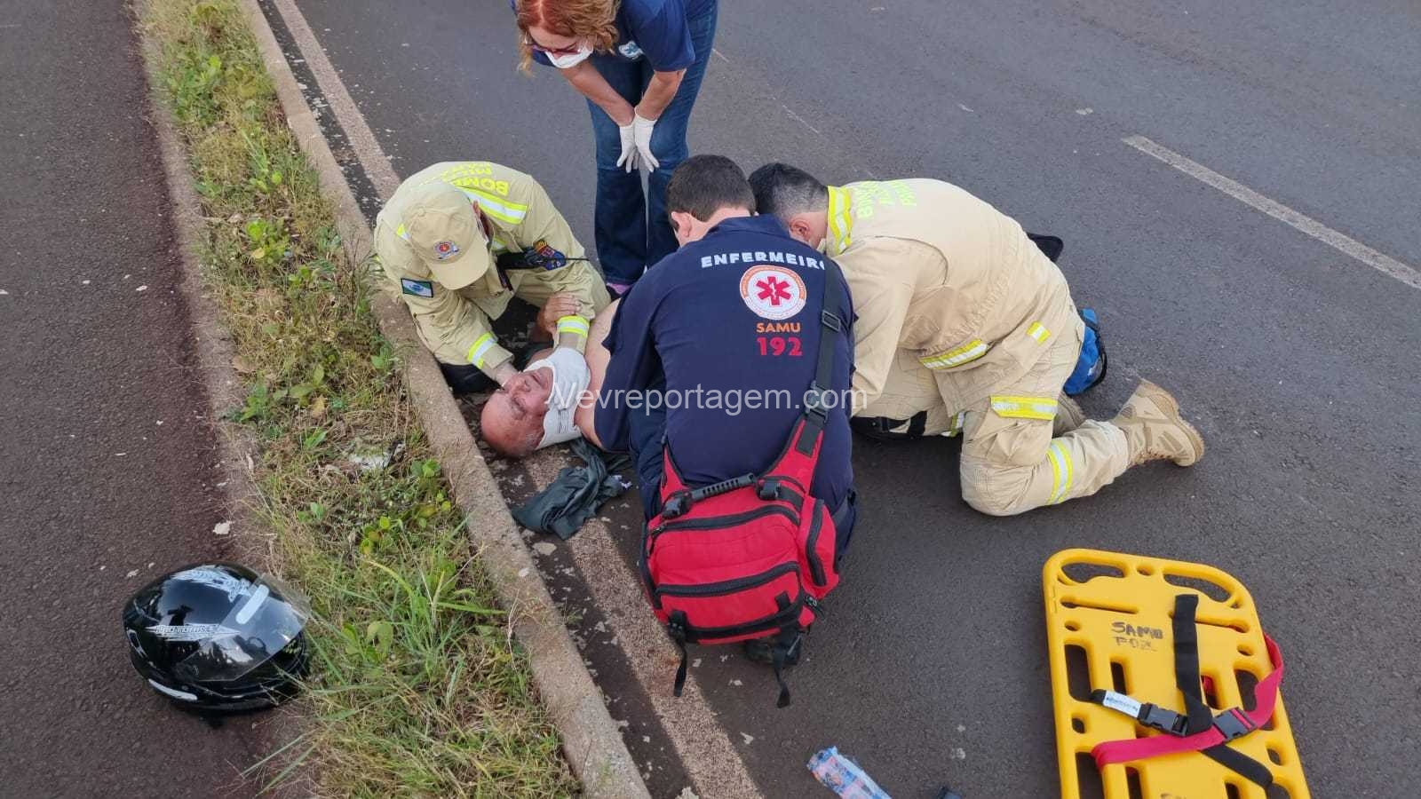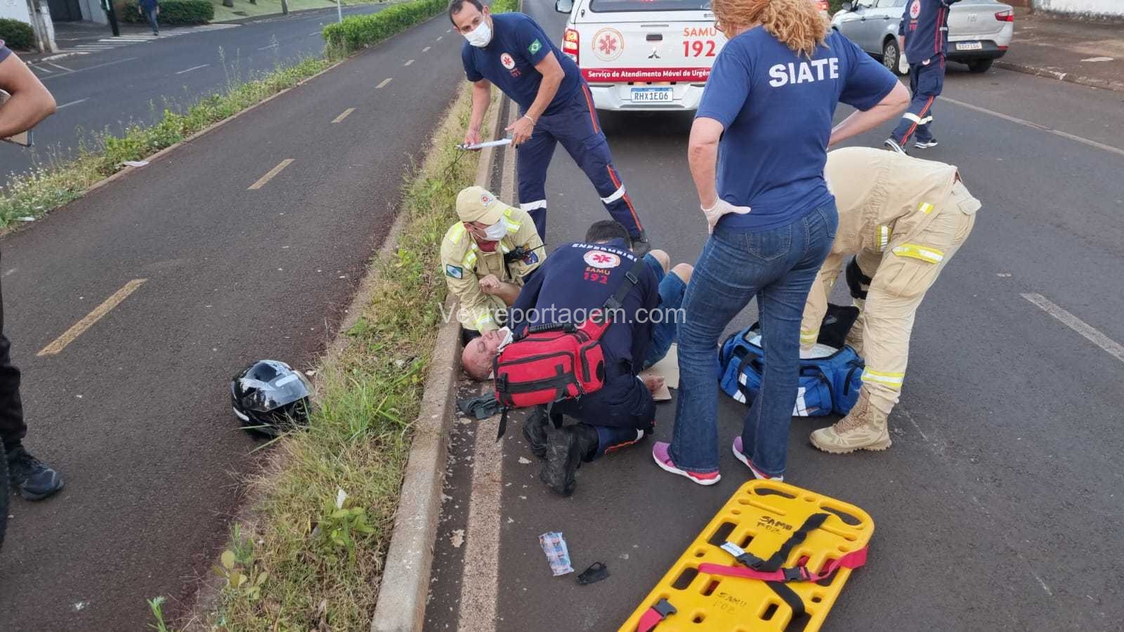 O motociclista, identificado como Santo Carlos Soares, de 58 anos, seguia pela via quando perdeu o controle da motocicleta e caiu em via pública. Ele recebeu atendimento do Siate e do Samu, sendo posteriormente encaminhado ao Hospital Municipal para avaliação médica.