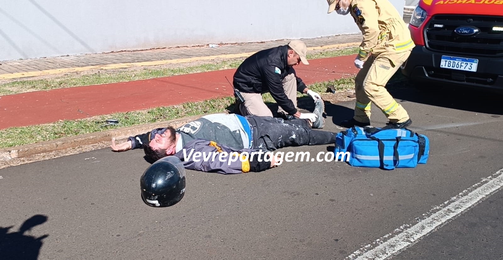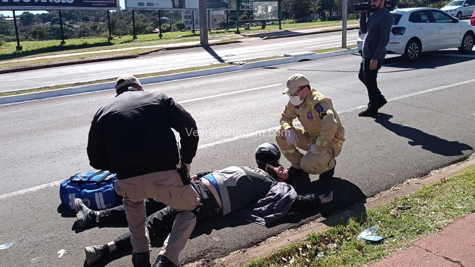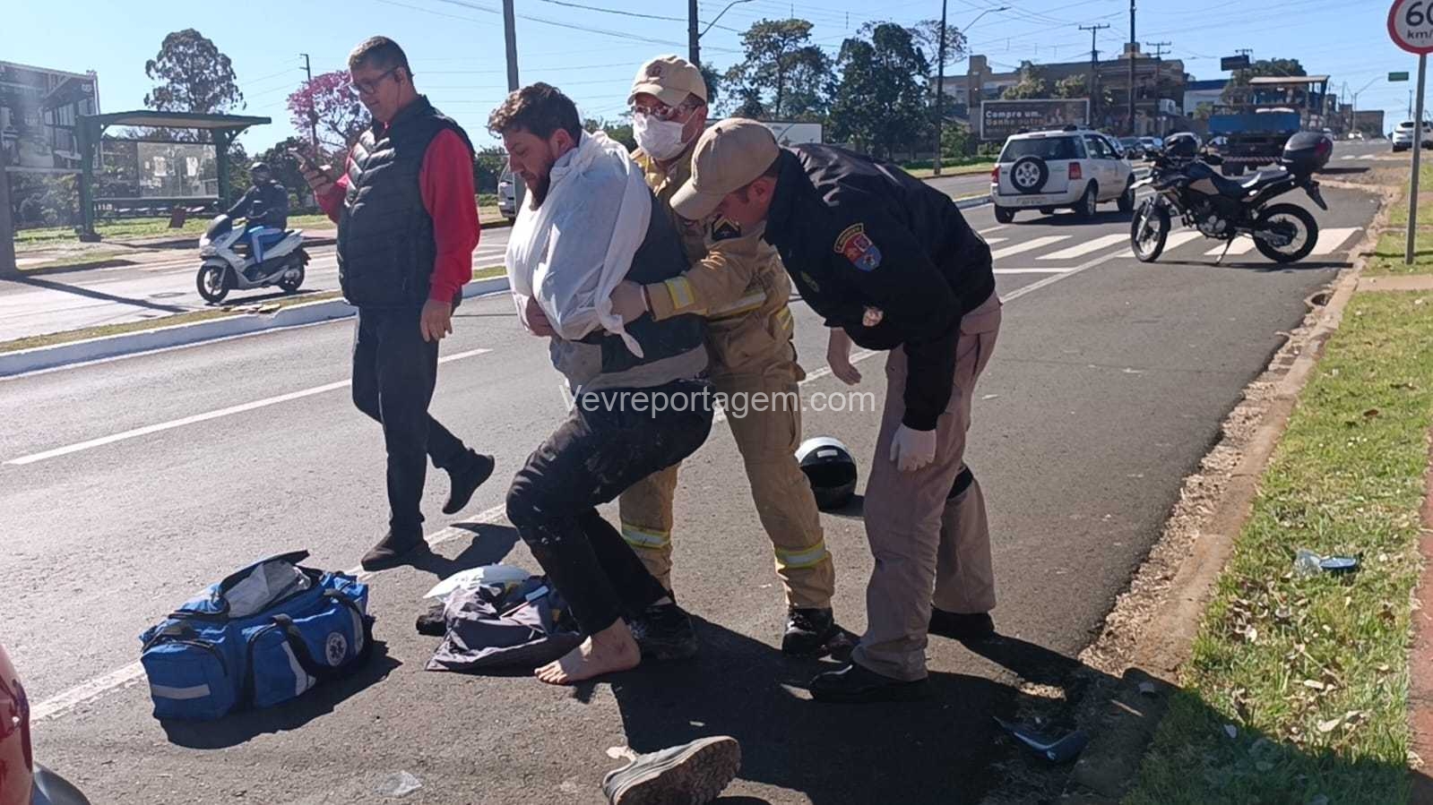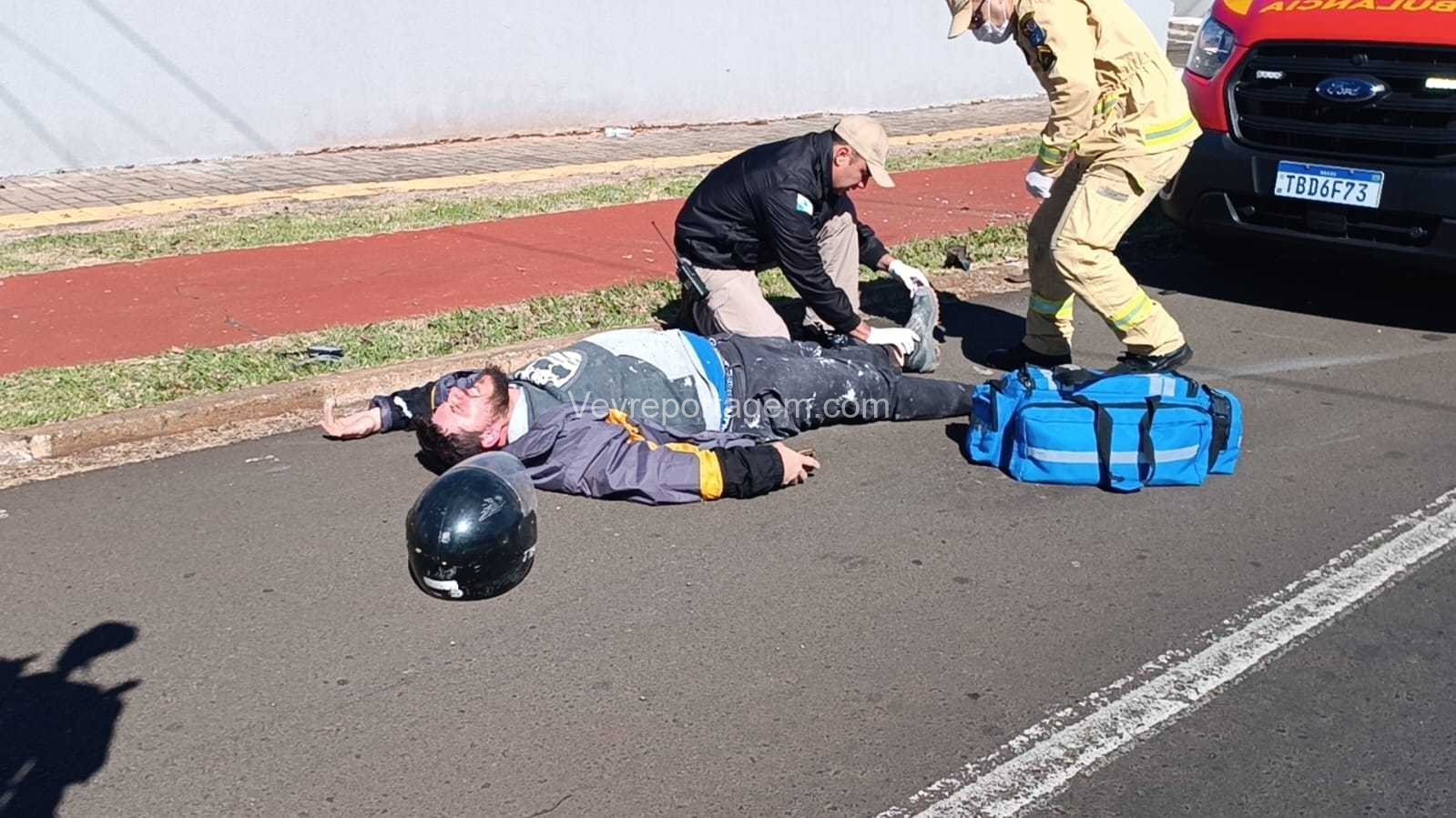 Após os primeiros atendimentos, o motociclista foi encaminhado ao Hospital Municipal. A motocicleta foi retirada da via por terceiros.