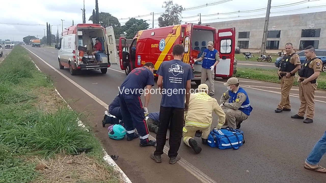 As informações repassadas pelos socorristas, que a motocicleta vinha na BR-277 sentido Cascavel a Foz, quando o automóvel KIA, e foi acessar a Rua Teodoro Risenden, e furou a preferencial. A colisão foi inevitável, acabou colidindo na traseira do automóvel.