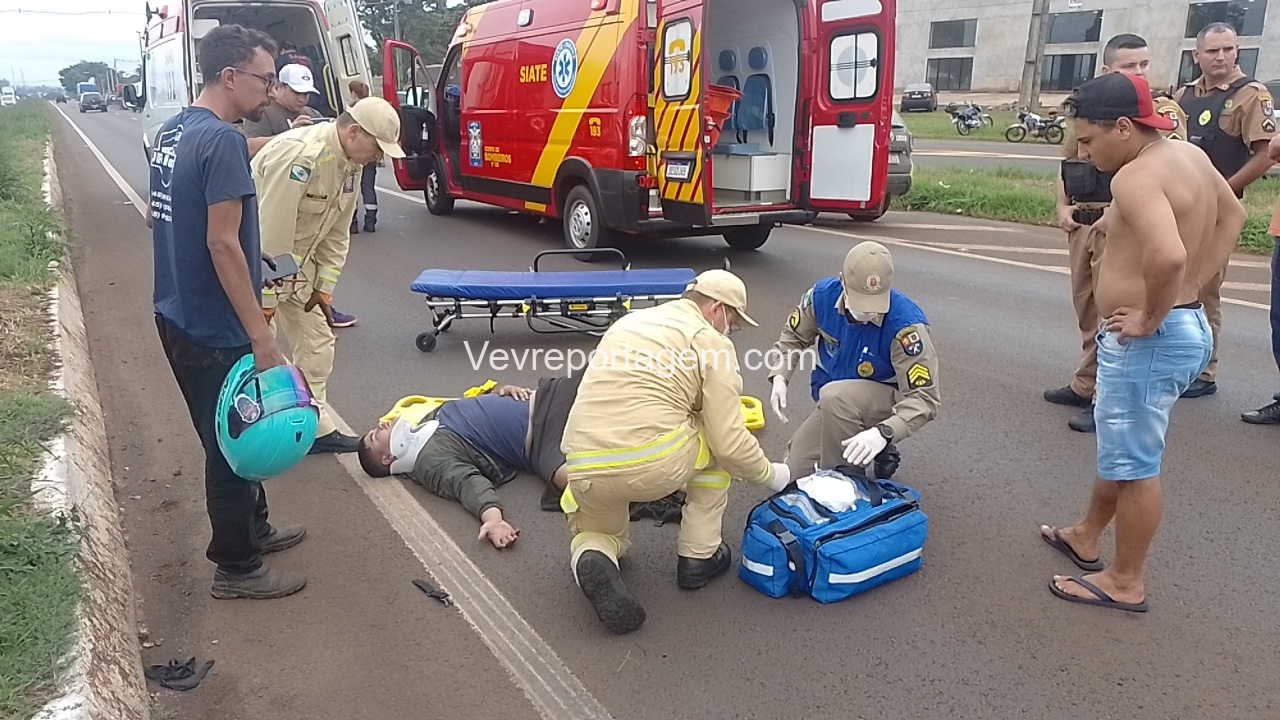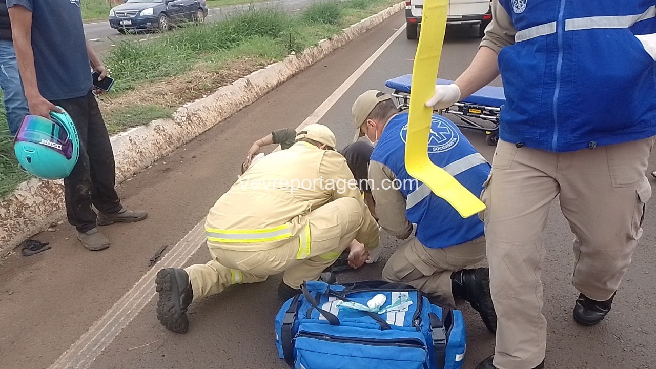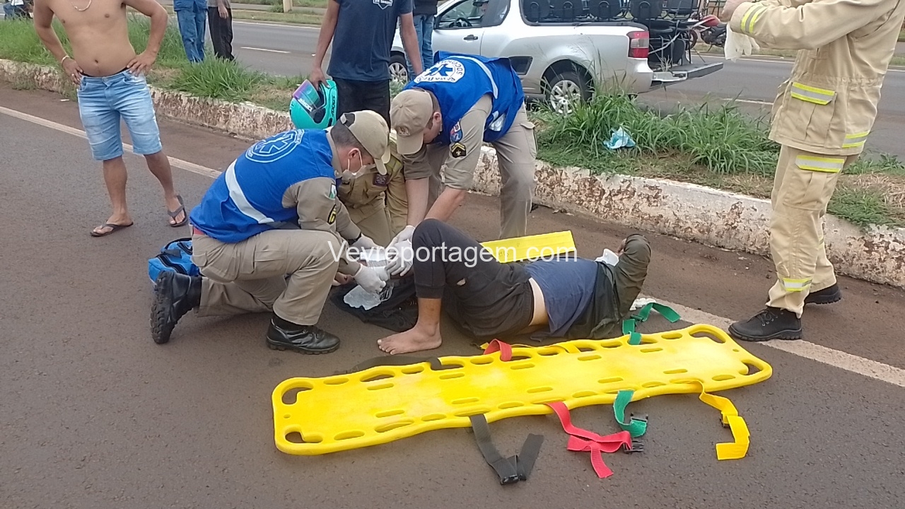 No local, foi constatada a ocorrência, o motociclista foi avaliado pelos socorristas e em seguida imobilizado, colocado na maca e encaminhado para o interior da ambulância para melhor ser avaliado. Antes da chegada dos do Siate os socorristas do SAMU realizavam os primeiros socorros.