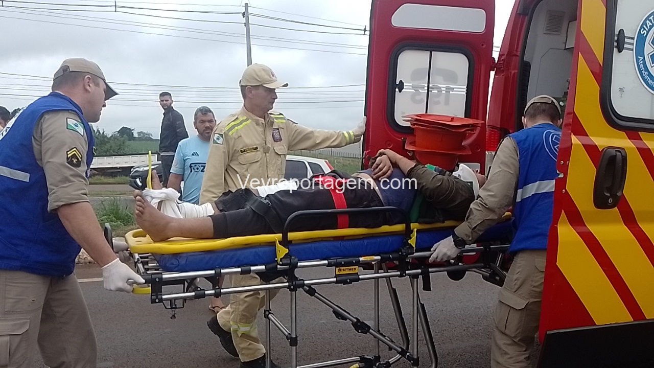 O motociclista foi encaminhado para o Hospital Municipal com uma suspeita de fratura na perna direita, o de teve uma grande laceração. A PRF esteve no local e tomou todas as providências cabíveis, quanto ao acidente de trânsito.