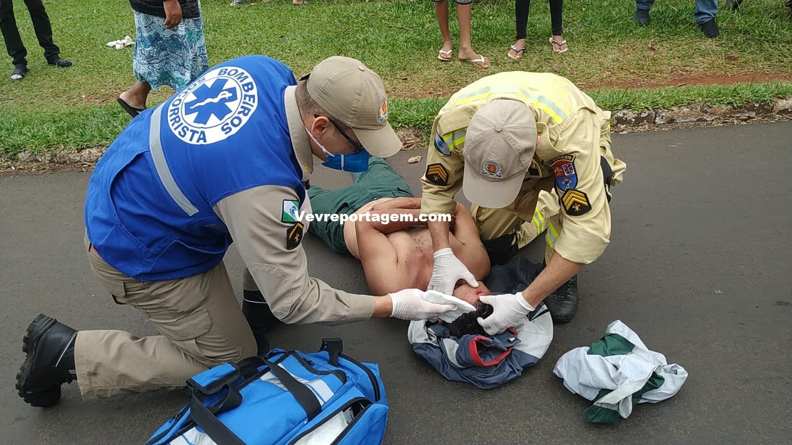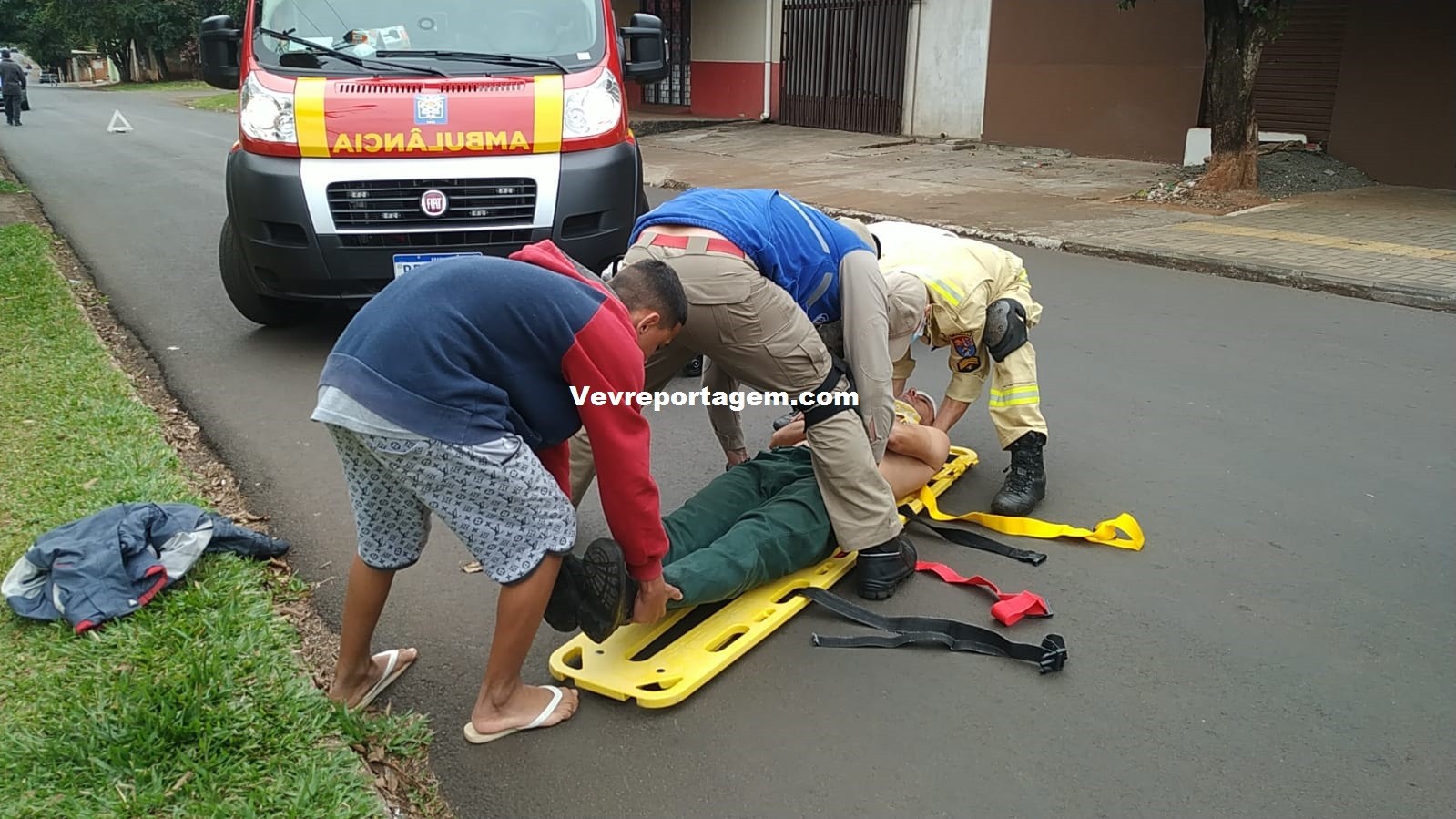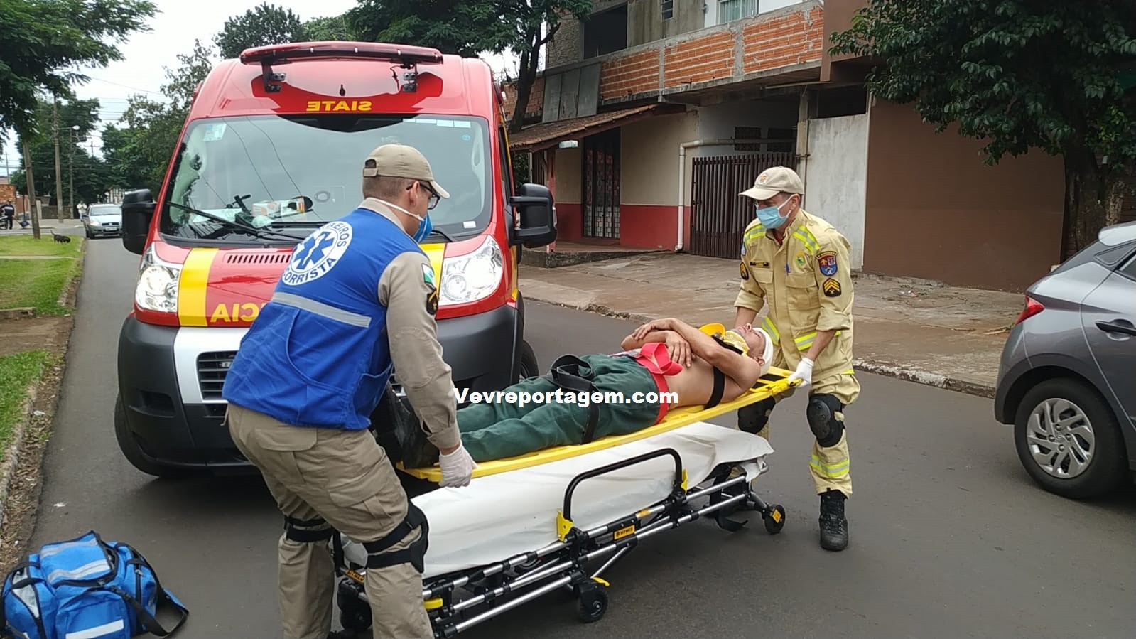 Socorristas do Siate ao chegarem no local e constataram a ocorrência, ao avaliarem o motociclista foi constatado que o mesmo não tinha nenhum tipo de fratura, porém havia um corte profundo na testa e algumas contusões pelo corpo, o motociclista foi imobilizado colocado na maca encaminhado para interior da ambulância para melhor ser avaliado.