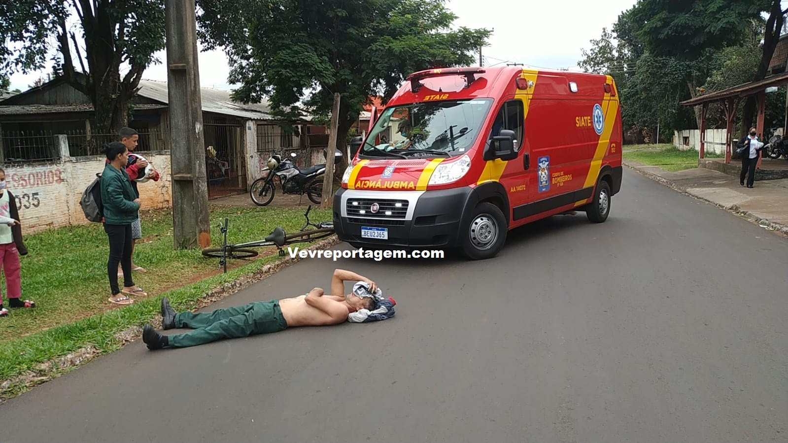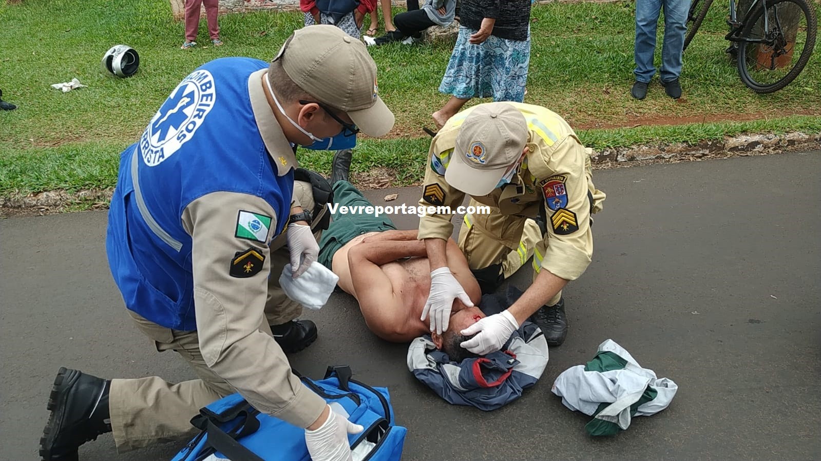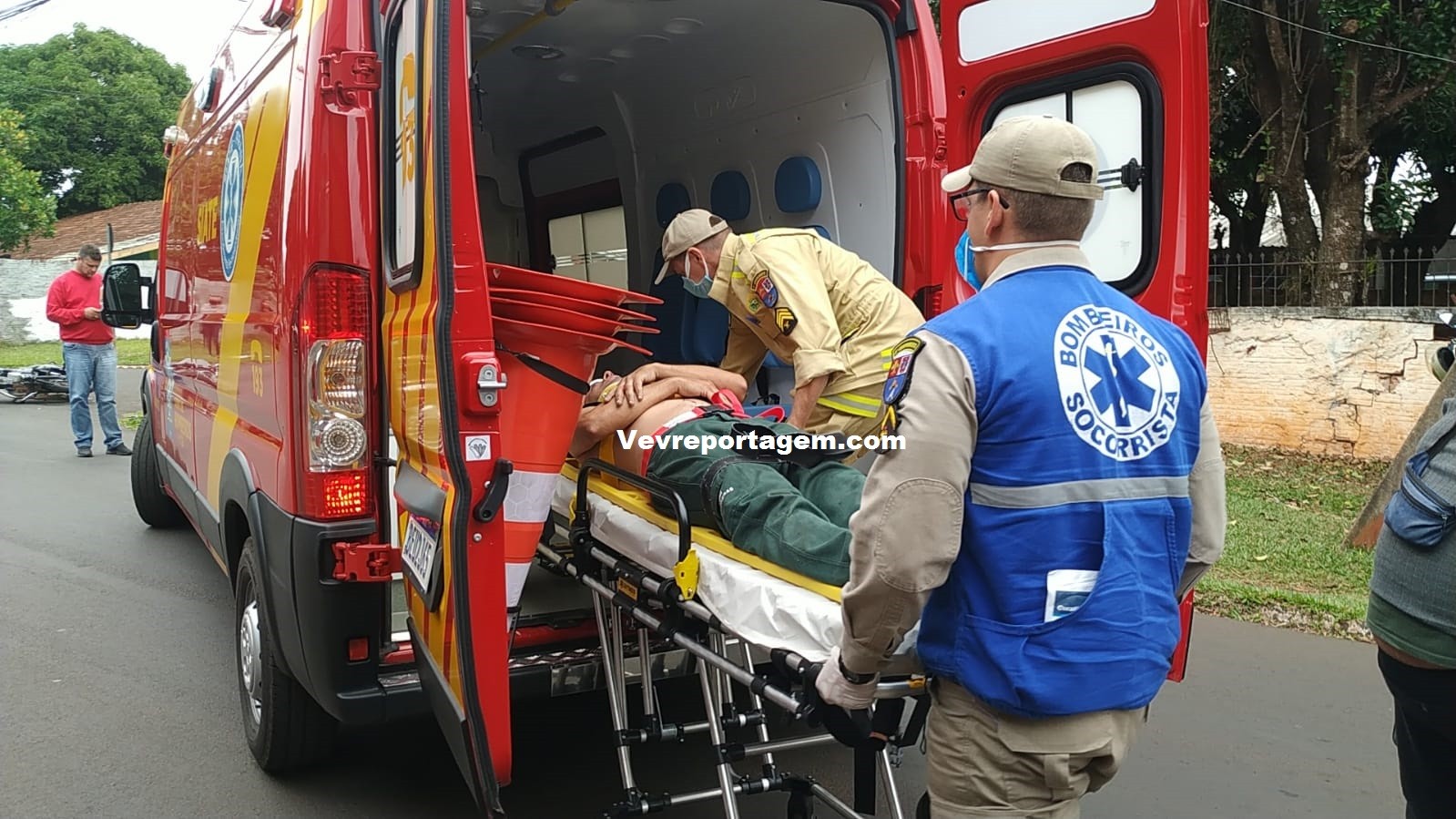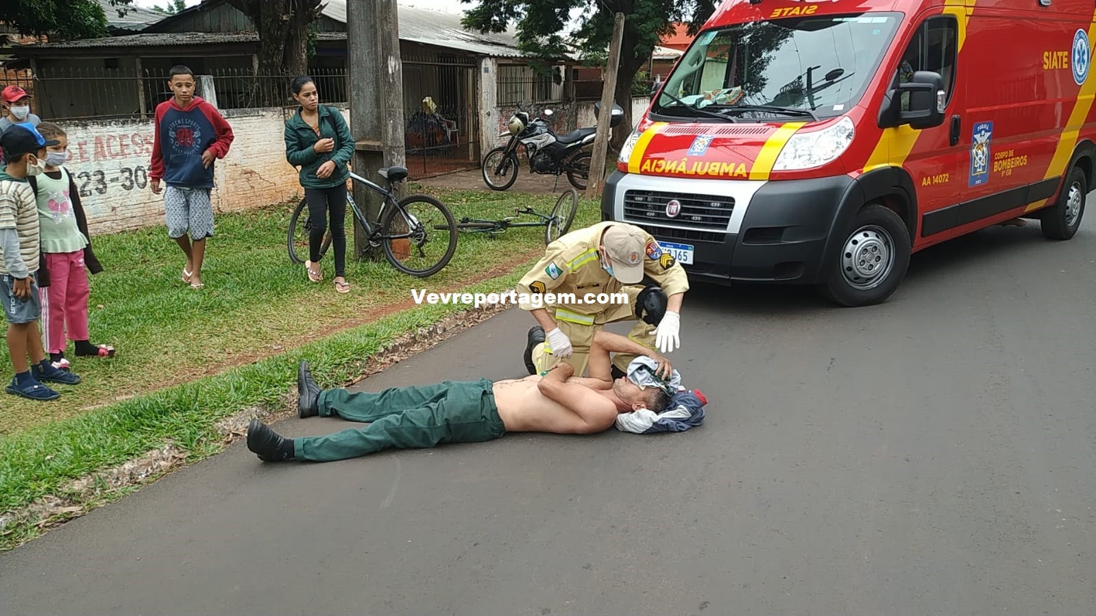 Socorristas do Siate ao chegarem no local e constataram a ocorrência, ao avaliarem o motociclista foi constatado que o mesmo não tinha nenhum tipo de fratura, porém havia um corte profundo na testa e algumas contusões pelo corpo, o motociclista foi imobilizado colocado na maca encaminhado para interior da ambulância para melhor ser avaliado.