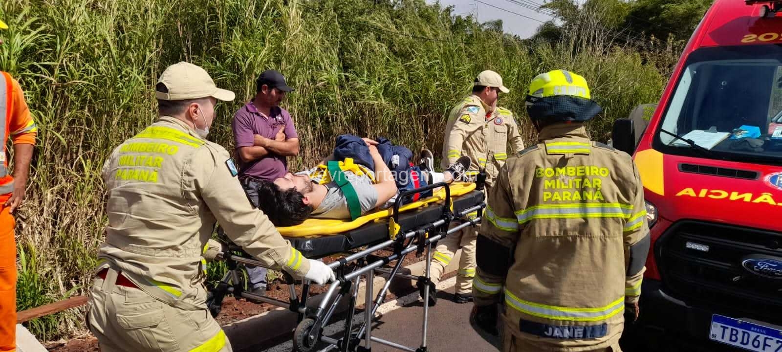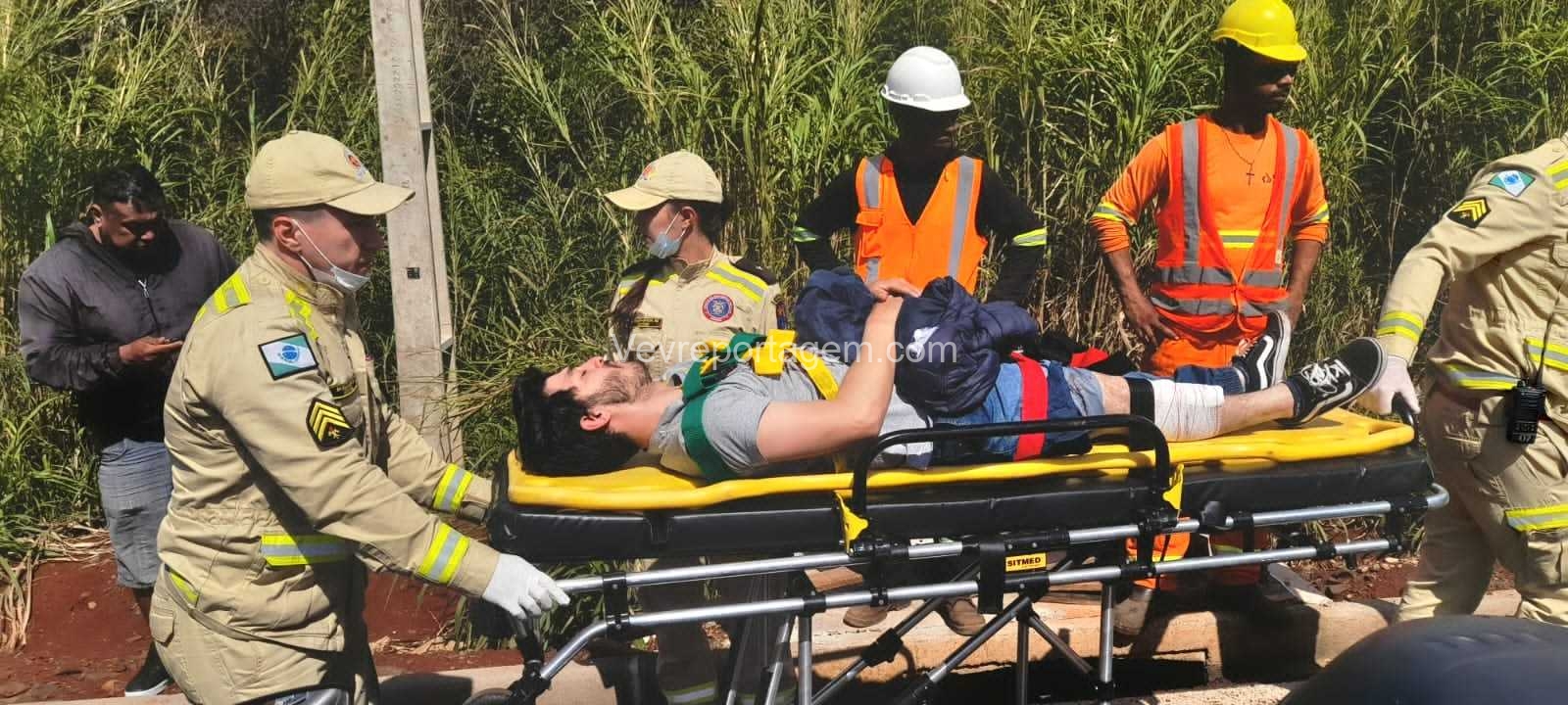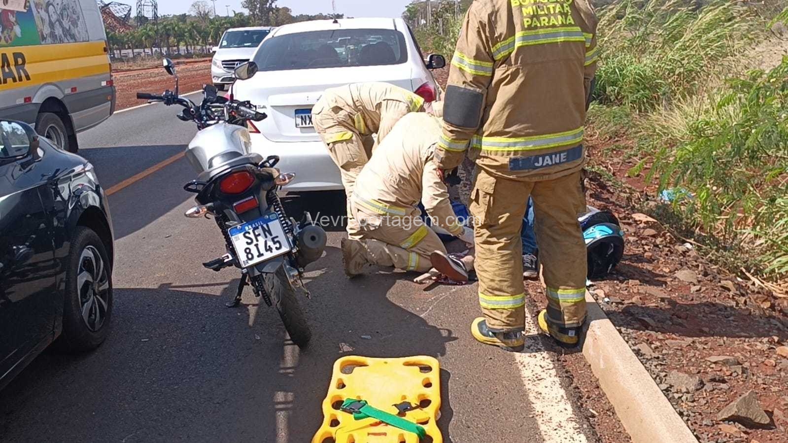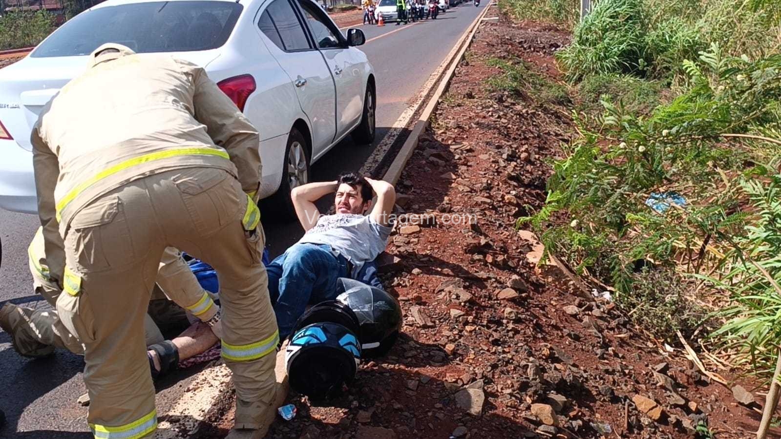 Segundo informações apuradas no local, um veículo apresentou pane mecânica e parou no meio da via. O motociclista, ao tentar desviar, acabou colidindo e sofreu a queda.