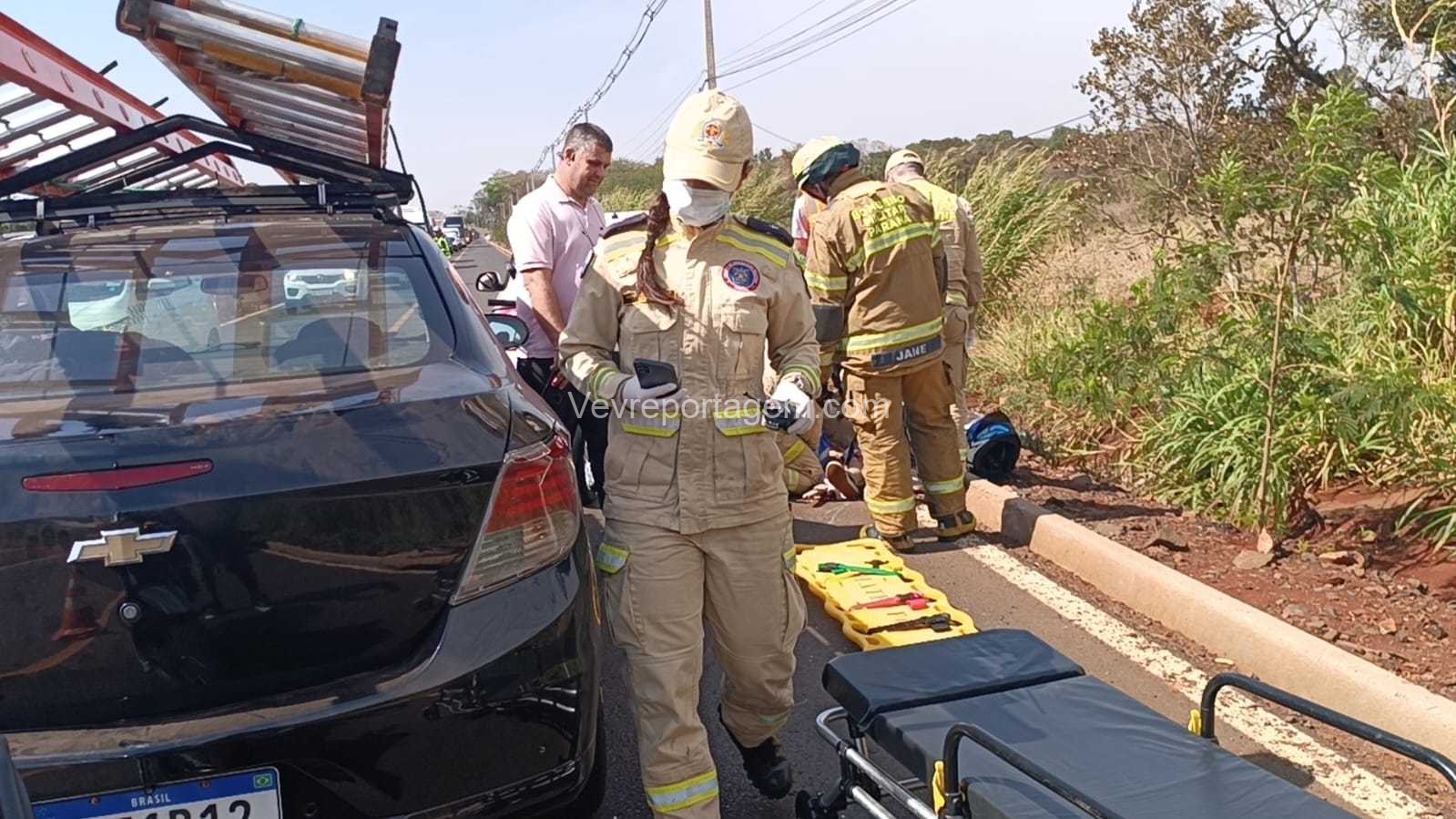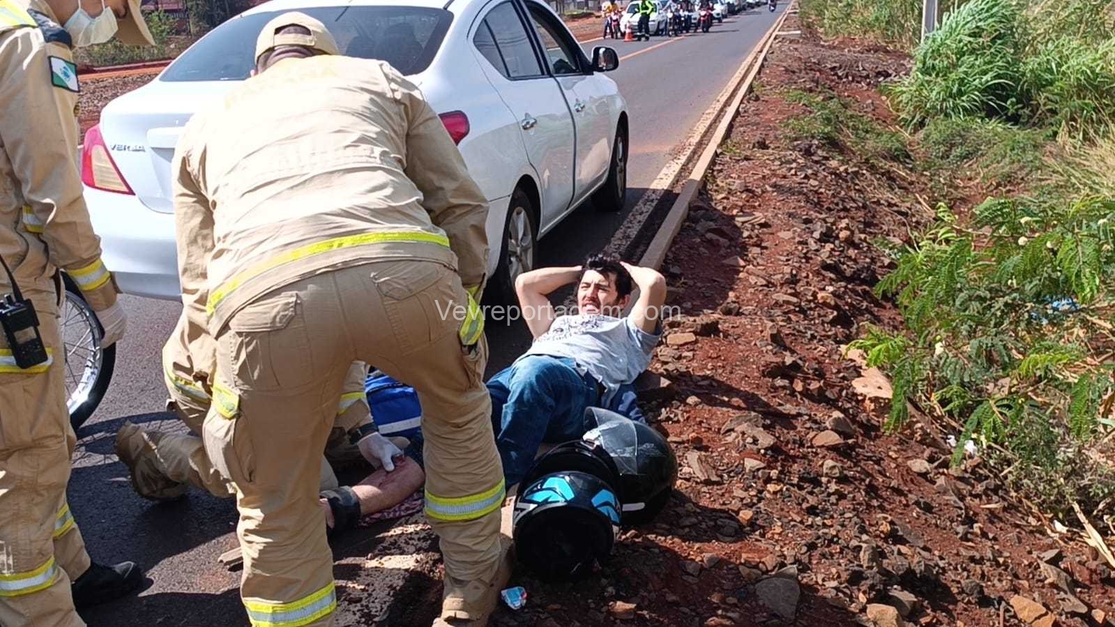 Duas médicas que passavam pelo trecho presenciaram o acidente e prestaram os primeiros socorros até a chegada das equipes oficiais. Em seguida, socorristas do Siate, com apoio do médico do SAMU, realizaram a imobilização do condutor da moto, que apresentava ferimentos no joelho e suspeita de fratura.