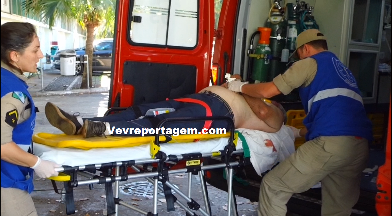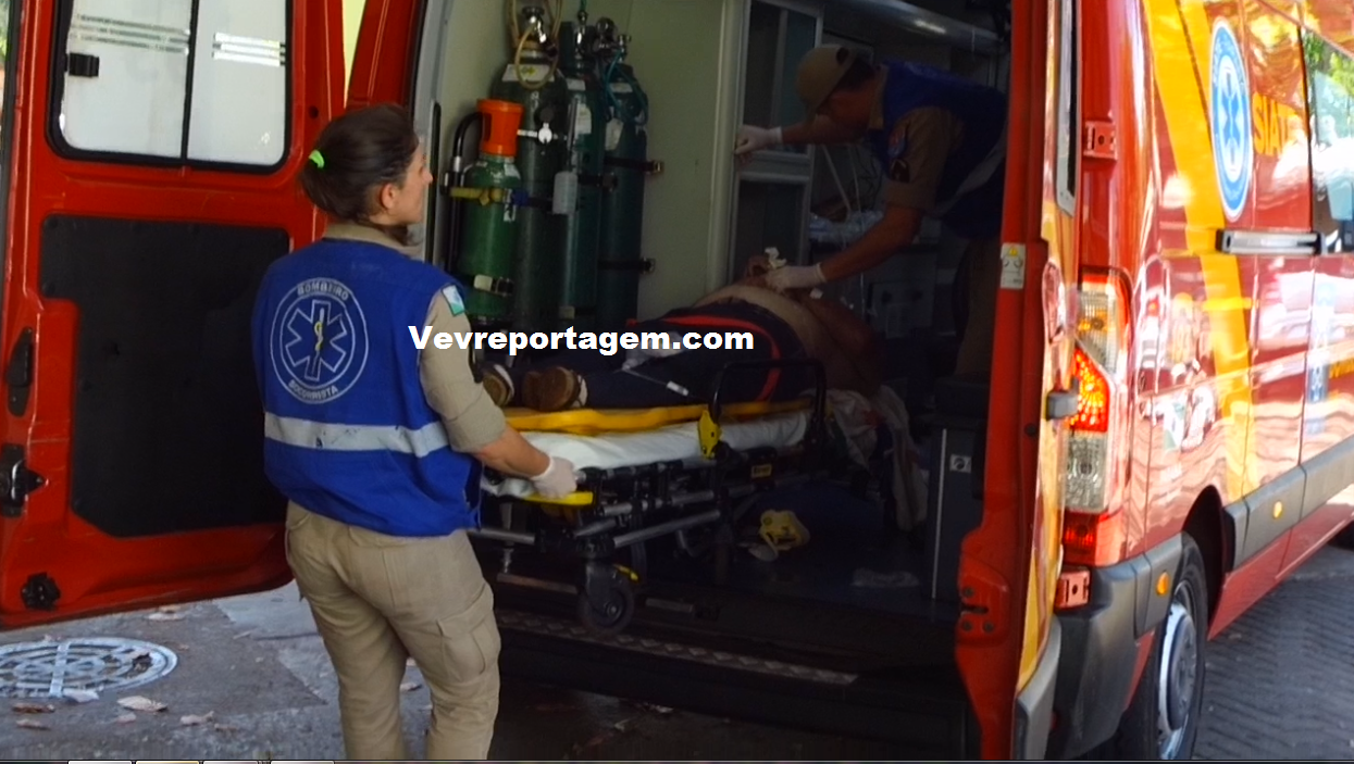 No local foi constatado a ocorrência, rapidamente os socorristas imobilizaram a vitima, que estava com muito sangramento na cabeça, e estava inconsciente, de imediato já foi realizado a massagem cardíaca, pois a vitima estava em parada cardíaca.