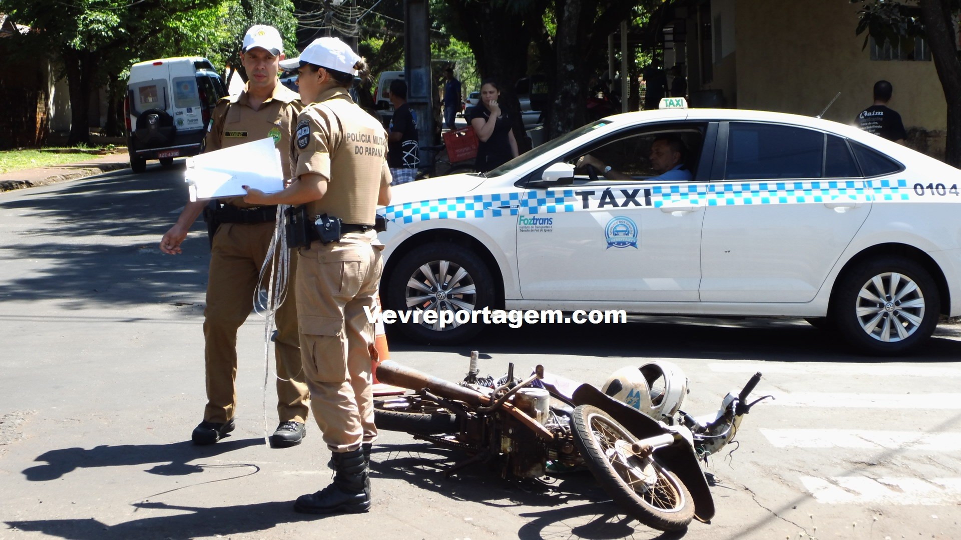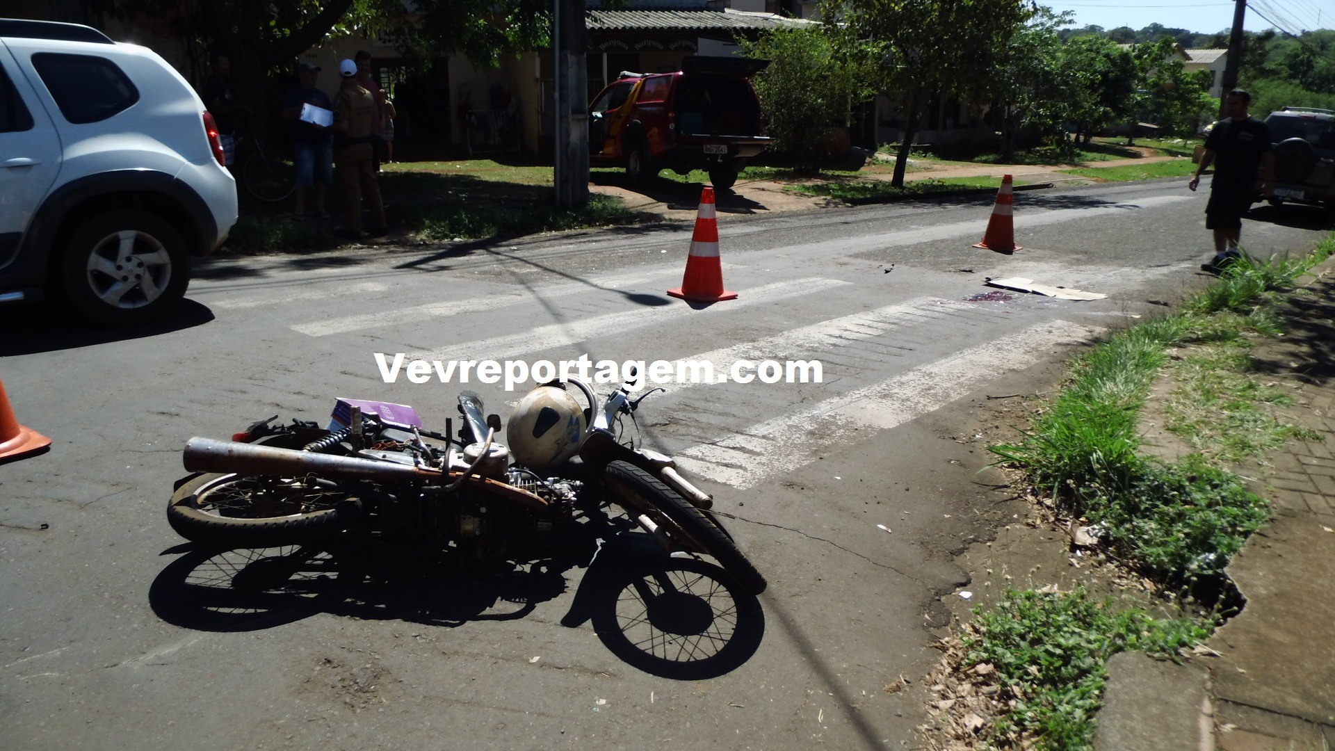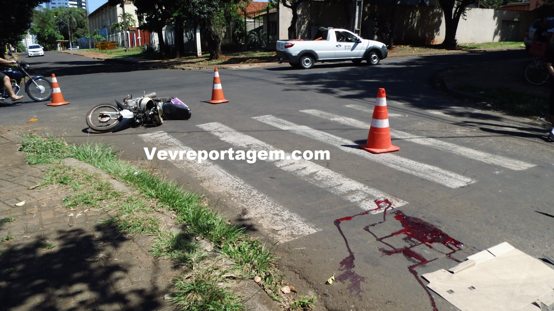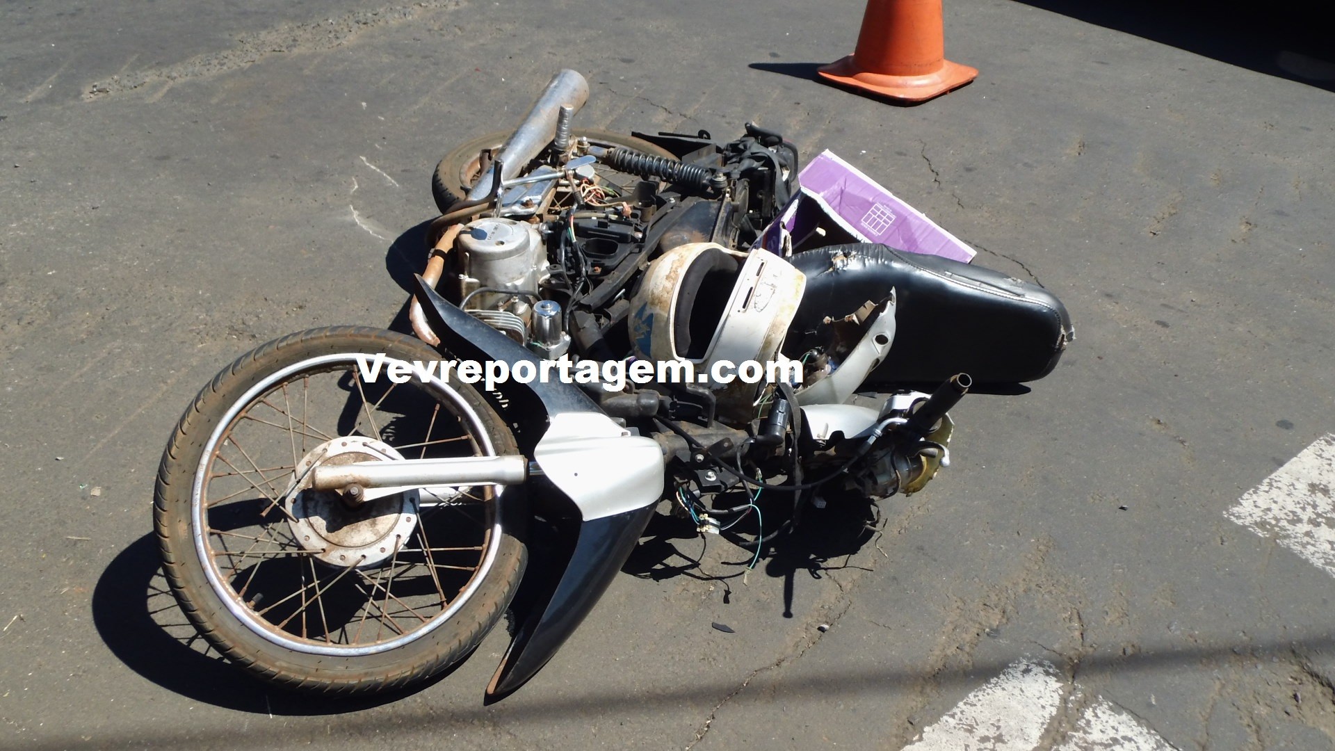 Segundo as informações passadas no local, que o motociclista vinha pela Rua Mato Grosso e furou a preferencial e colidiu violentamente no automóvel, que vinha pela Rua Edmundo de Barros, com a colisão o motociclista foi lançado no para-brisa do automóvel, o capacete caiu da cabeça e ele bateu muito forte a cabeça no chão causando um TCE grave.