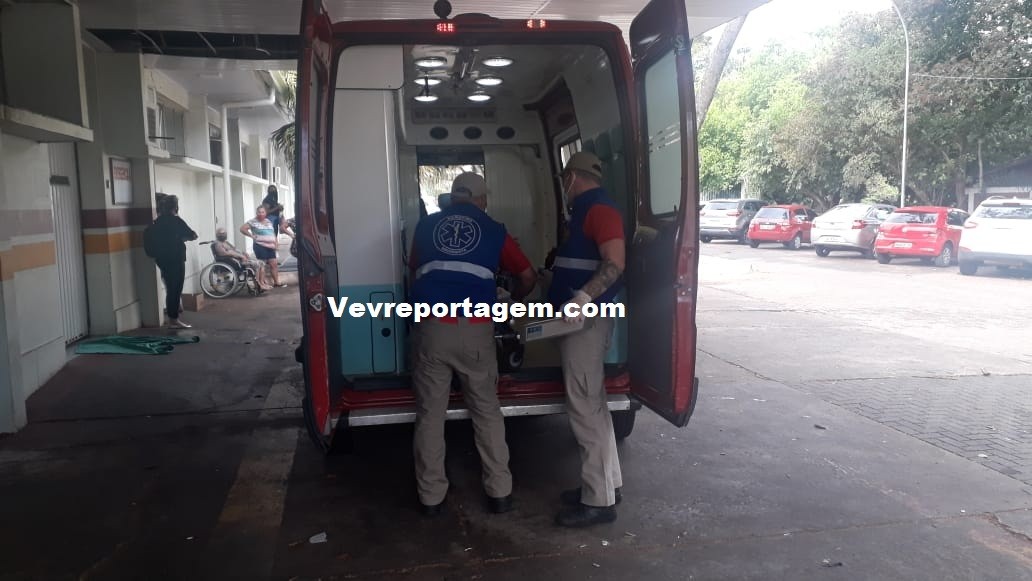 No local, foi constatado a ocorrência, onde observaram que havia uma hemorragia sendo contida por terceiros, rapidamente os socorristas conterão a hemorragia, imobilizaram o motociclista e colocaram na maca encaminharam para o interior da ambulância, de imediato já foi acionado o apoio médico, poiso estado da vitima era considerado grave porque perdeu muito sangue e pode ter afetado uma veia arterial.