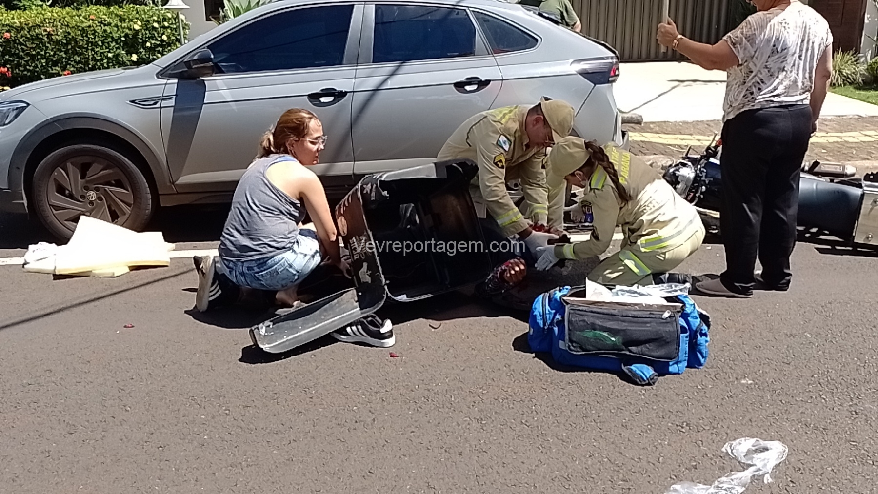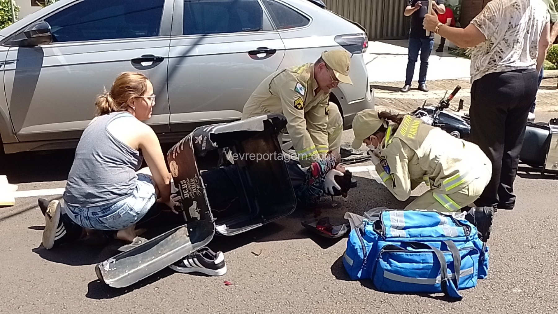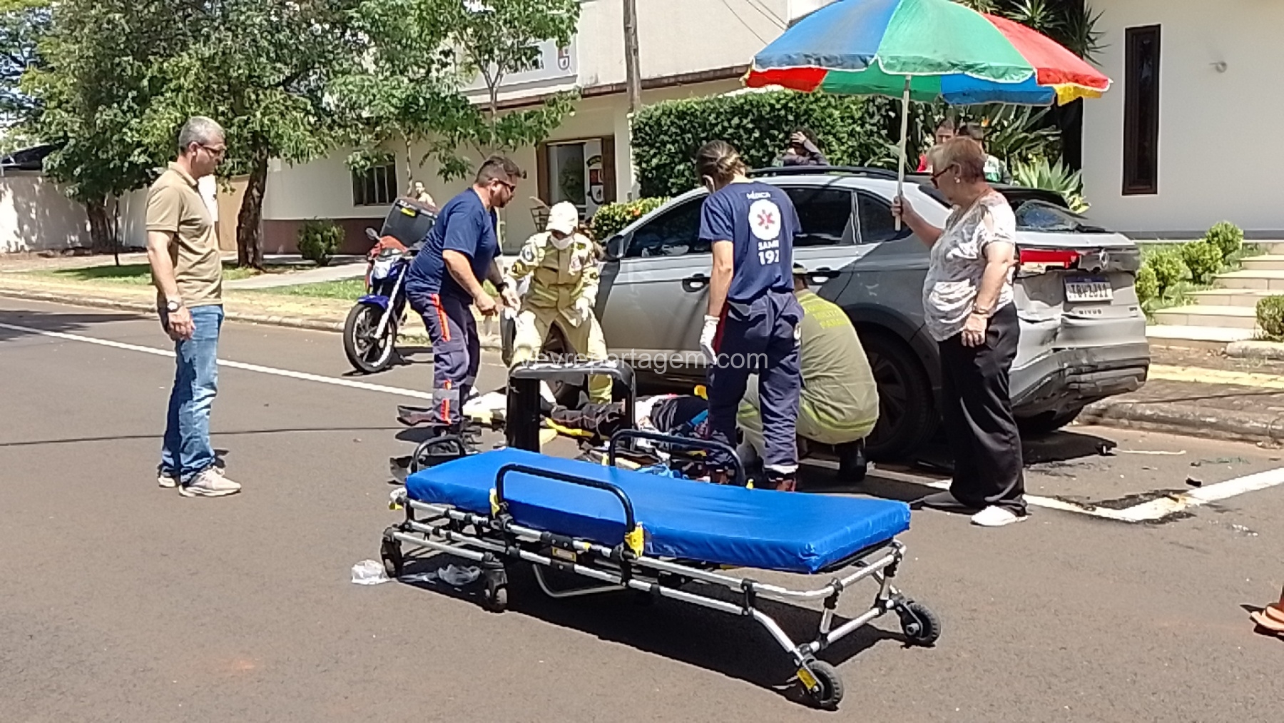 Na tarde desta segunda-feira, dia 3 de novembro de 2025, socorristas do Siate foram acionados para atender uma ocorrência de acidente de trânsito na Avenida Florianópolis, no bairro KLP, em Foz do Iguaçu.