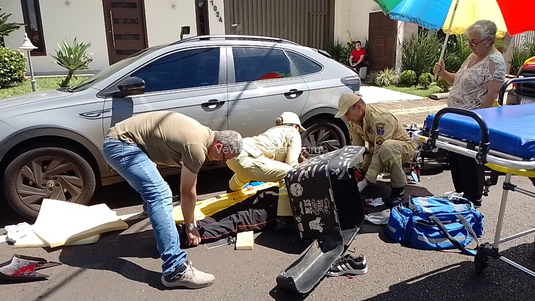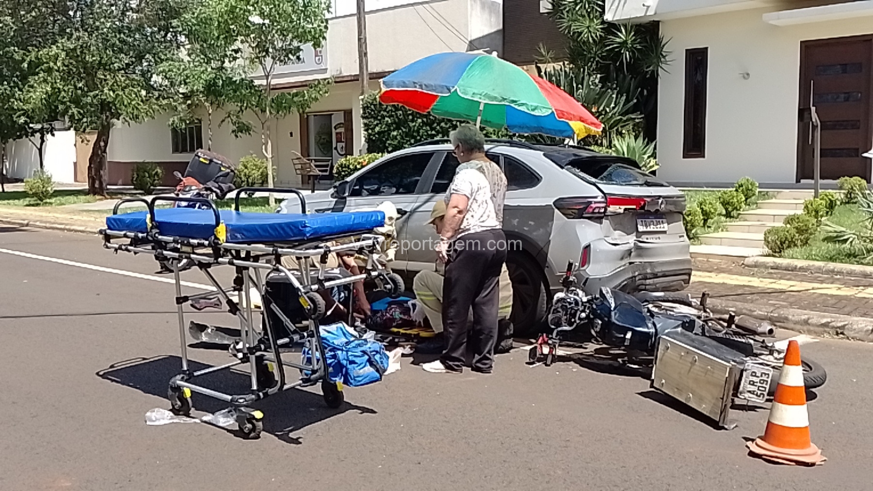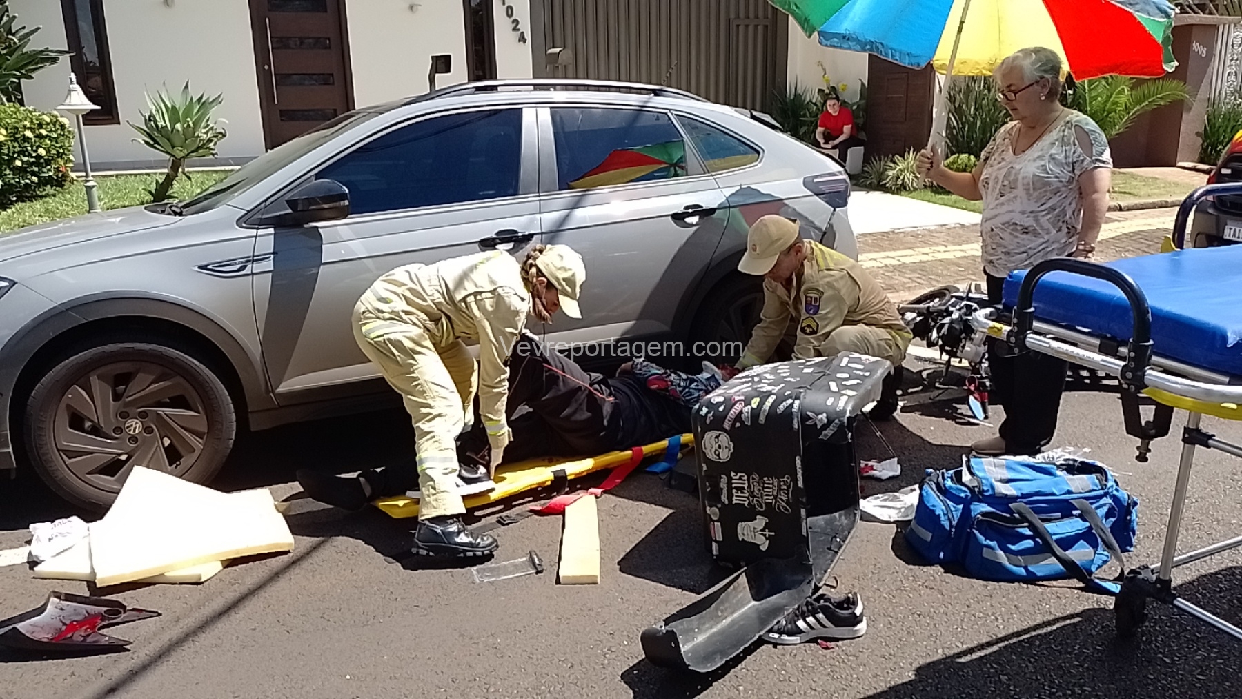 Na tarde desta segunda-feira, dia 3 de novembro de 2025, socorristas do Siate foram acionados para atender uma ocorrência de acidente de trânsito na Avenida Florianópolis, no bairro KLP, em Foz do Iguaçu.