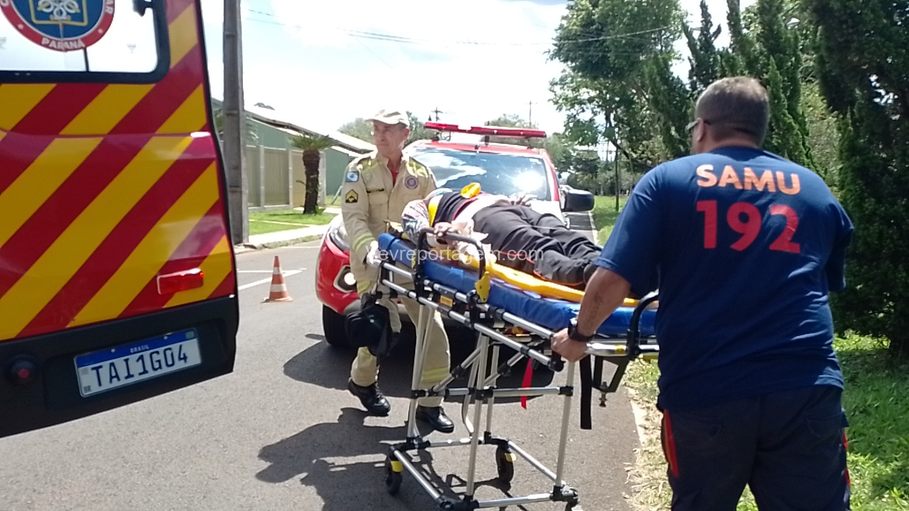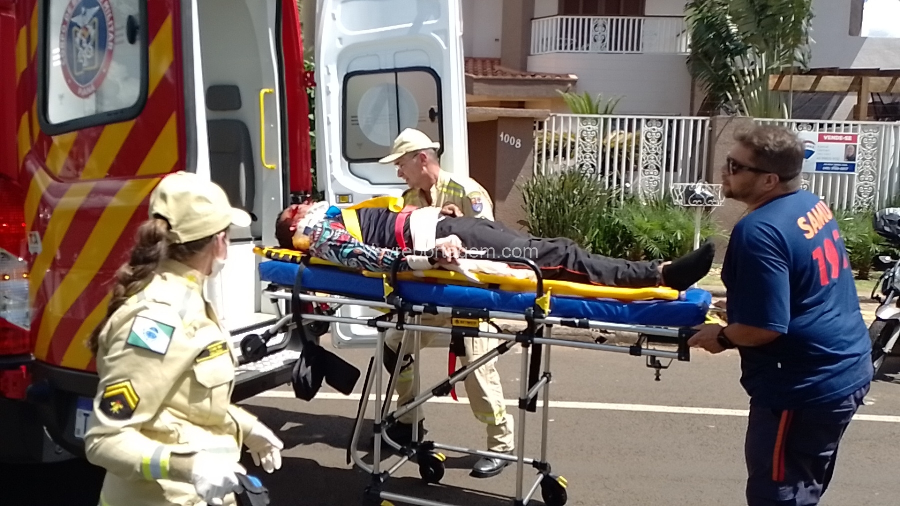 Ele foi imobilizado e encaminhado ao interior da ambulância para receber atendimento médico. Após avaliação do apoio médico do Samu, o jovem foi encaminhado em estado grave ao Hospital Municipal.