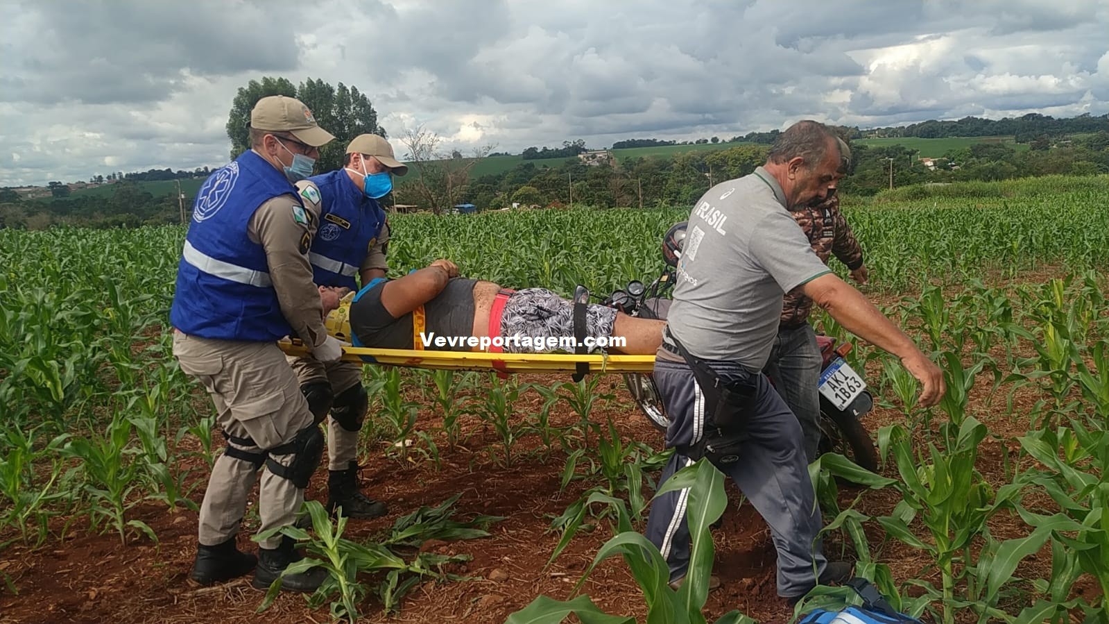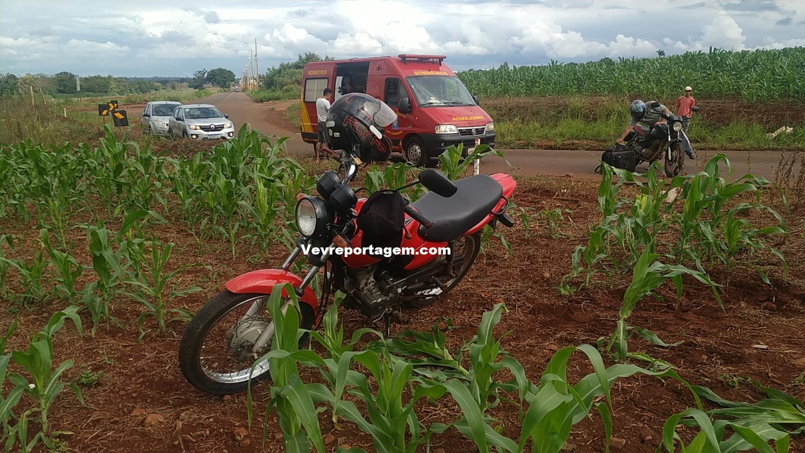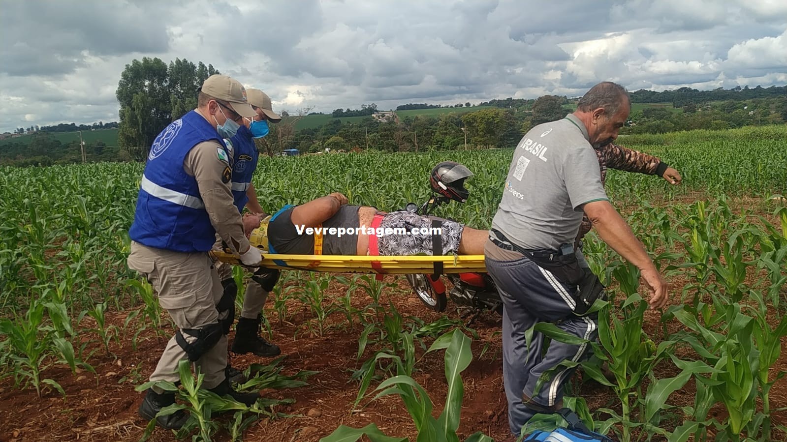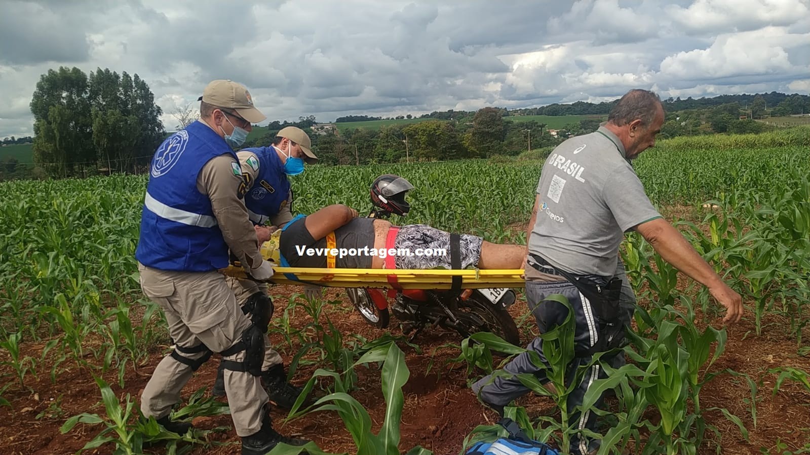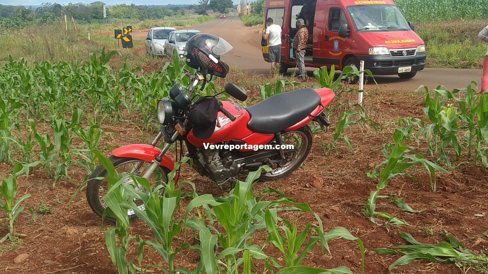 Segundo as informações repassadas no local, que o motociclista vinha pela Perimetral Leste, sentido BR-277, quando na curva teria perdido o controle e ido direto para o milharal, onde caiu e ficou inconsciente.