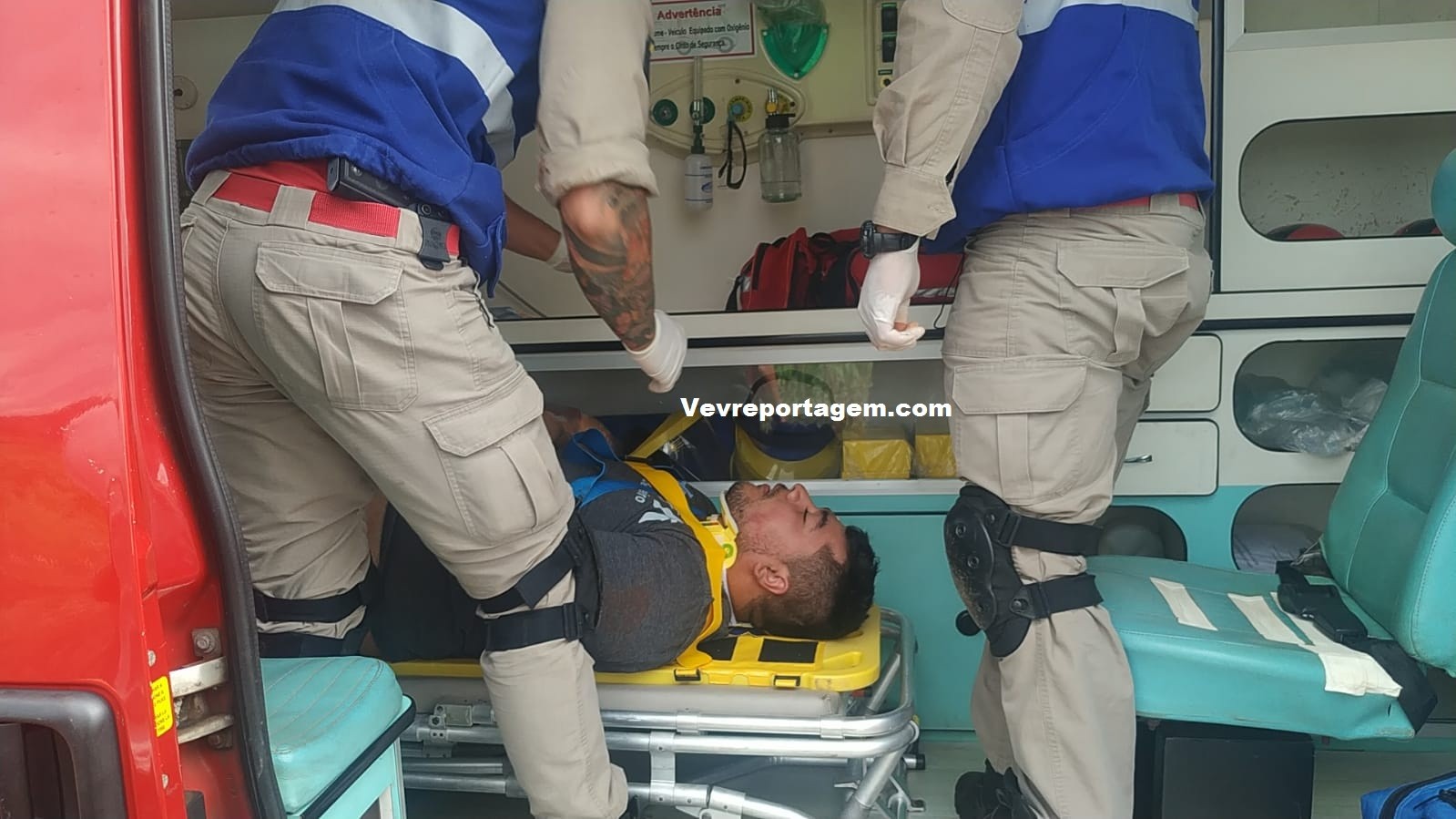 No local, foi constataram a ocorrência, rapidamente a vítima foi imobilizada e colocada no interior da ambulância para melhor ser avaliada pelo o médico.