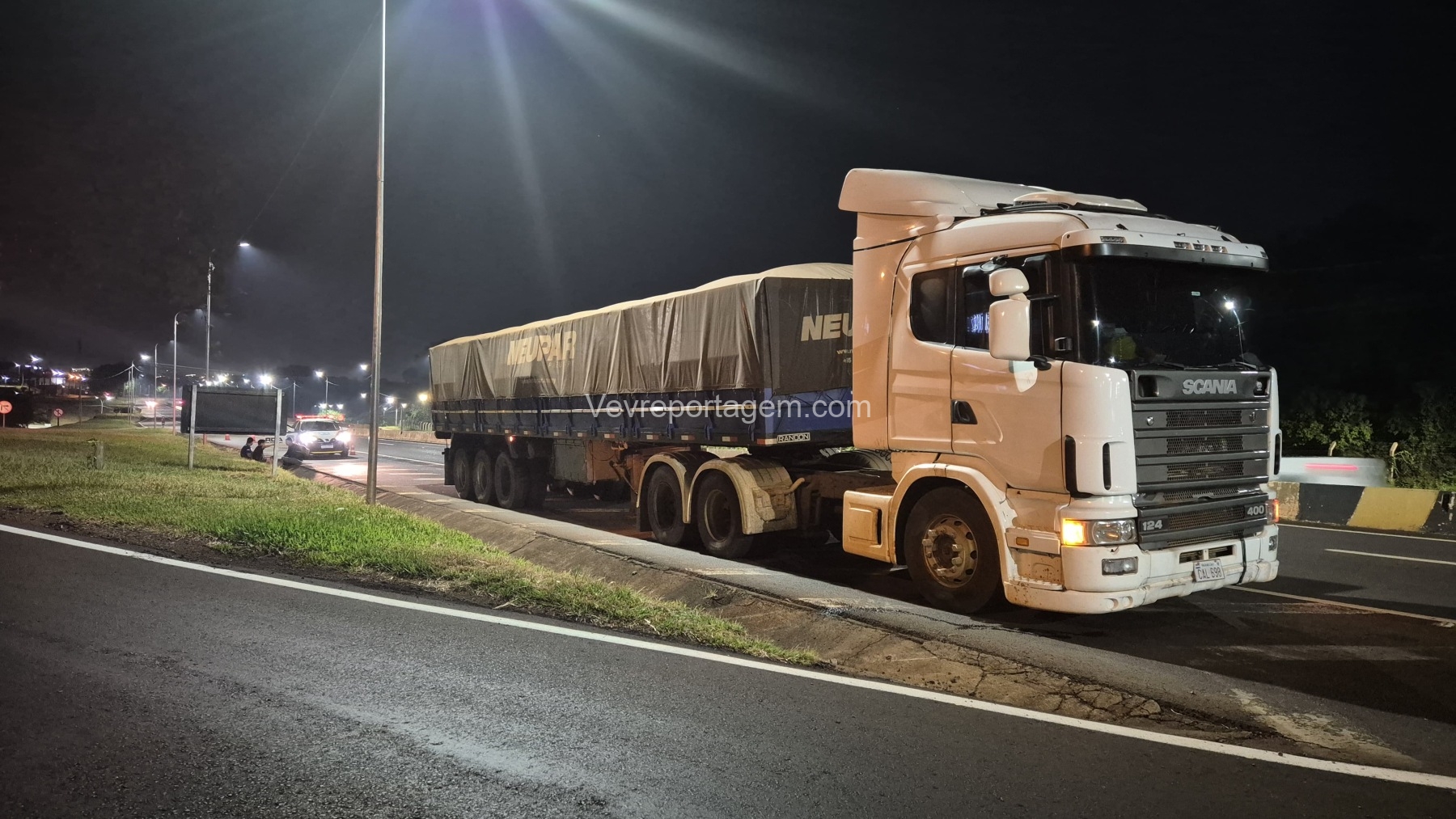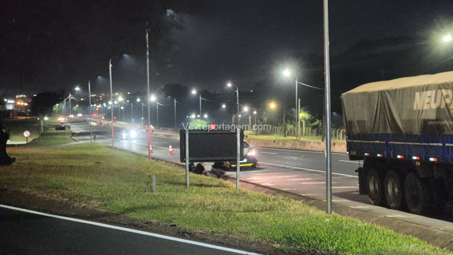 No local, foi constatada uma colisão envolvendo uma carreta e uma motocicleta. Segundo informações preliminares, o motociclista colidiu violentamente na traseira da carreta e foi encontrado inconsciente. Após avaliação das equipes de socorro, foi confirmado que a vítima já se encontrava em óbito.