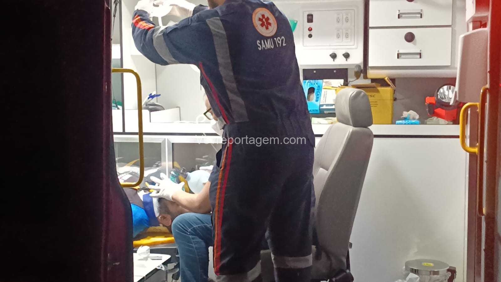 Ao chegarem ao local, encontraram o motociclista inconsciente sobre a via. Diante da gravidade da situação, a vítima foi rapidamente imobilizada e encaminhada para o interior da ambulância, onde recebeu o apoio da equipe médica do SAMU. Durante o atendimento, foi necessário realizar a entubação do paciente.
