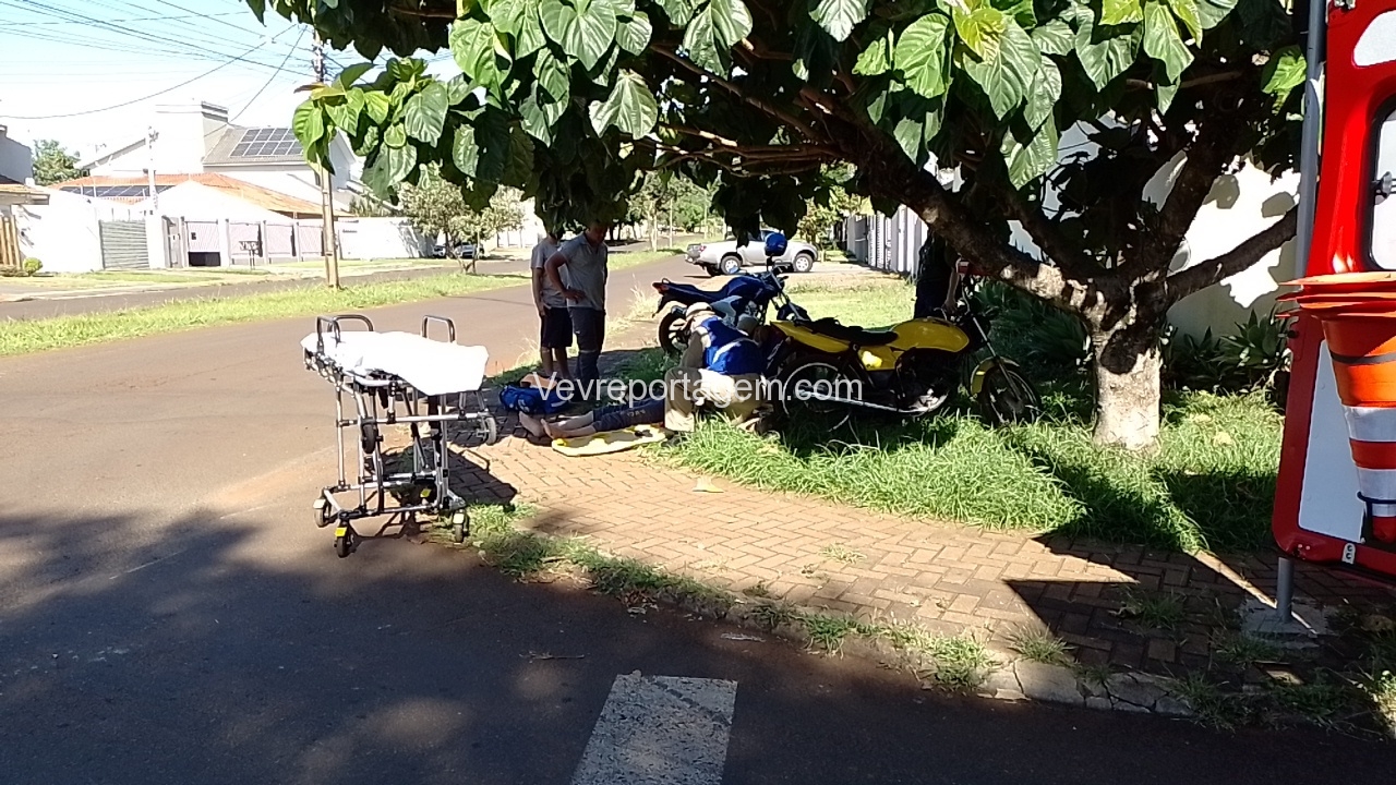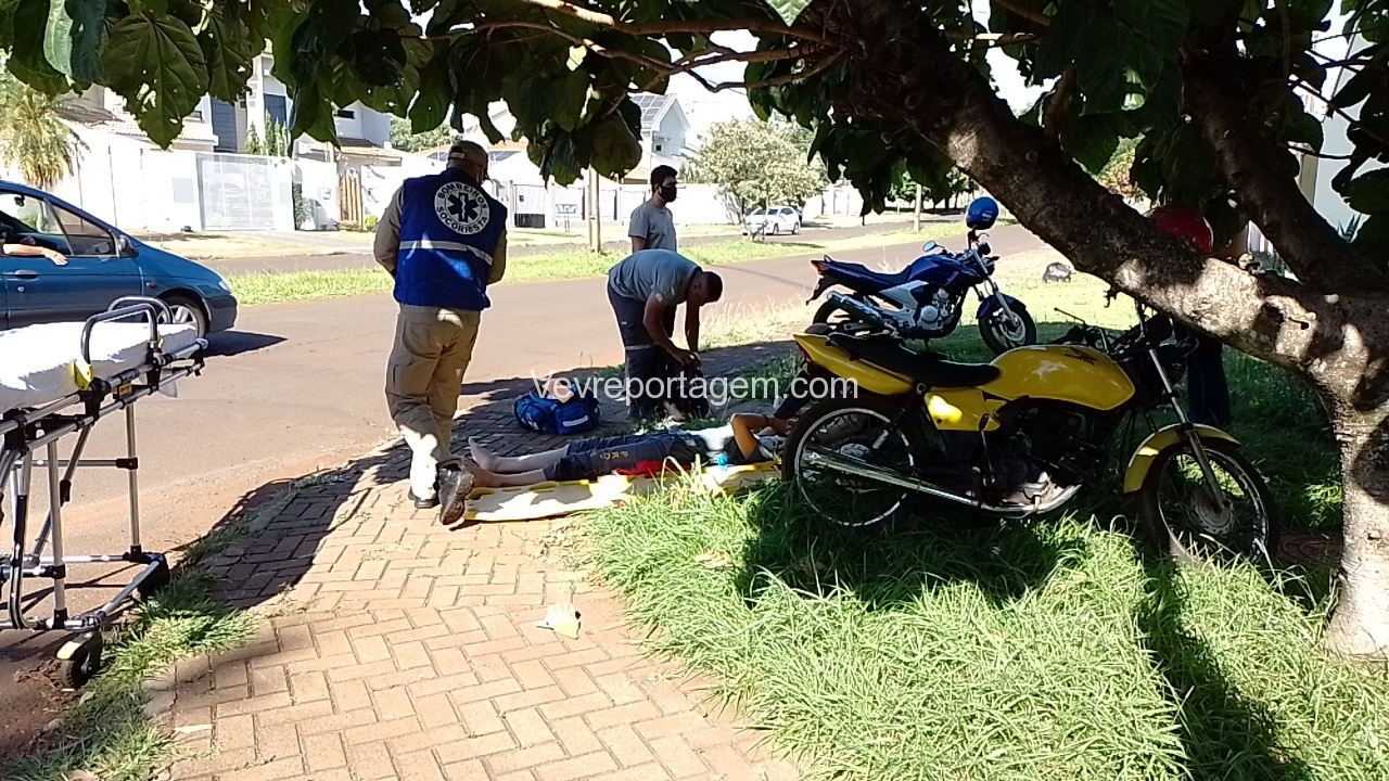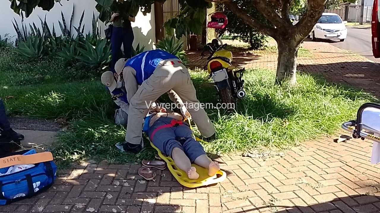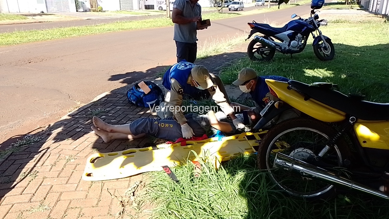 No local, os socorristas constataram a ocorrência, onde uma motociclista estava ferida em solo com diversas escoriações e sentia muita dor pelo corpo. Rapidamente a mesma foi imobilizada colocada na maca e encaminhada para o interior da ambulância para melhor ser avaliada. Já a motorista do automóvel nada sofreu.