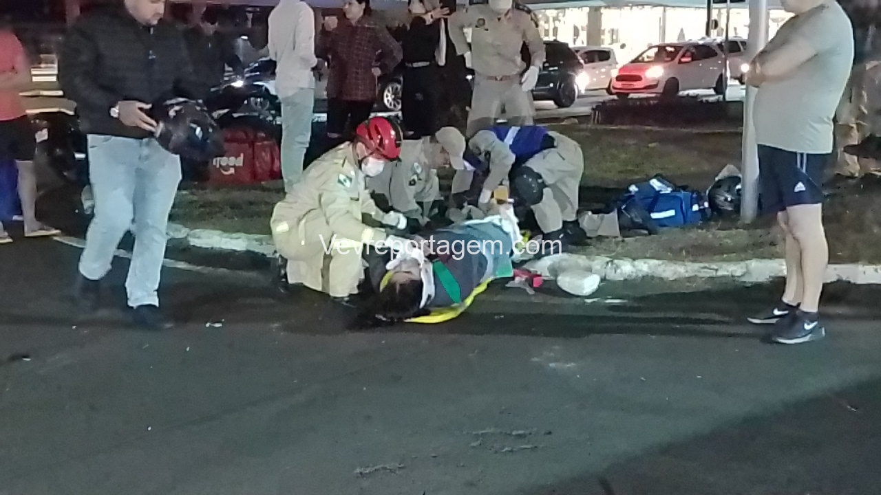 No local, foi constatada a ocorrência onde havia duas pessoas feridas, sendo uma do sexo masculino e outra do sexo feminino. Ao avaliarem as vítimas foi constatada que a motociclista estava com uma fratura aberta na perna direita. Já o outro motociclista estava com ferimentos considerados leves.