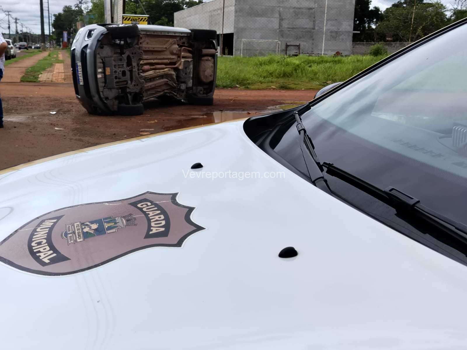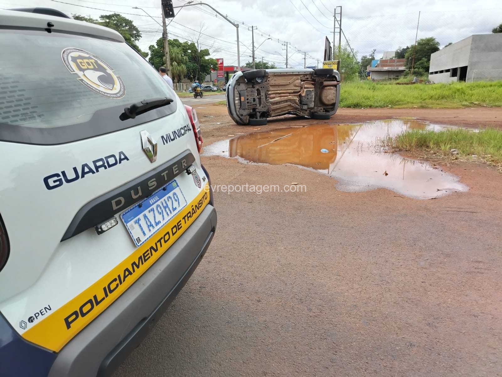 De acordo com informações da ocorrência, a equipe da Guarda Municipal se deparou com a colisão entre dois automóveis durante deslocamento pela via. Com o impacto, um dos veículos acabou capotando.